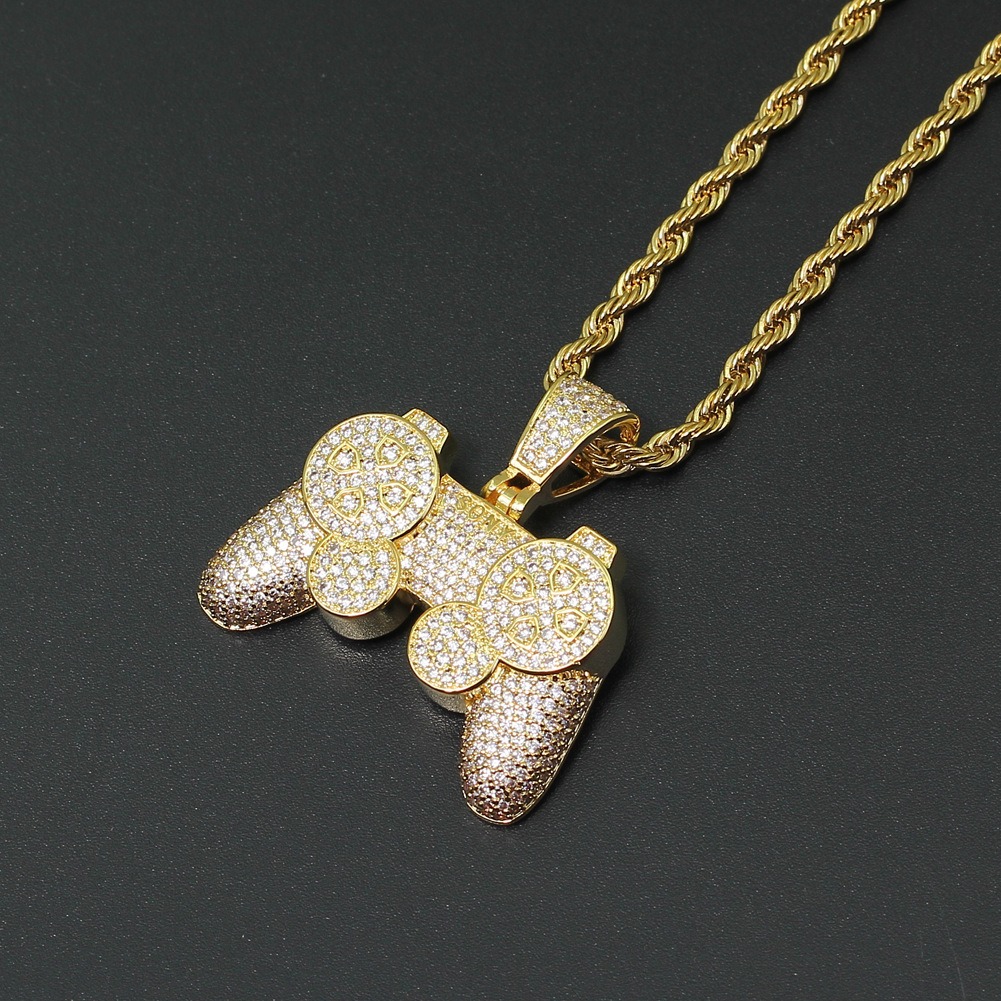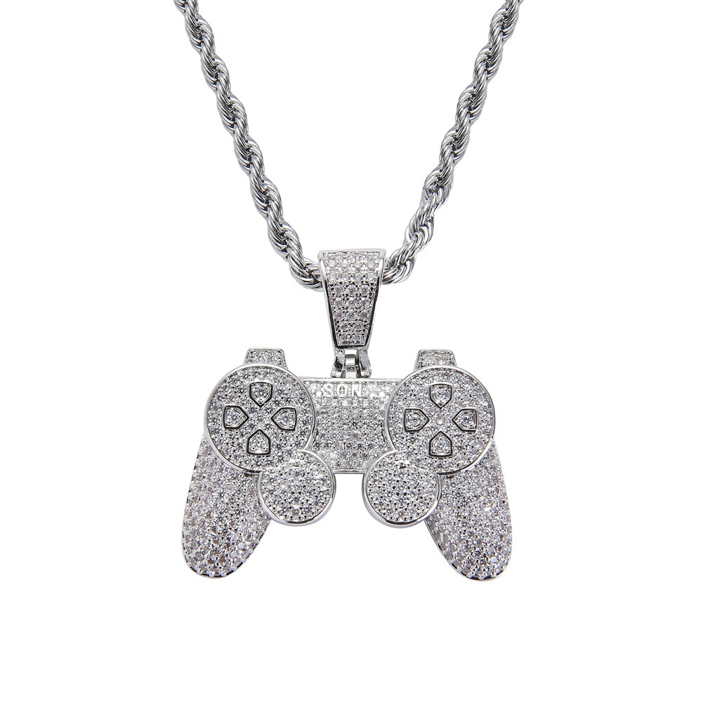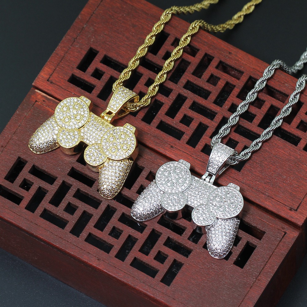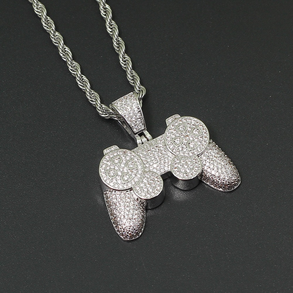 Hip hop pendant copper inlaid with zircon game console handle shape
