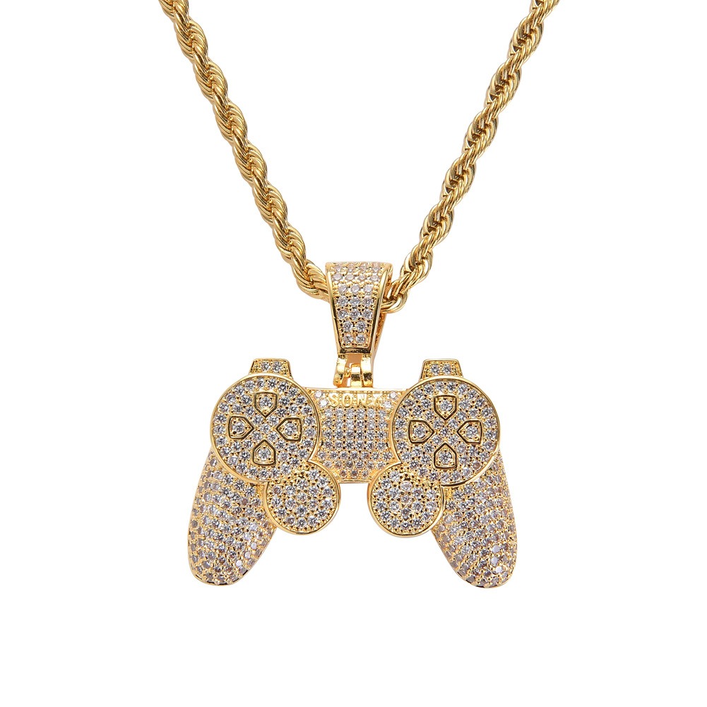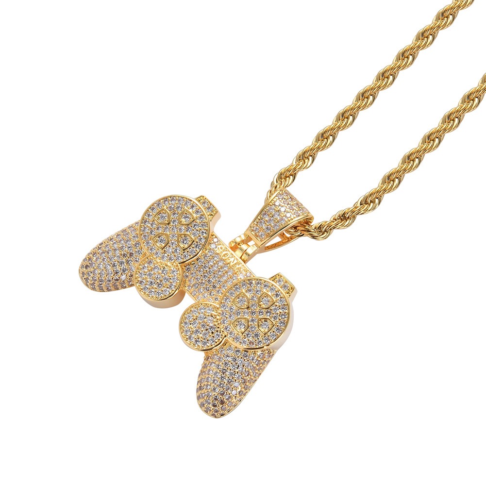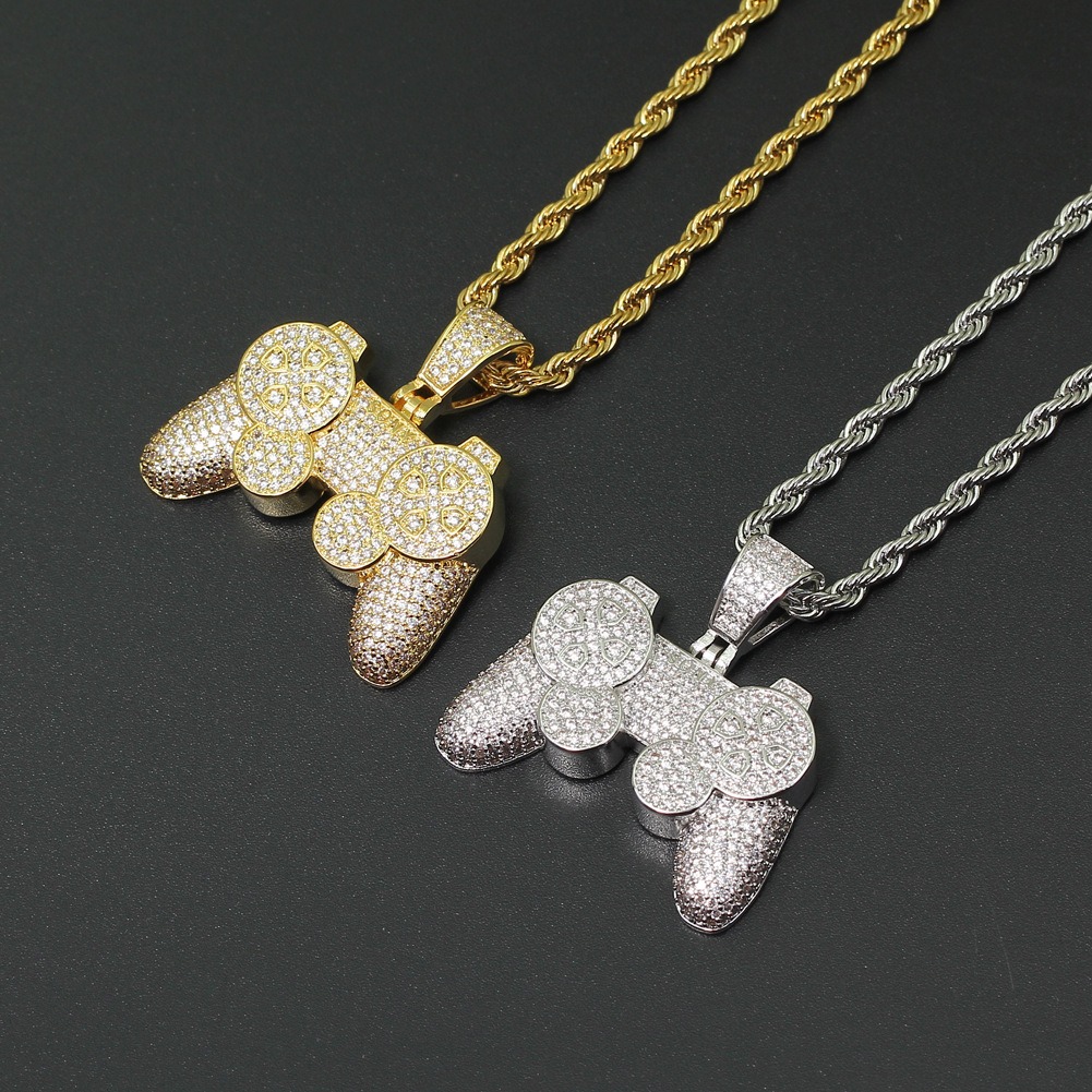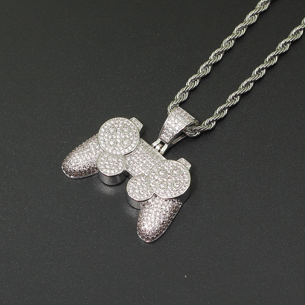 Hip hop pendant copper inlaid with zircon game console handle shape