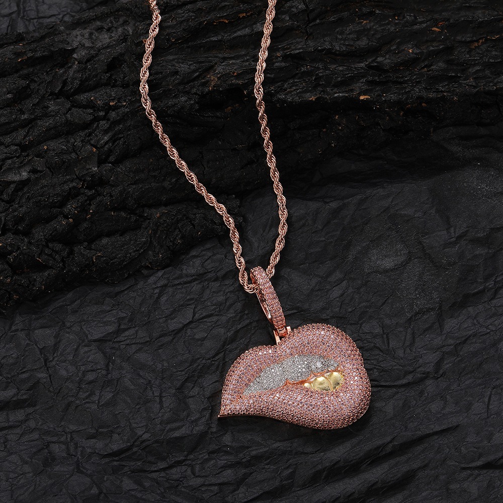 Hip hop pendant copper inlaid with zircon gold tooth shape