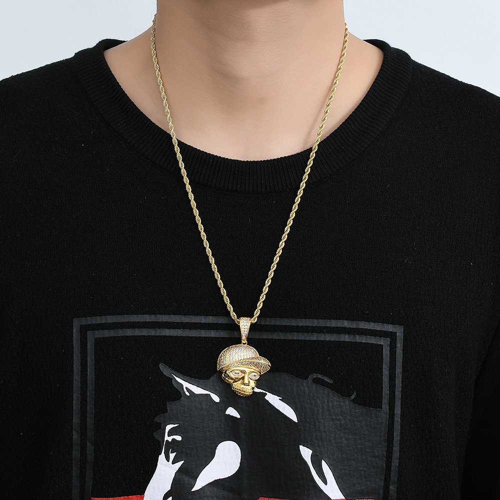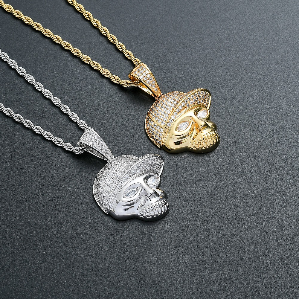 Hip hop pendant copper inlaid with zircon hat skull shape
