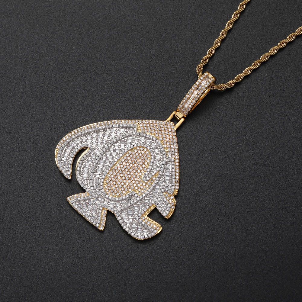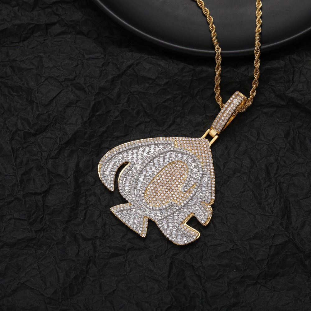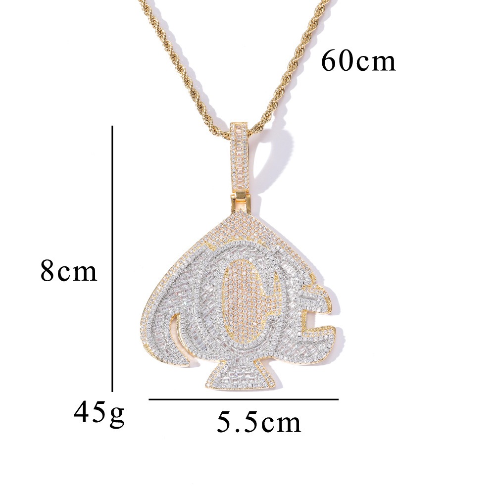 Hip hop pendant copper inlaid with zircon heart playing card shape