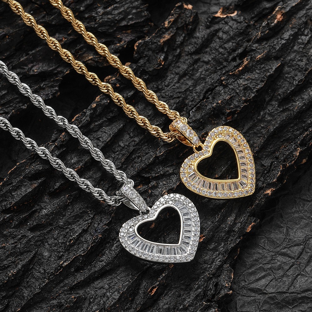 LXXL4004 Hip Hop copper inlaid zircon tennis chain colorful heart necklace bracelet