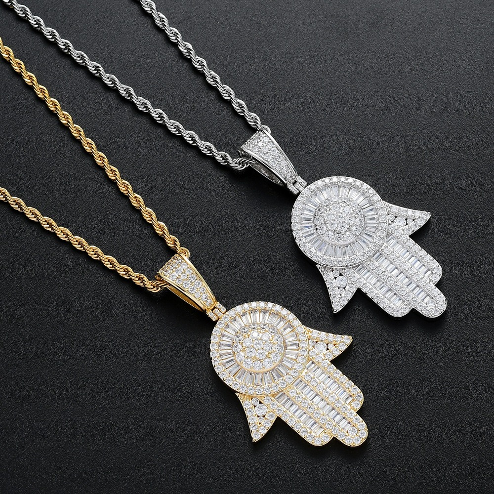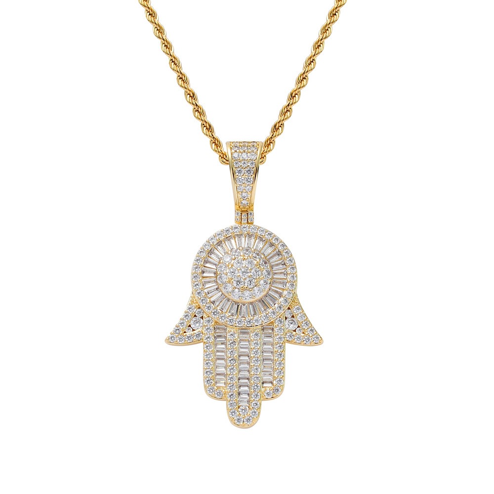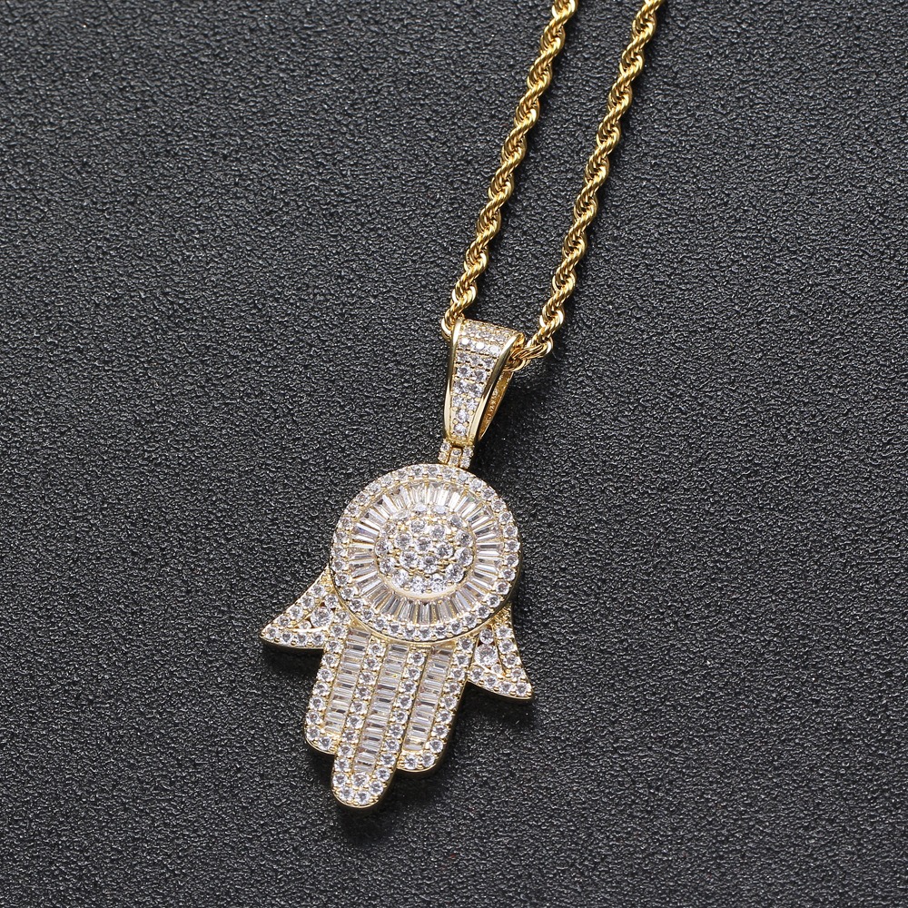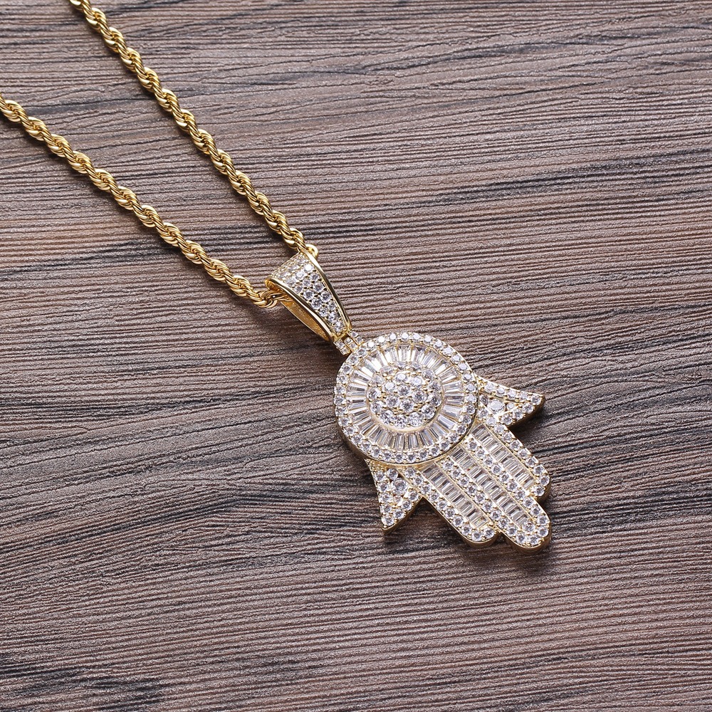 Hip hop pendant copper inlaid with zircon in the shape of a hand of Fatima