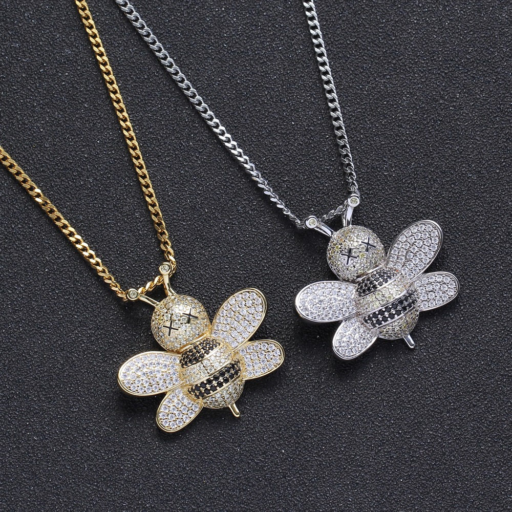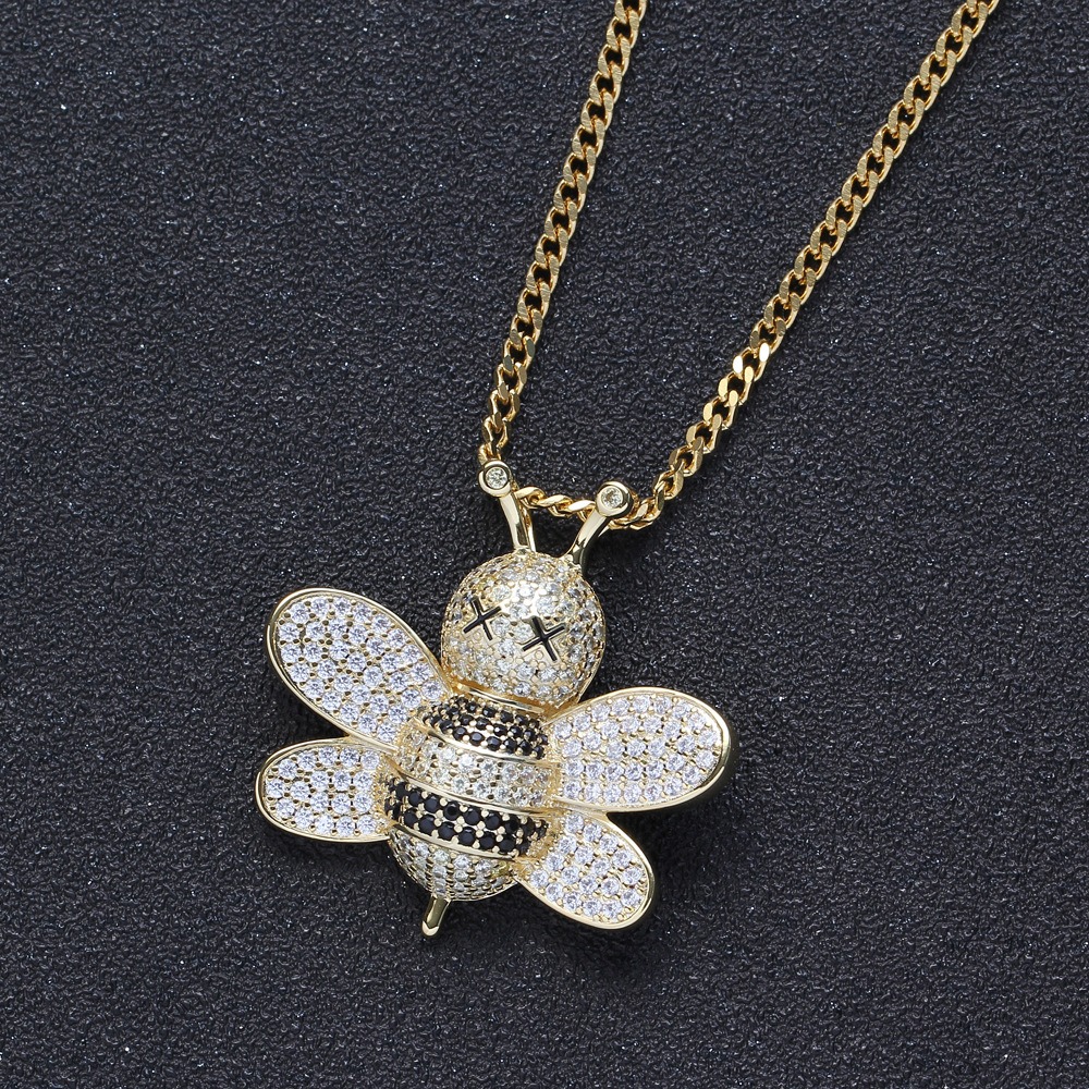 Hip hop pendant copper inlaid with zircon in the shape of a small bee