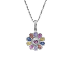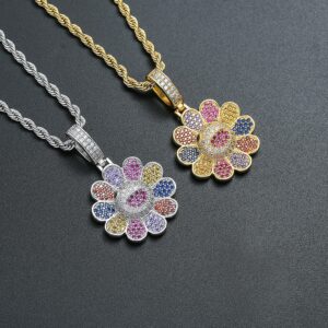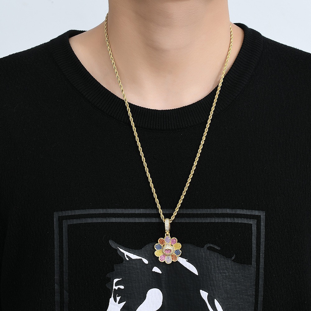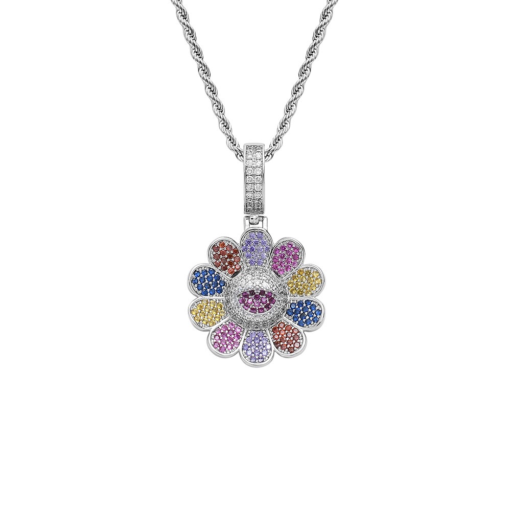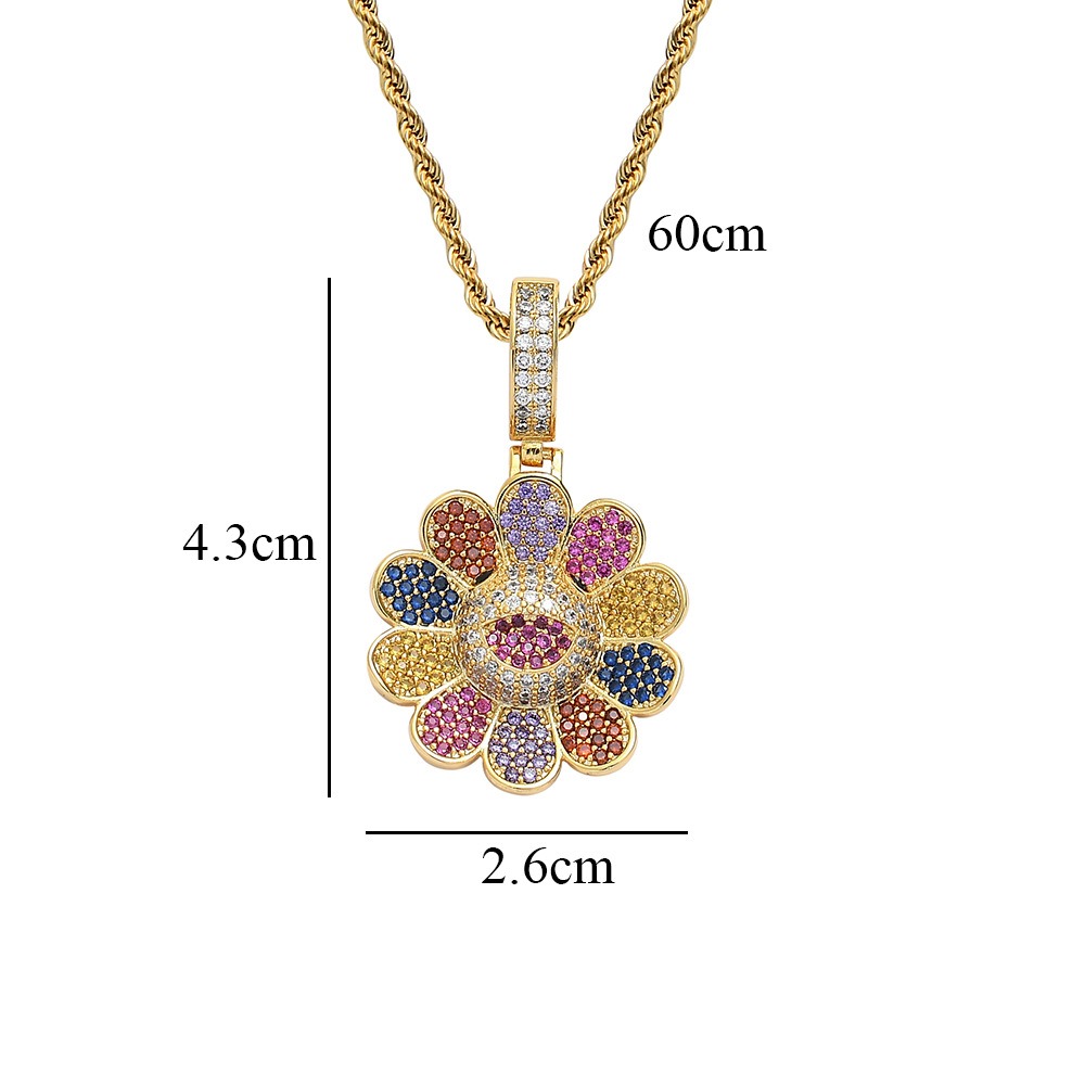 Hip hop pendant copper inlaid with zircon in the shape of colorful flowers