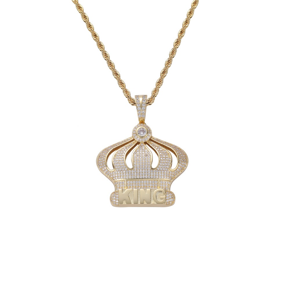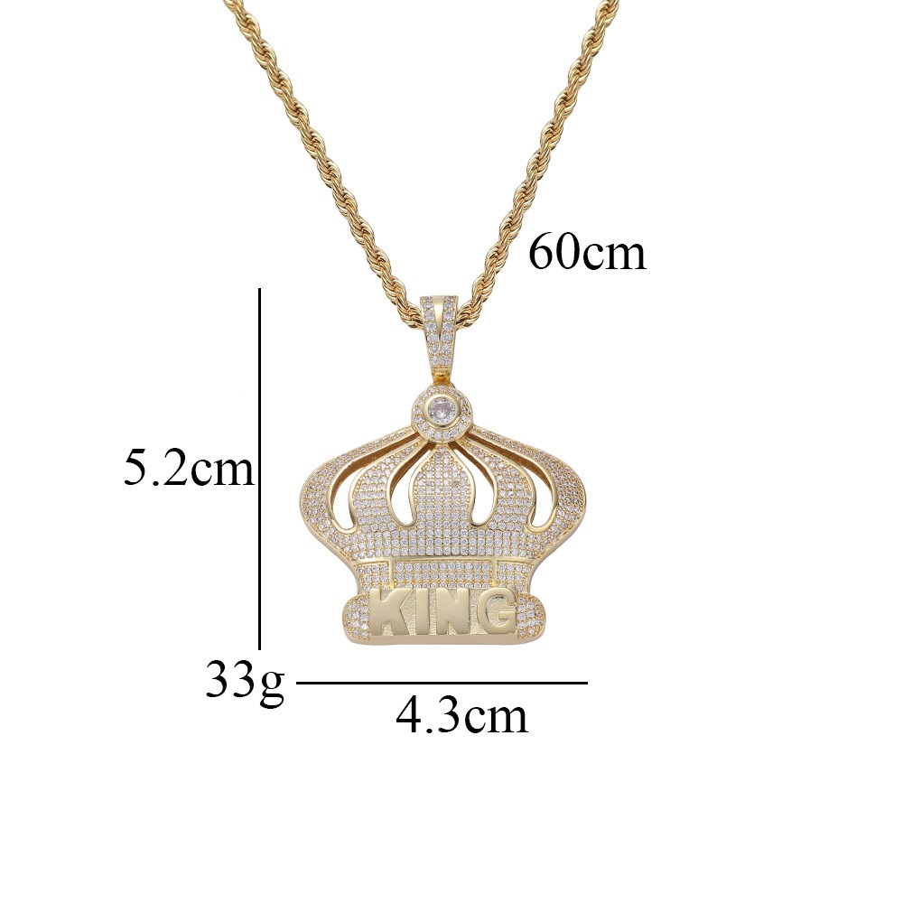 HIP HOP PENDANT COPPER INLAID WITH ZIRCON KING CROWN SHAPE