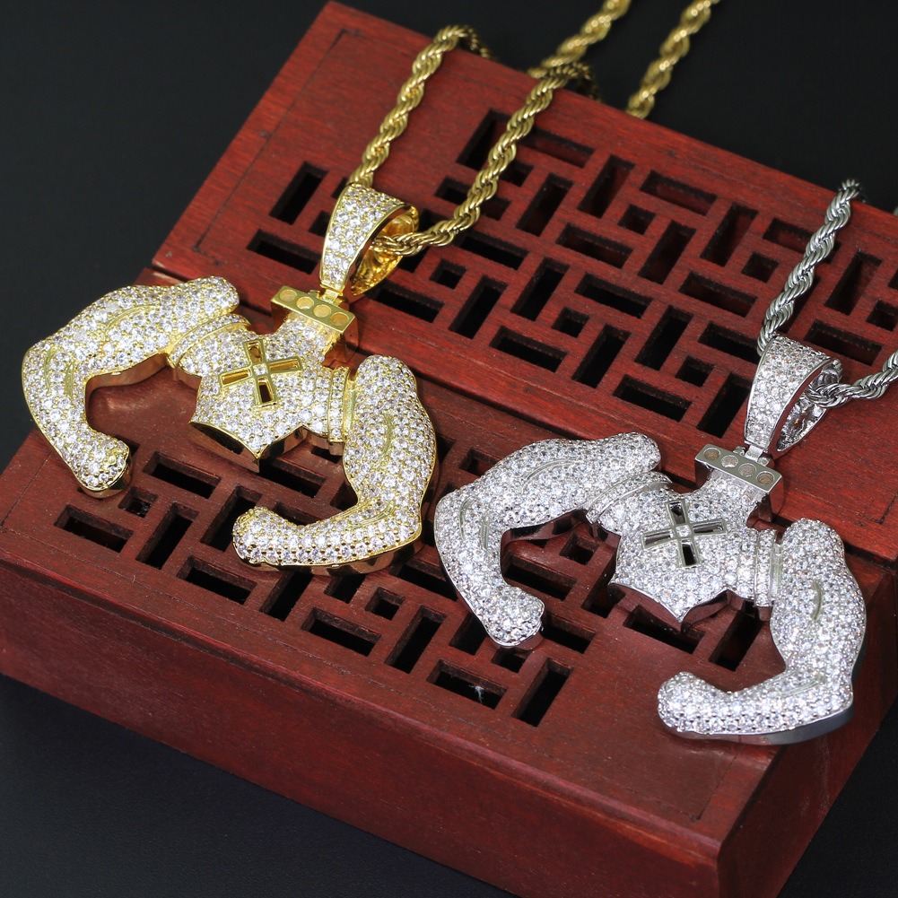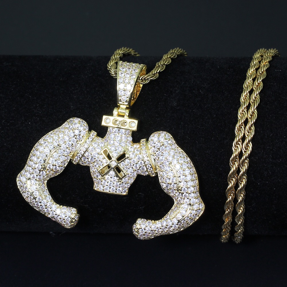 Hip hop pendant copper inlaid with zircon muscular male shape