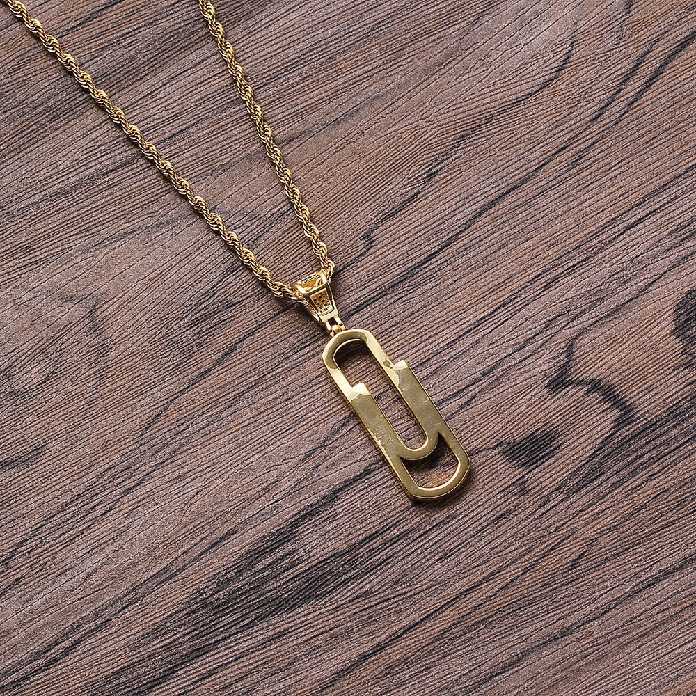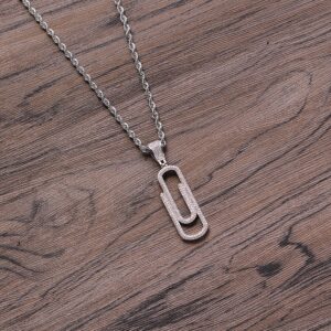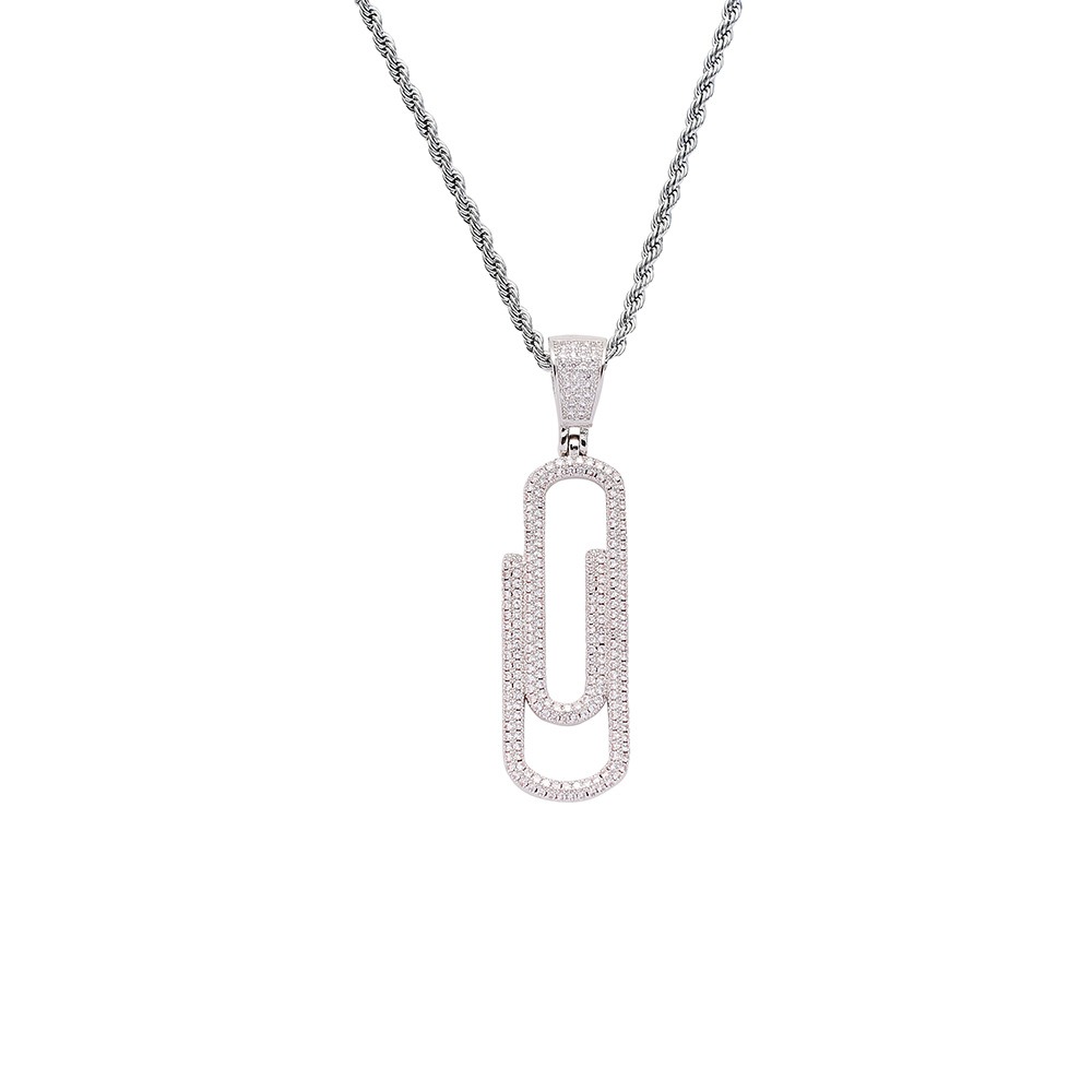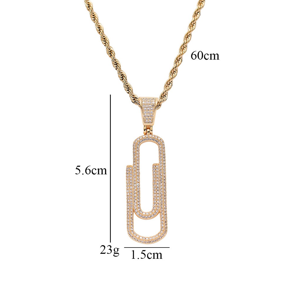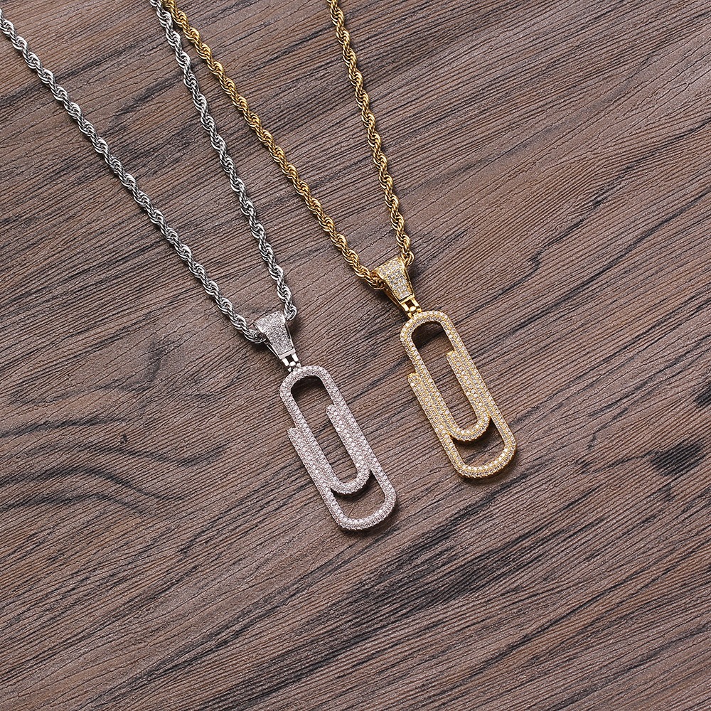 Hip hop pendant copper inlaid with zircon paper clip shape