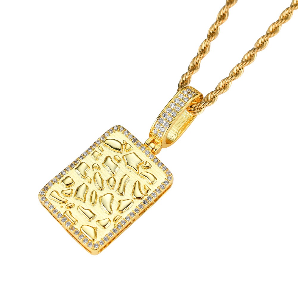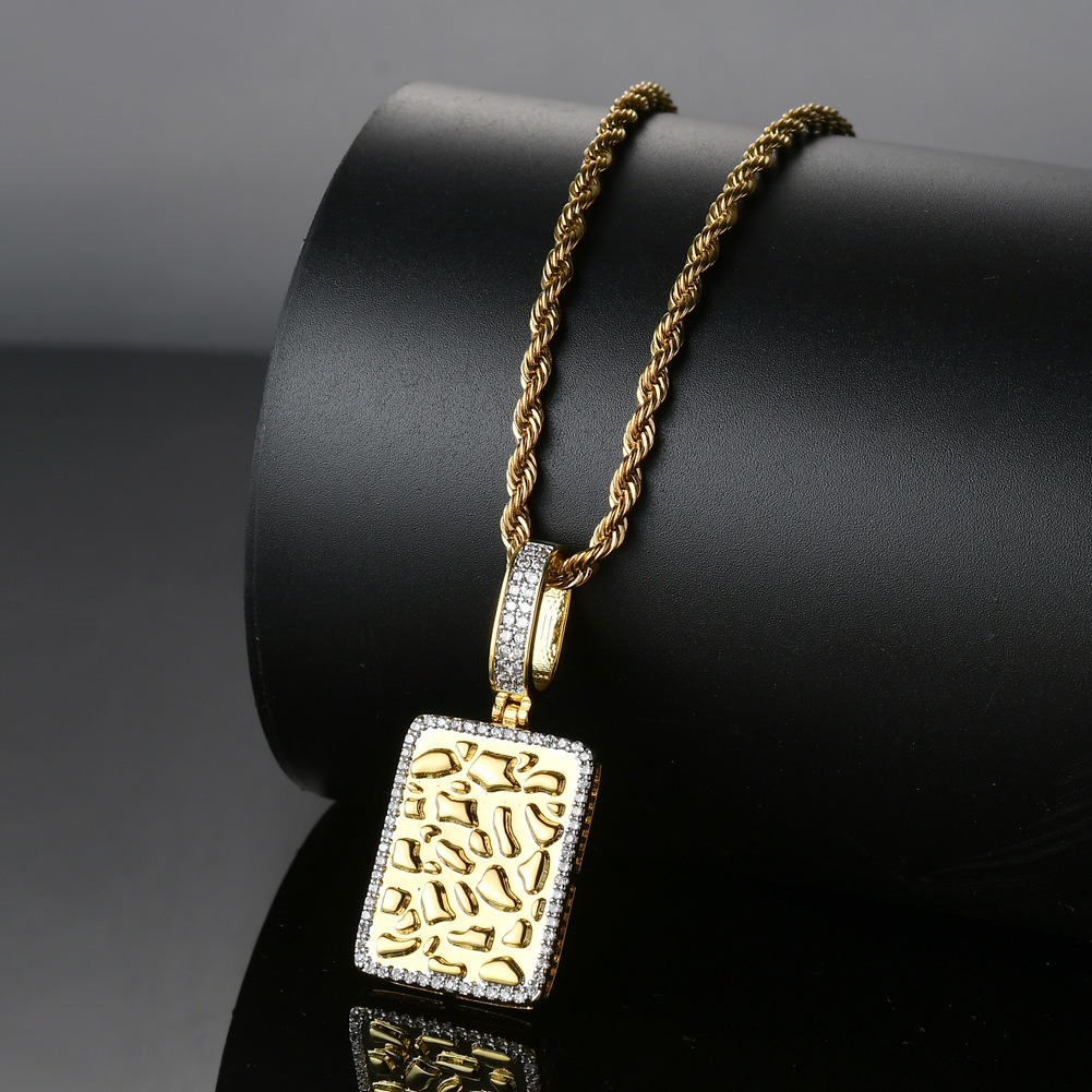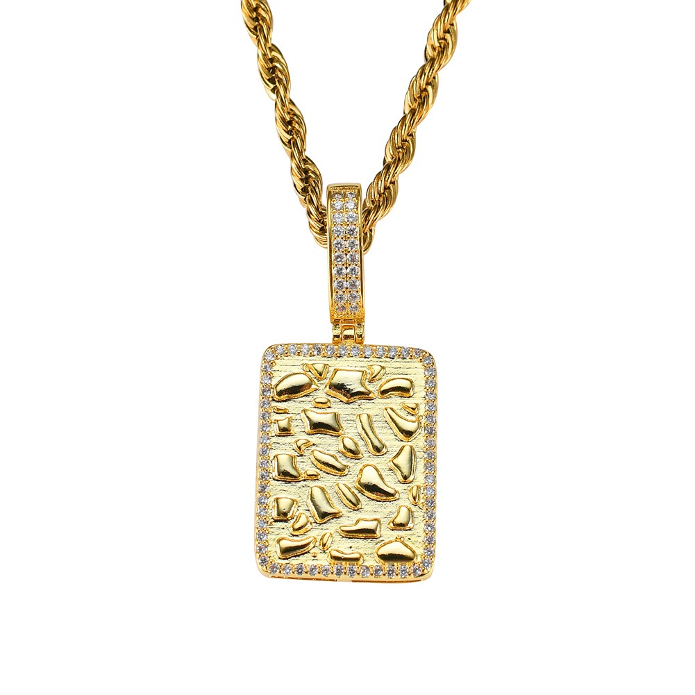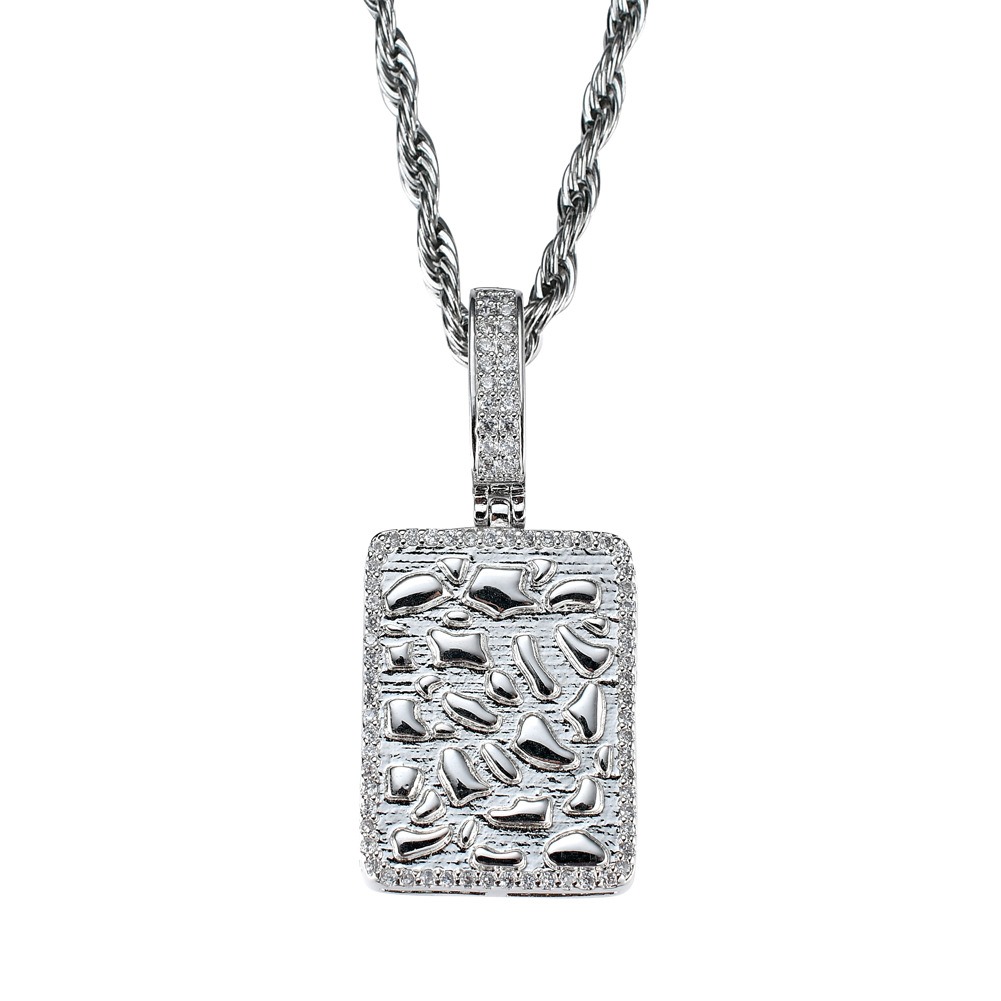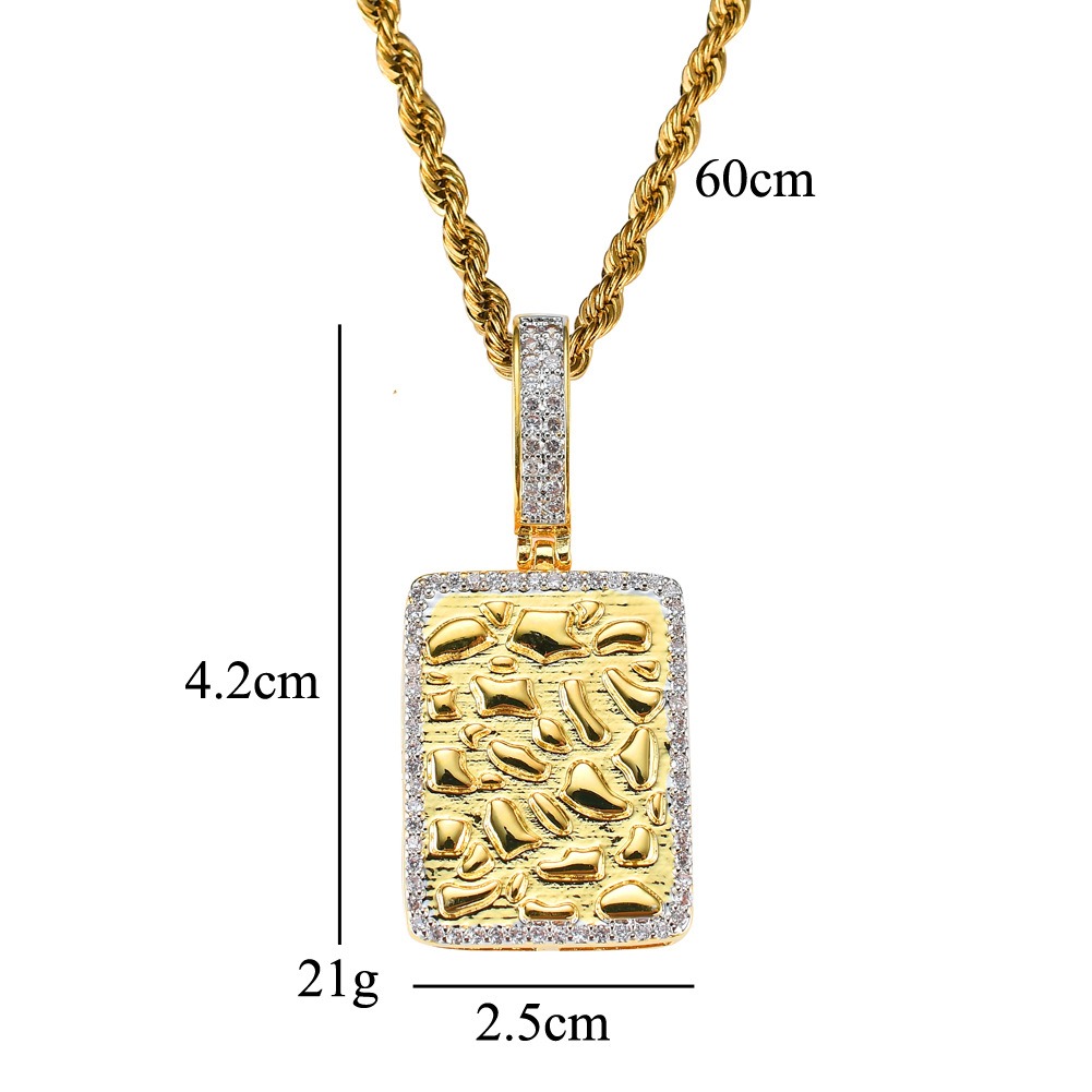 Hip Hop pendant copper inlaid with zircon rectangular military plaque shape