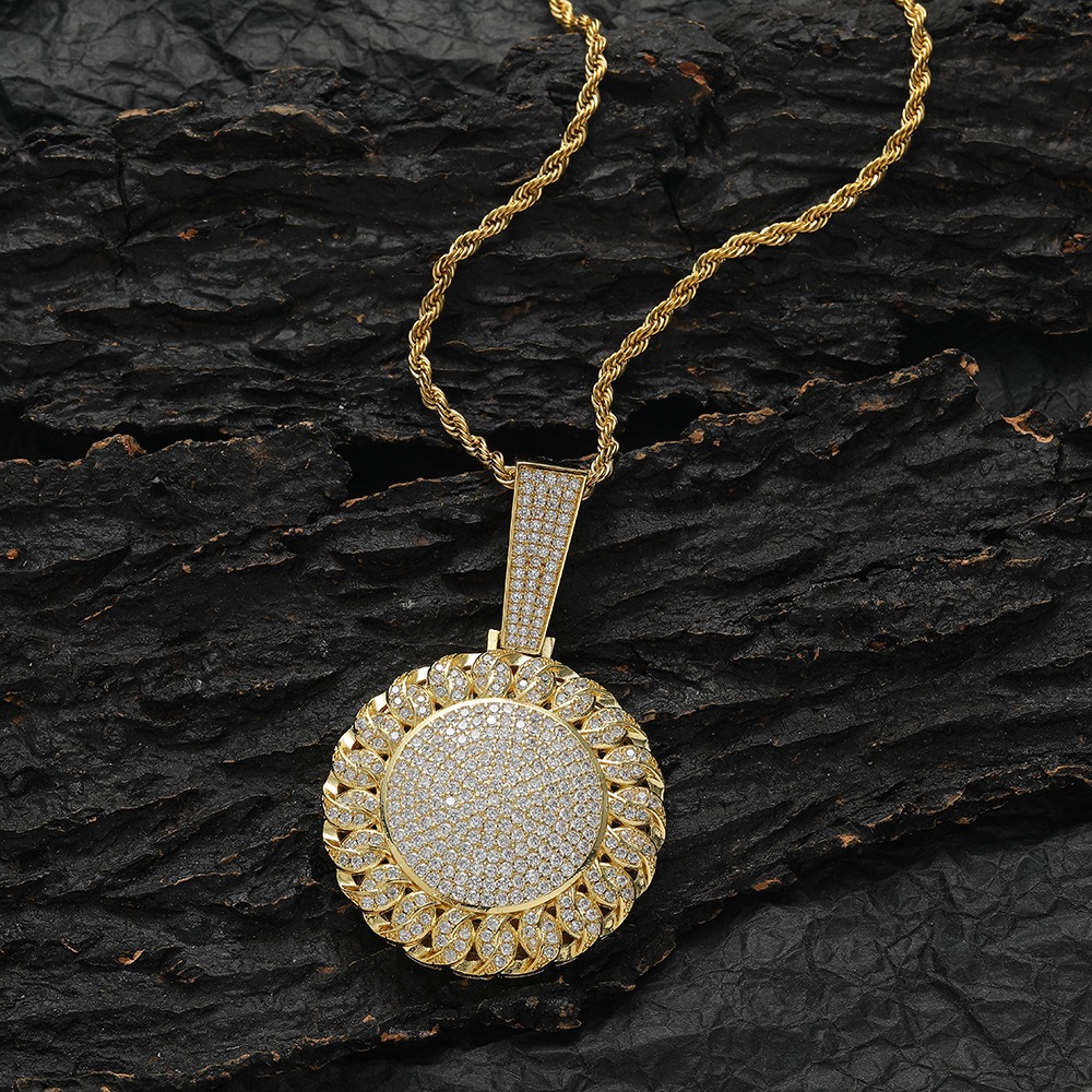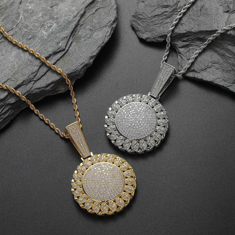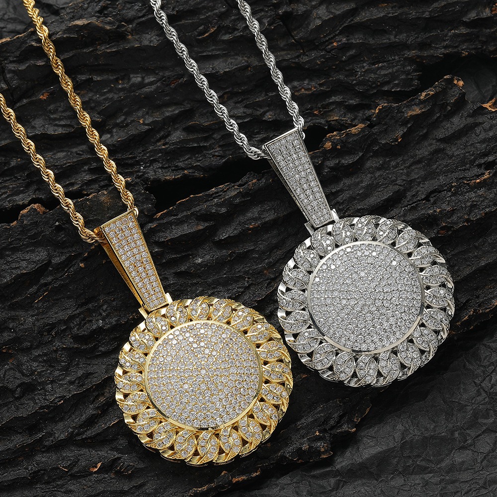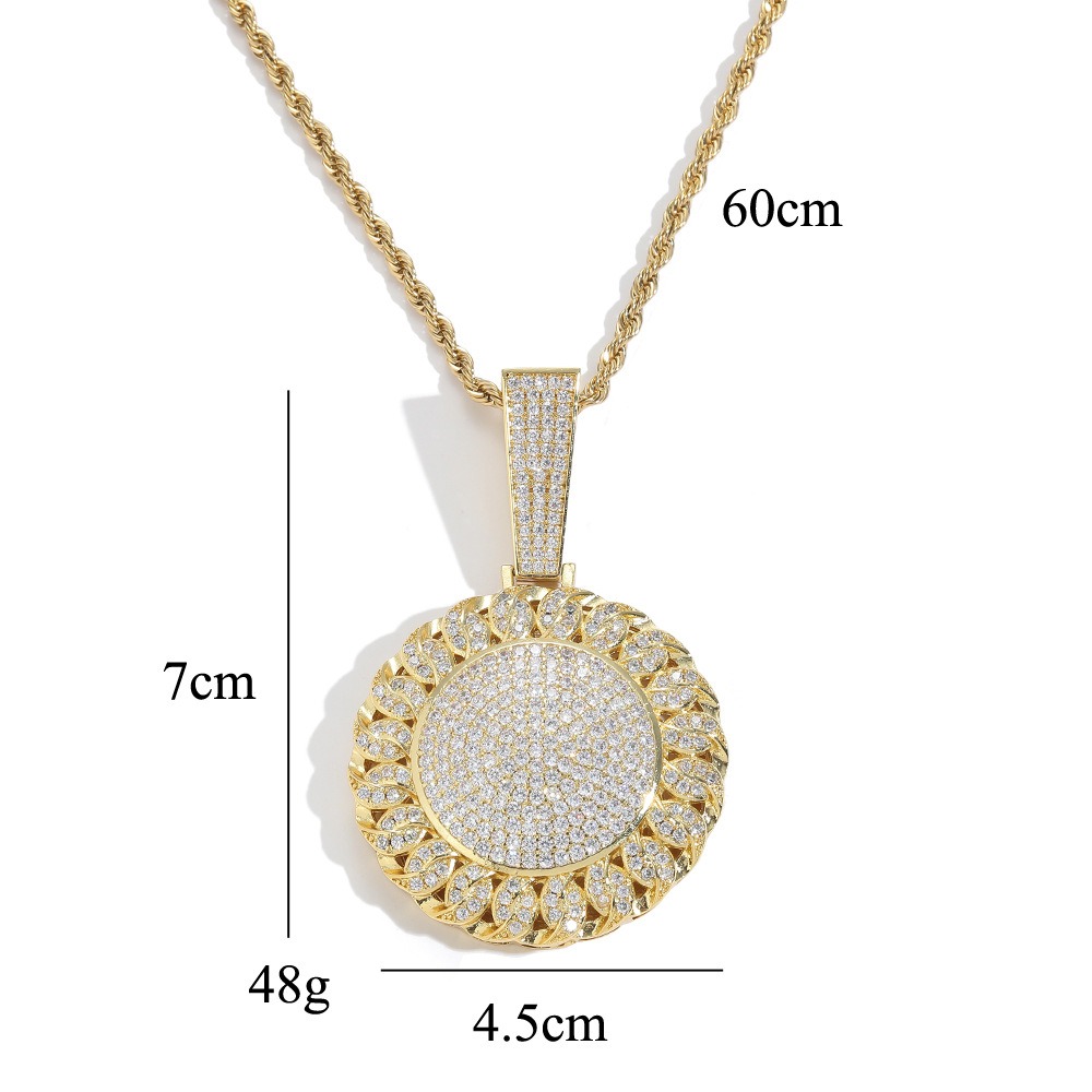 Hip Hop pendant copper inlaid with zircon round Cuban pattern