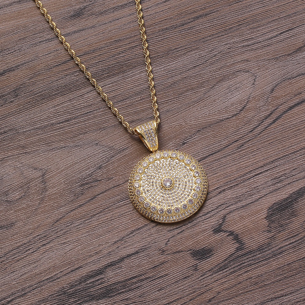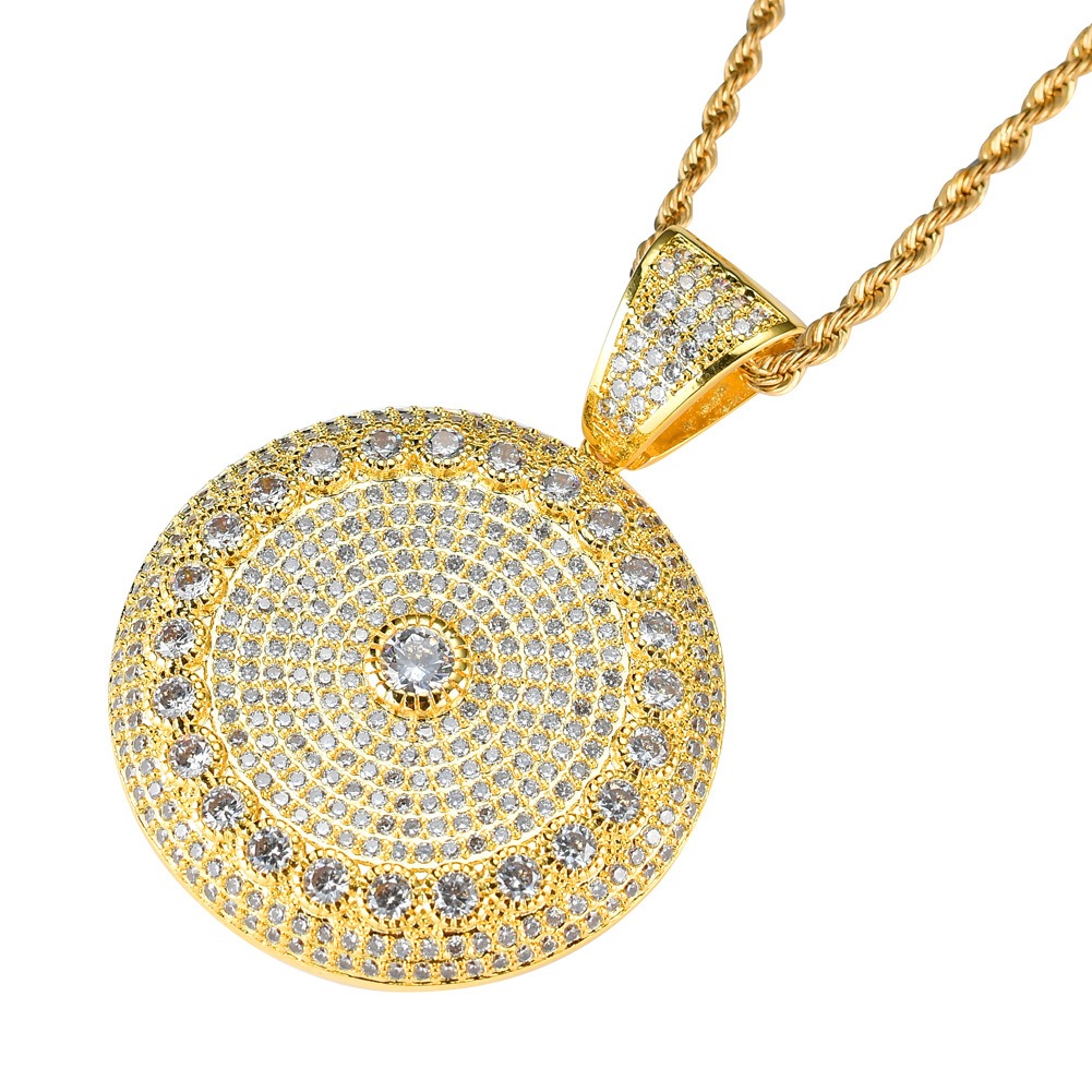 Hip Hop pendant copper inlaid with zircon round sunflower shape