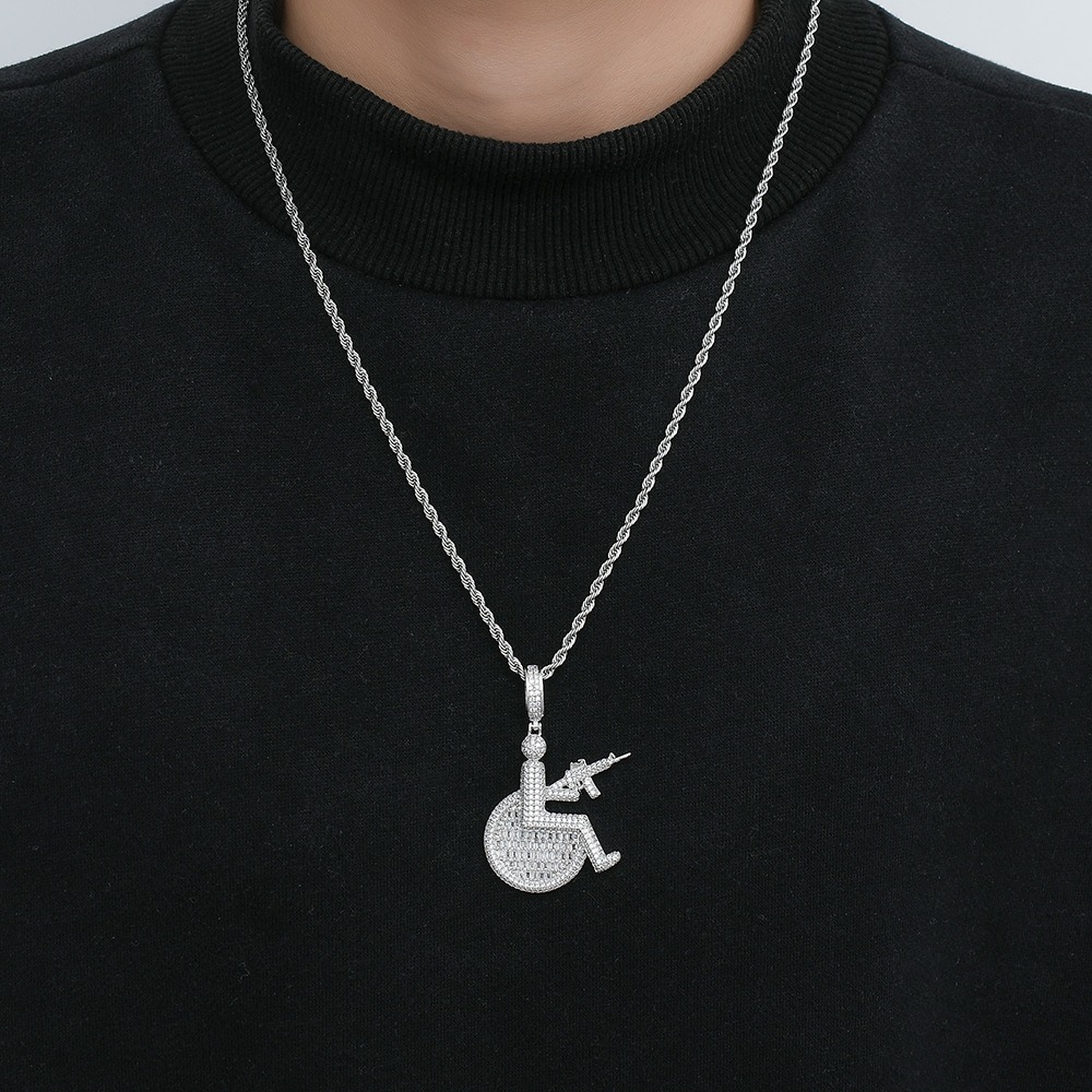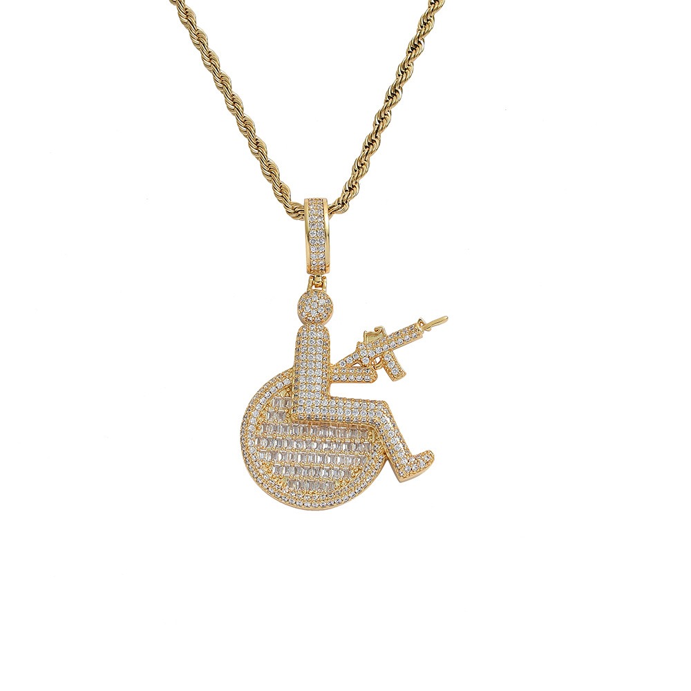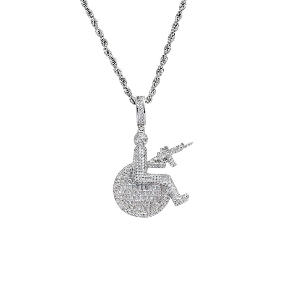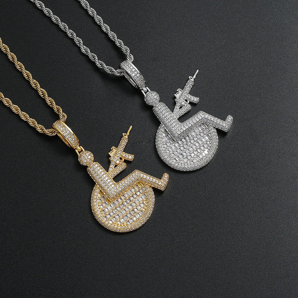 Hip hop pendant copper inlaid with zircon sitting position holding a machine gun shape