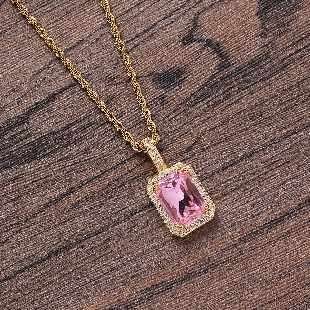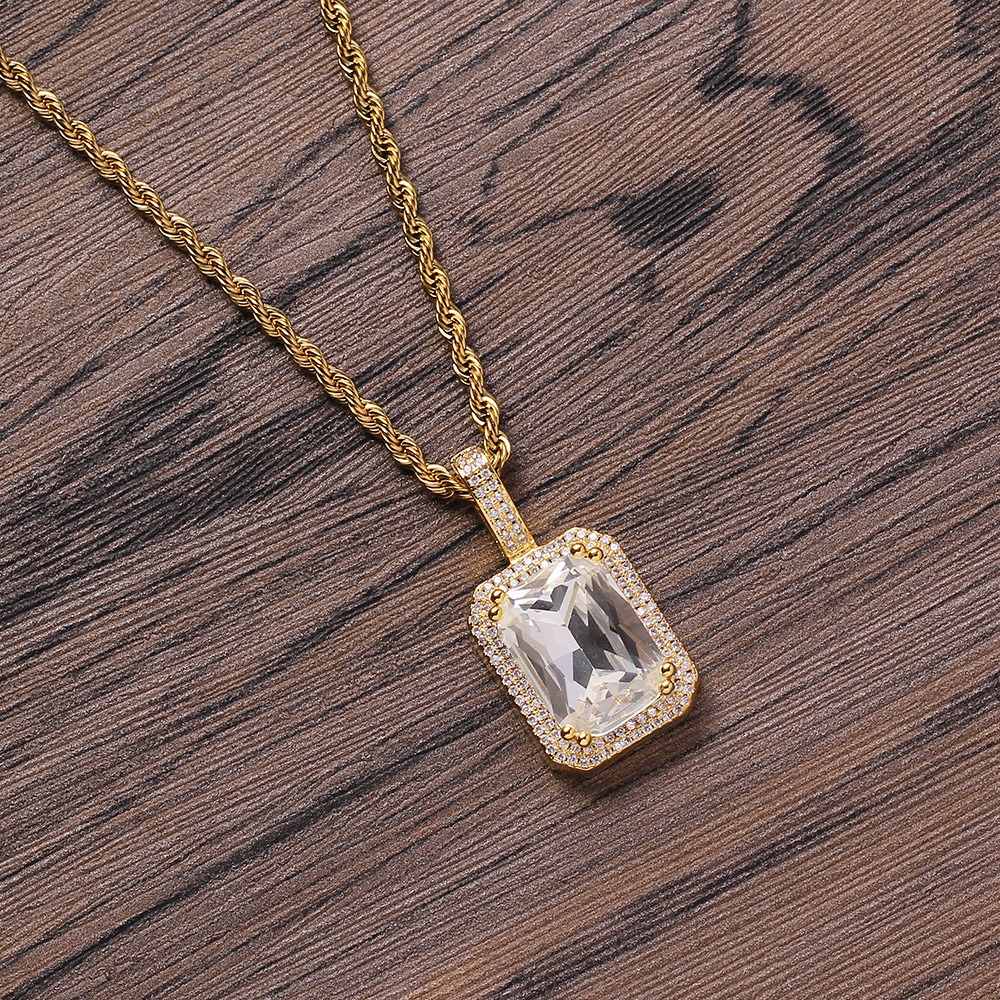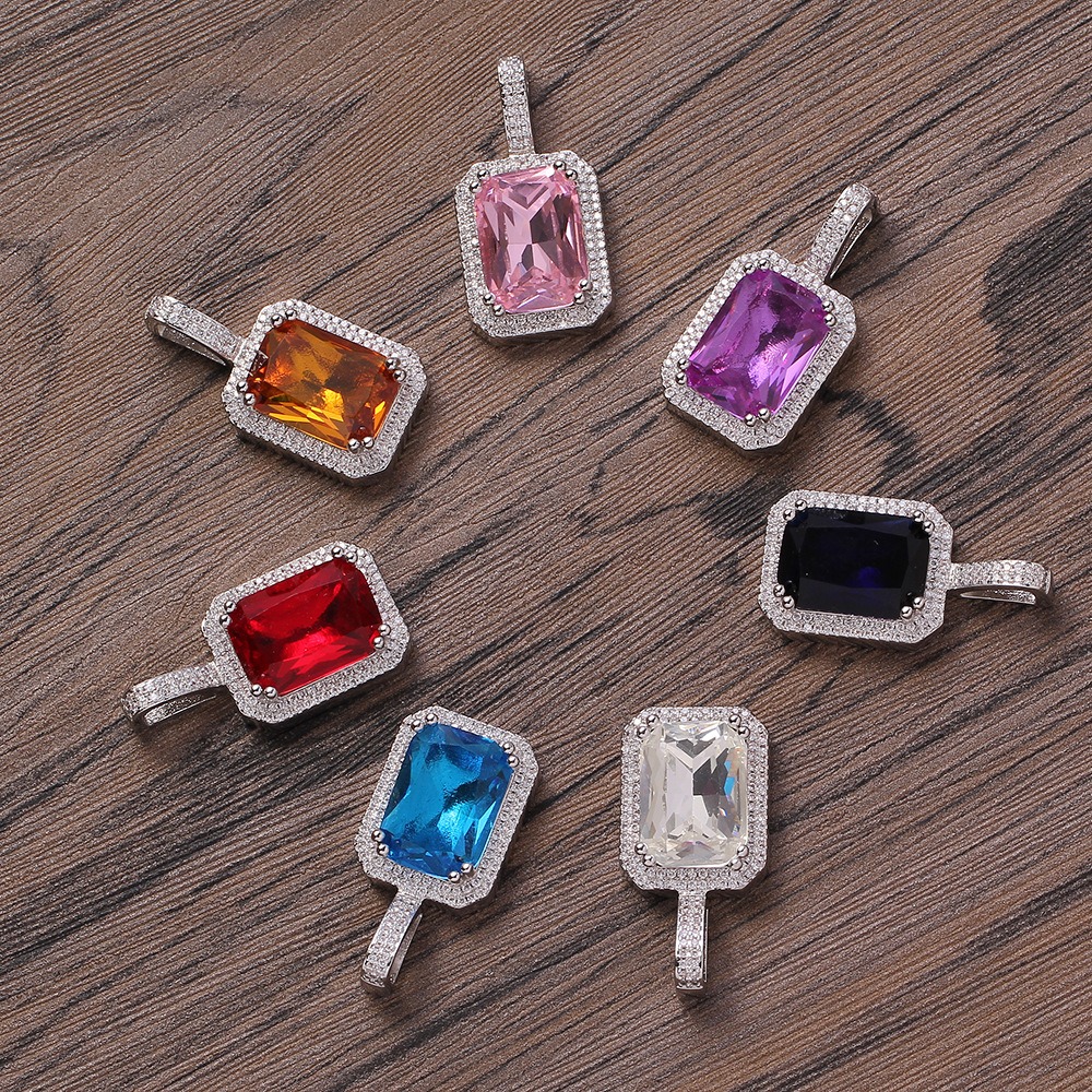 Hip hop pendant copper inlaid with zircon square shape