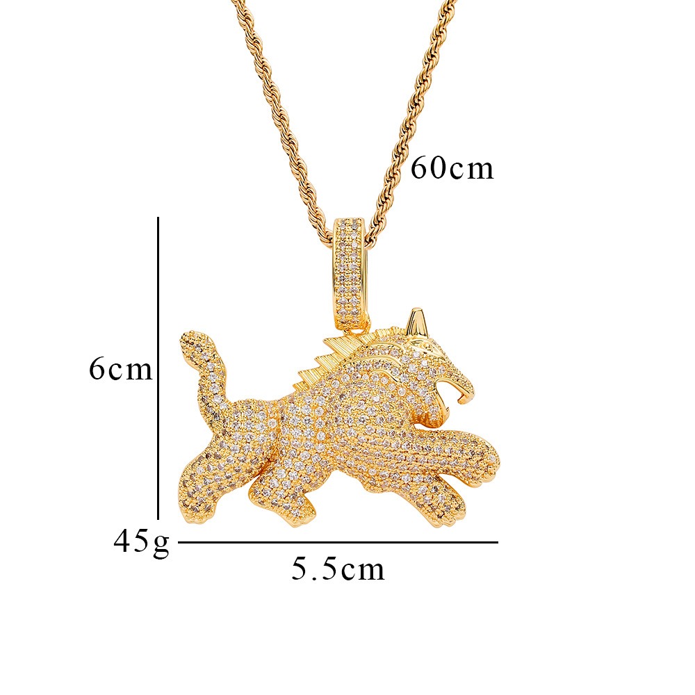 Hip hop pendant copper inlaid with zircon unicorn shape