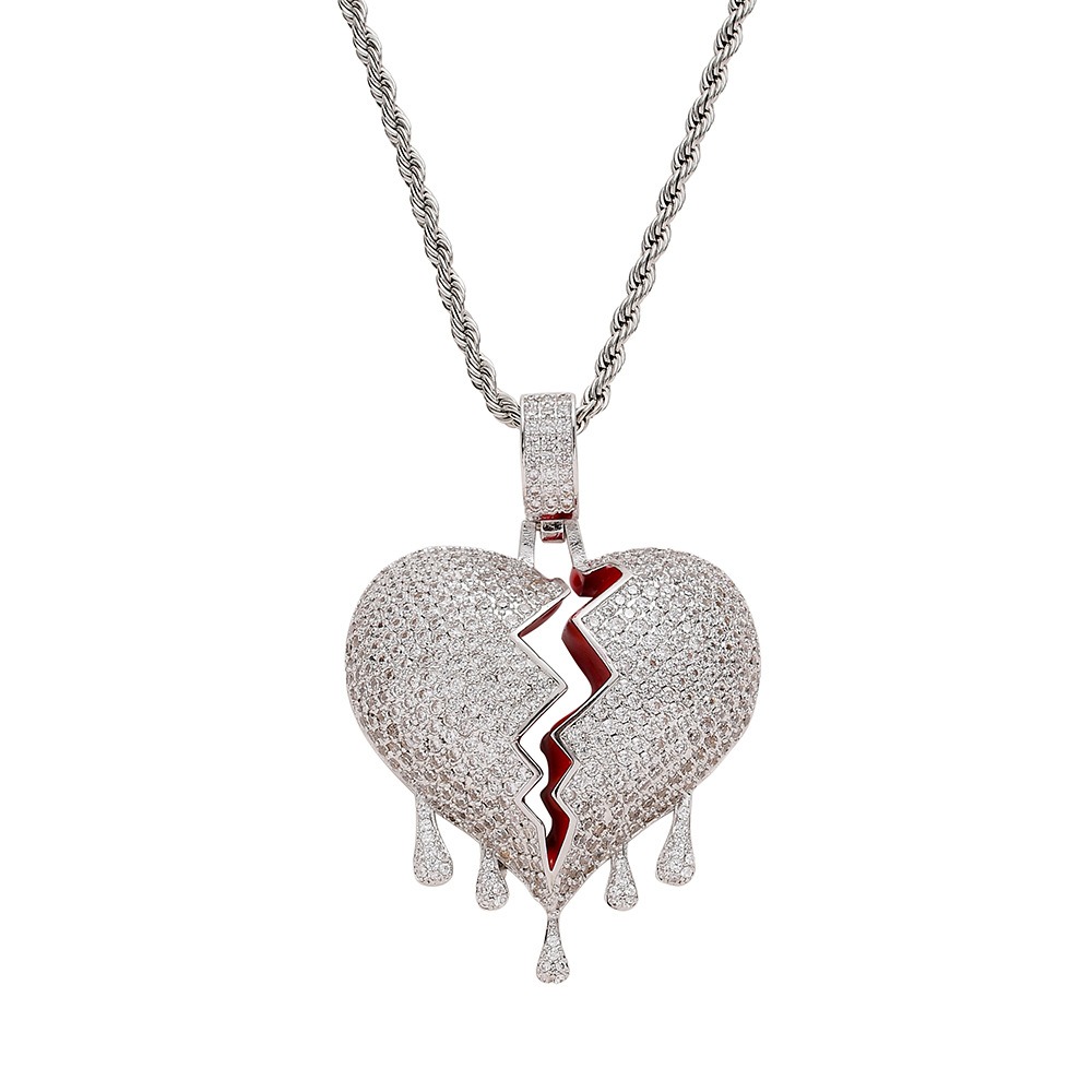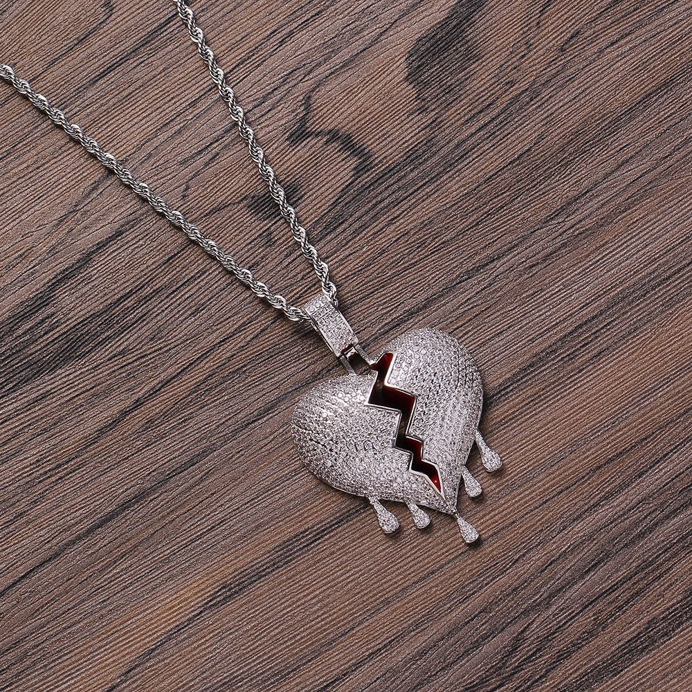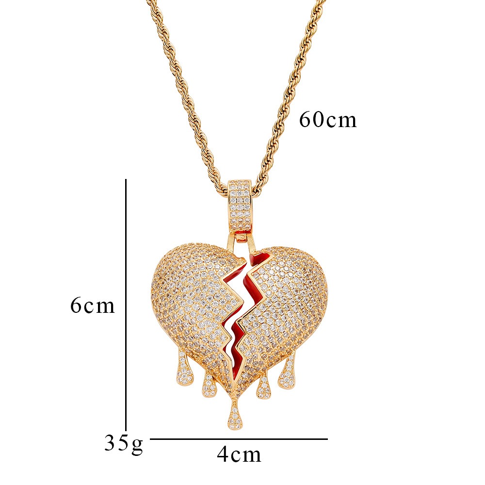 Hip hop pendant copper inlaid with zircon water drop heart shape