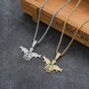 Hip Hop pendant copper inlaid with zircon water drops US dollar wings money bag shape