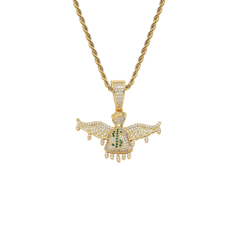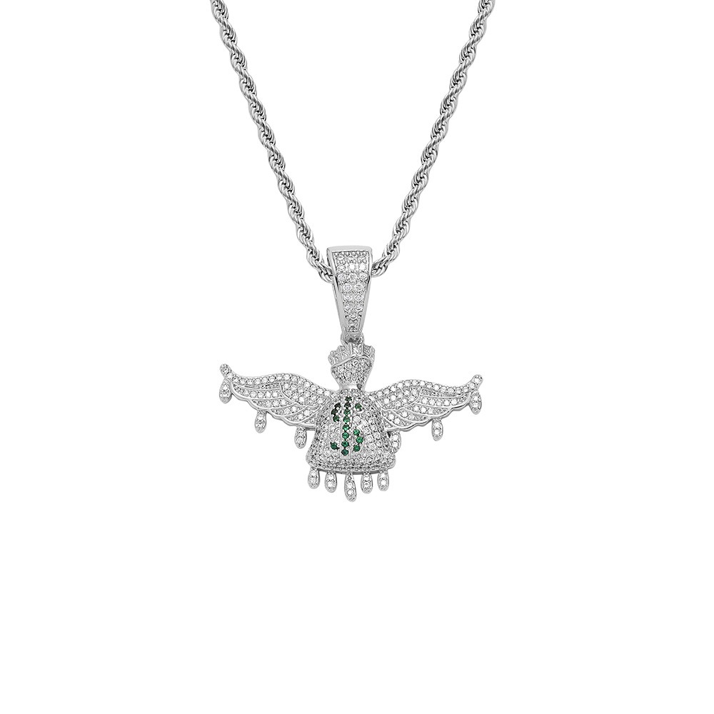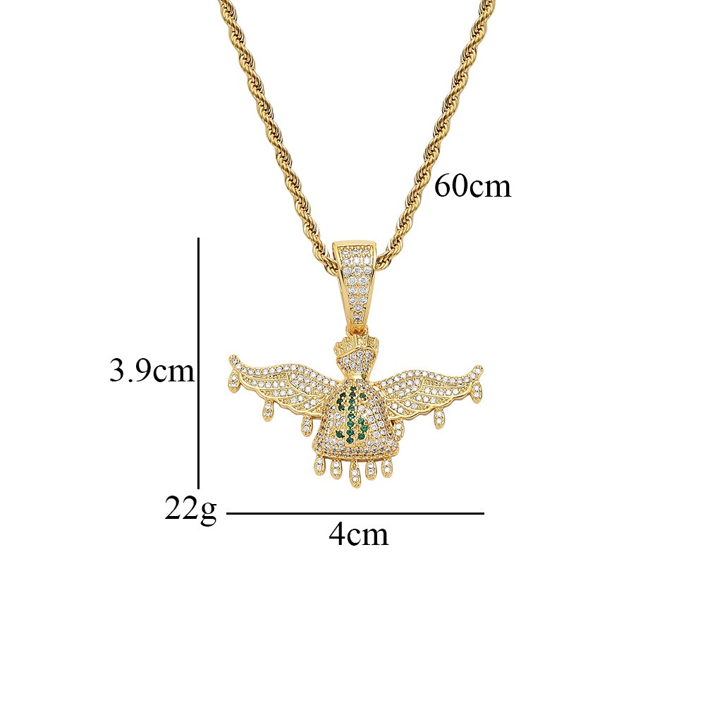 Hip Hop pendant copper inlaid with zircon water drops US dollar wings money bag shape