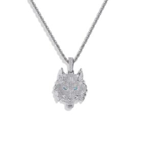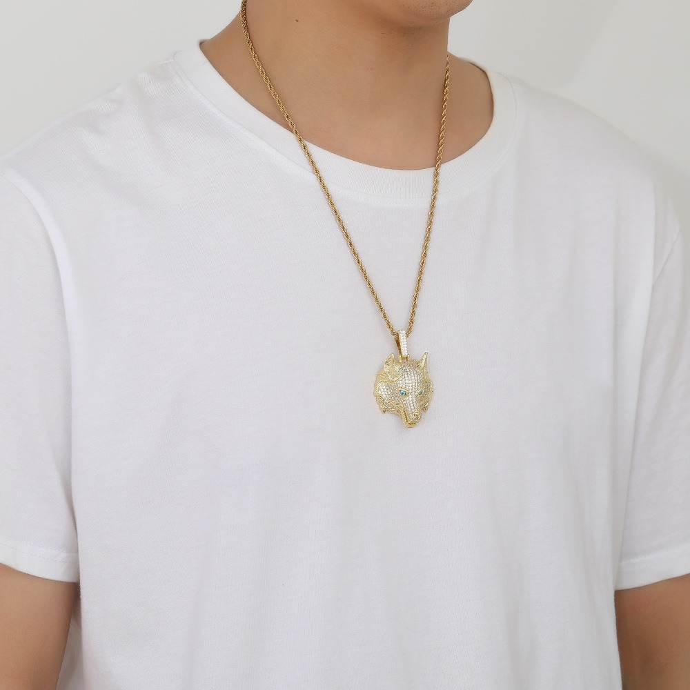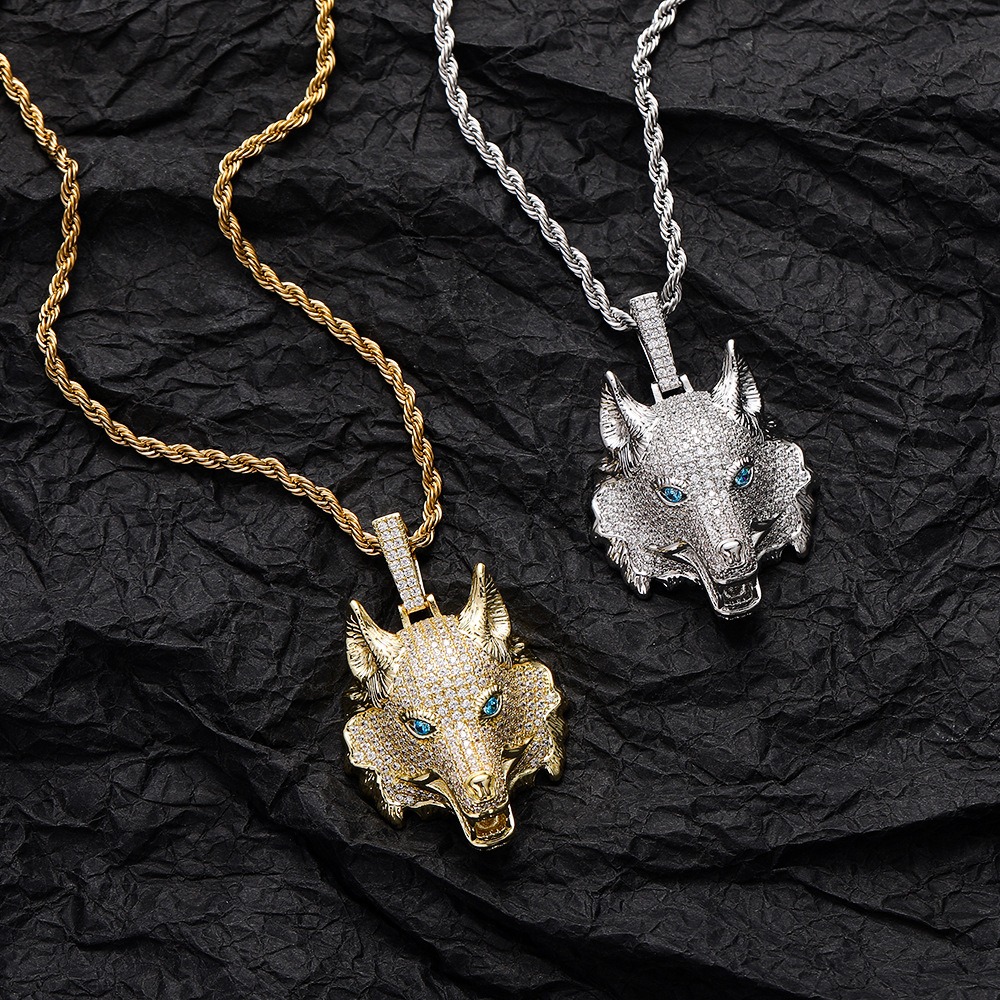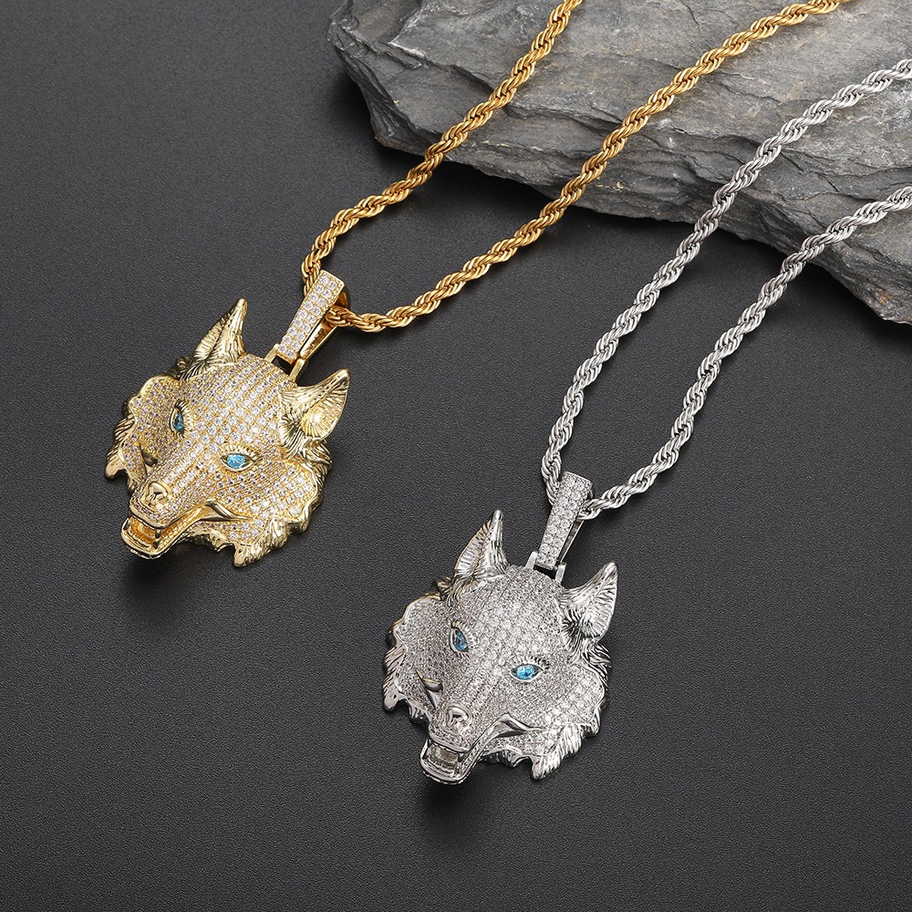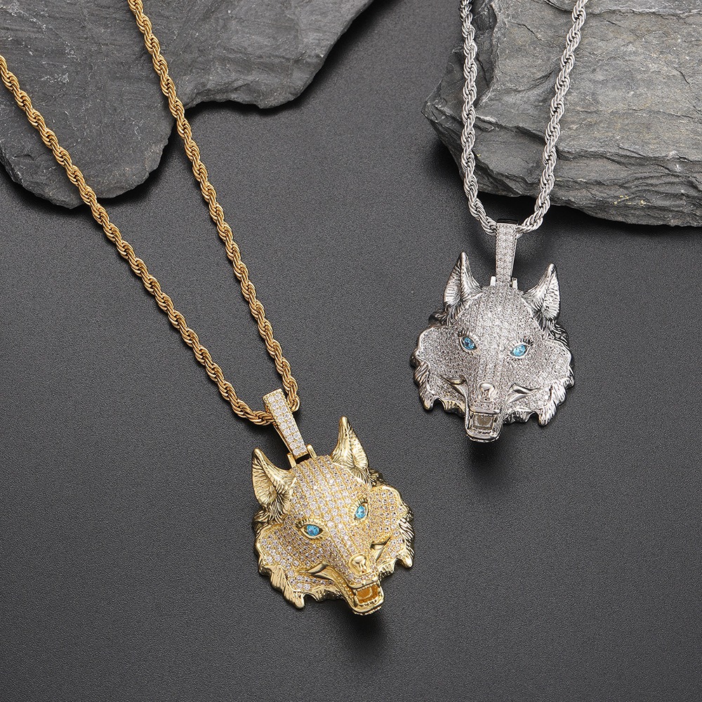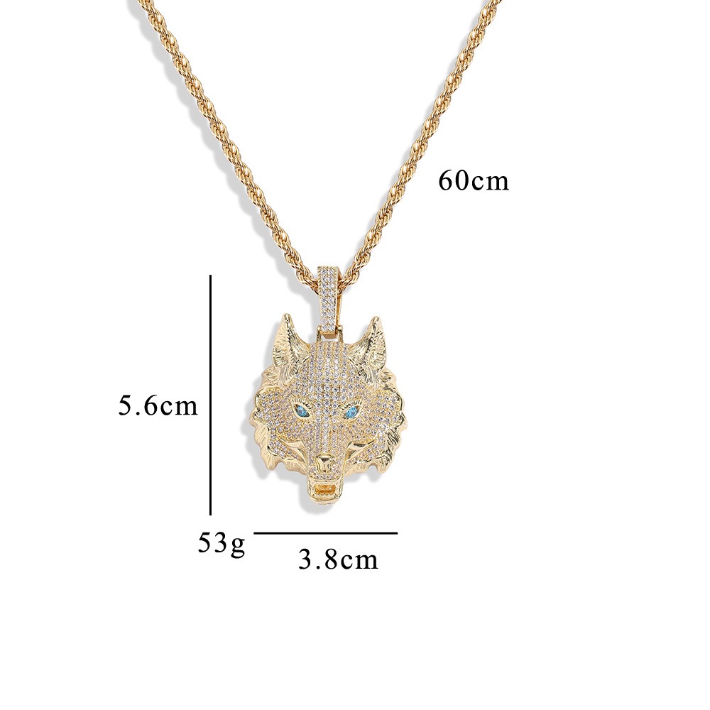 Hip Hop pendant copper inlaid with zircon wolf head shape