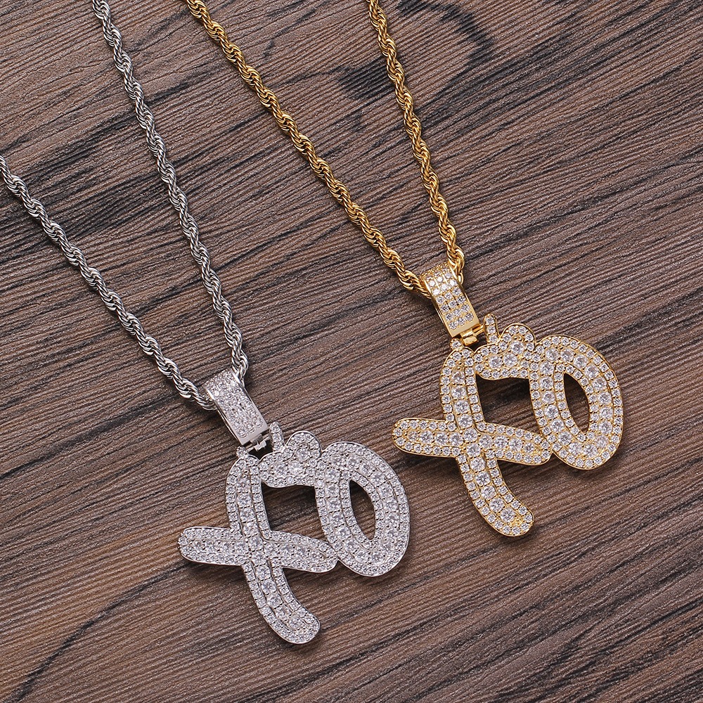 Hip Hop pendant copper inlaid with zircon XO letter shape