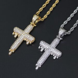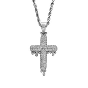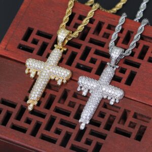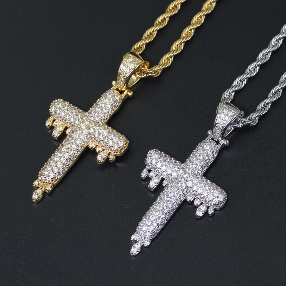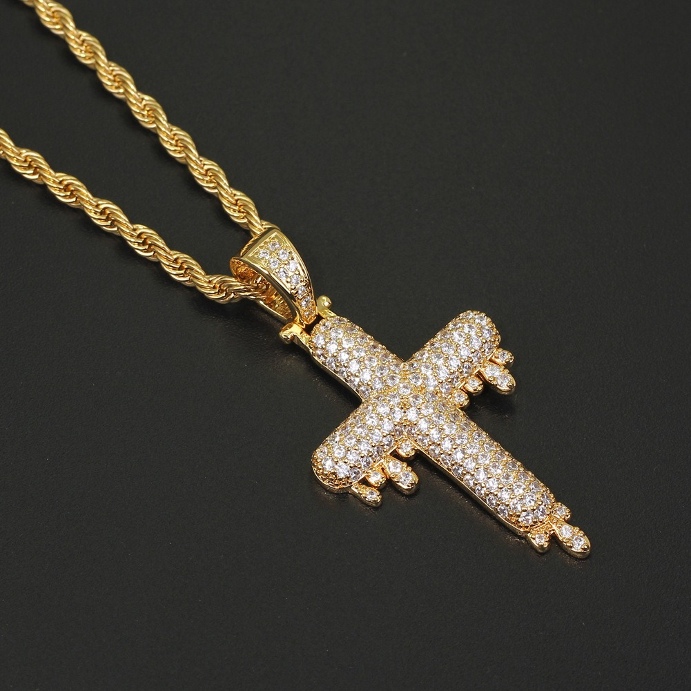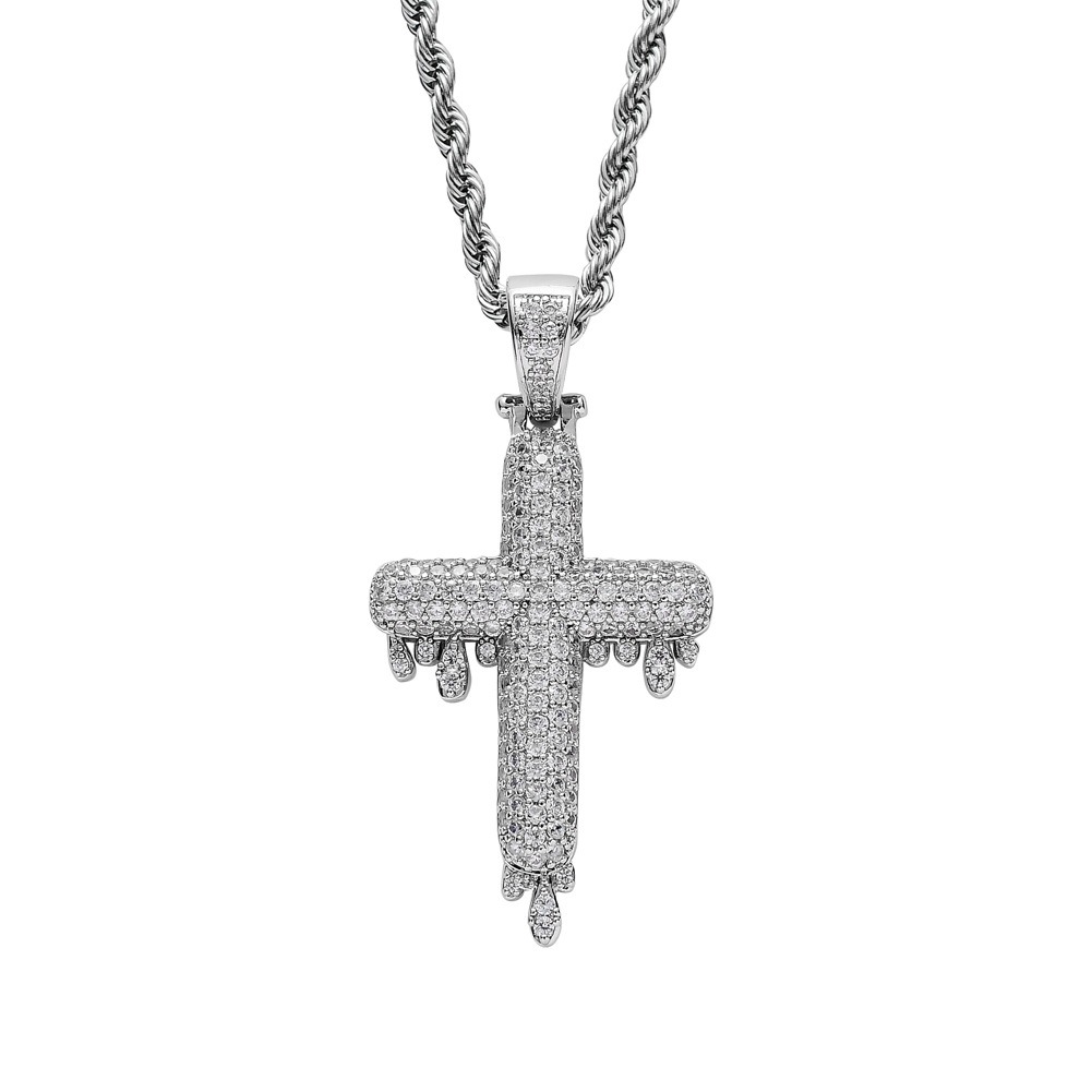 Hip hop pendant copper inlaid with zirconia droplet cross shape
