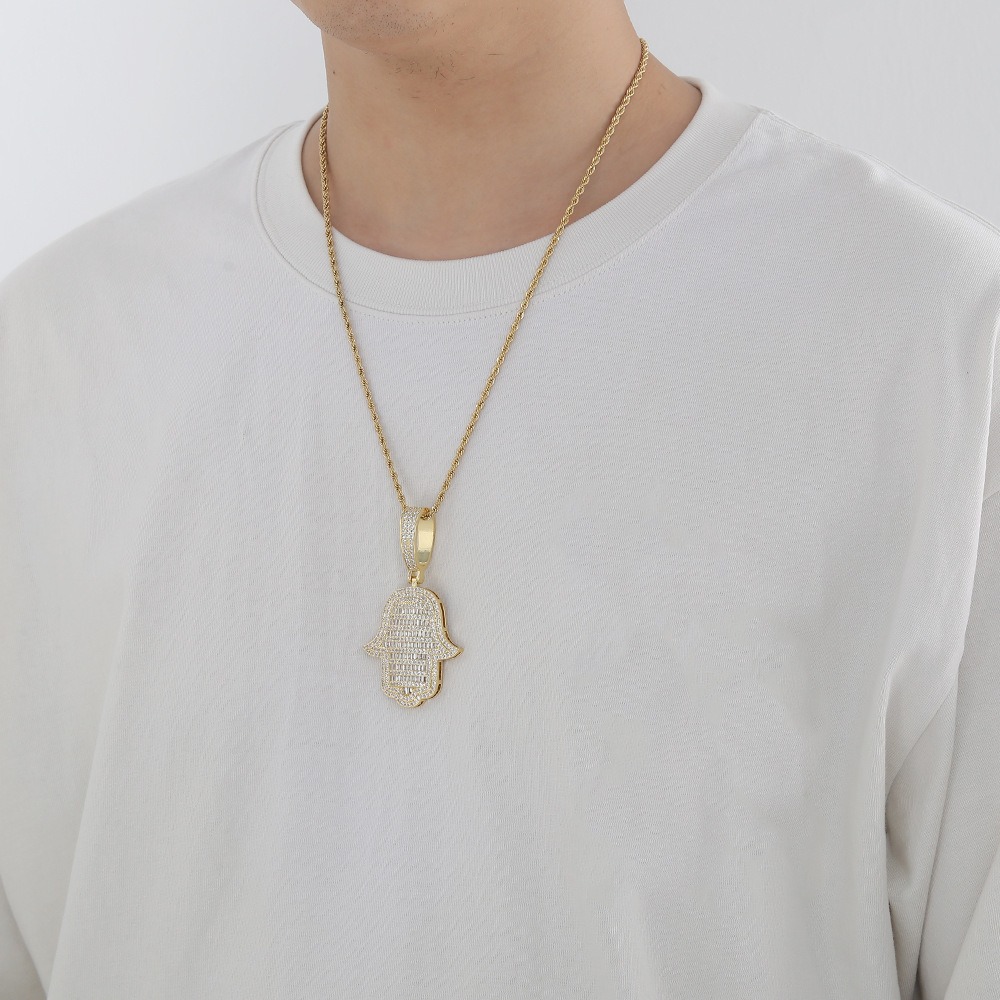 Hip Hop pendant copper inlaid with zirconia fatima’s palm shape