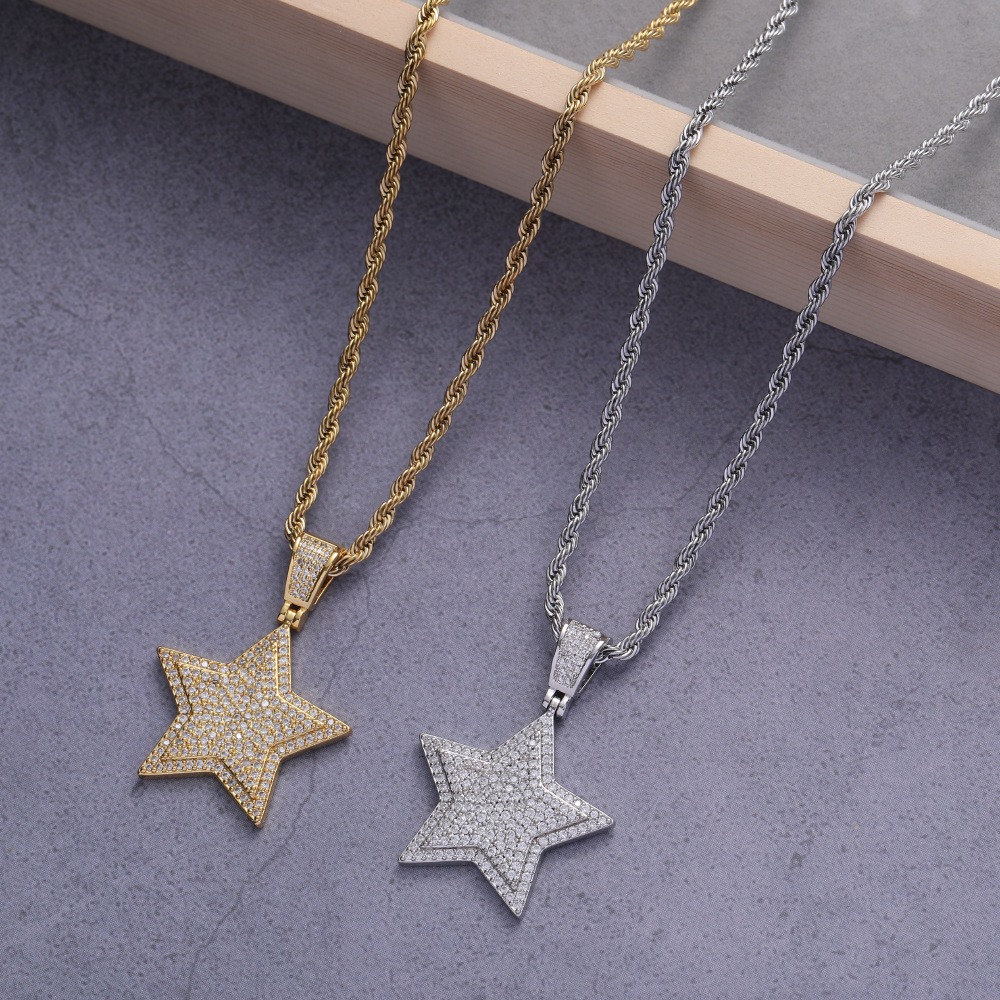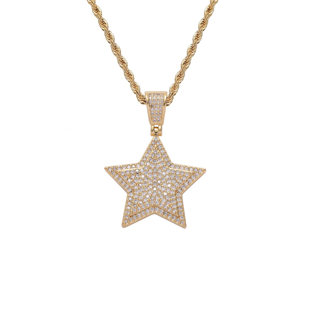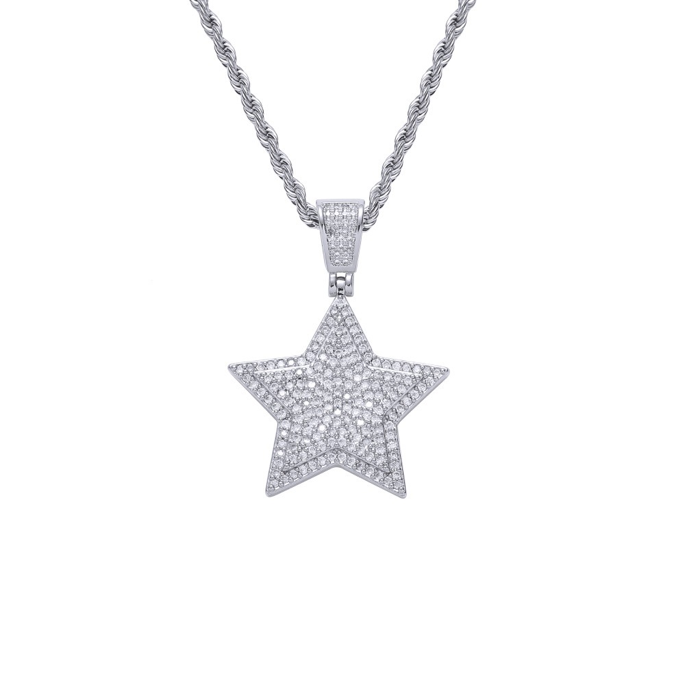 Hip hop pendant copper inlaid with zirconia pentagram shape