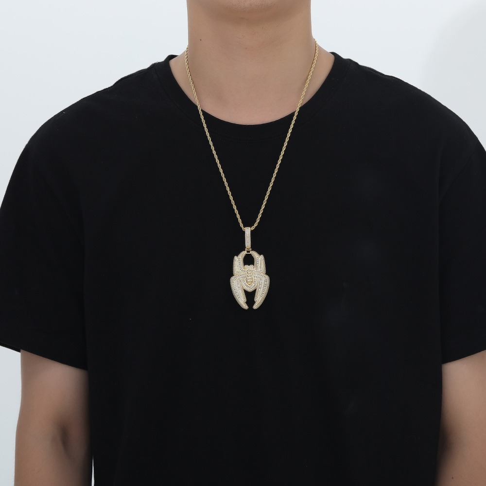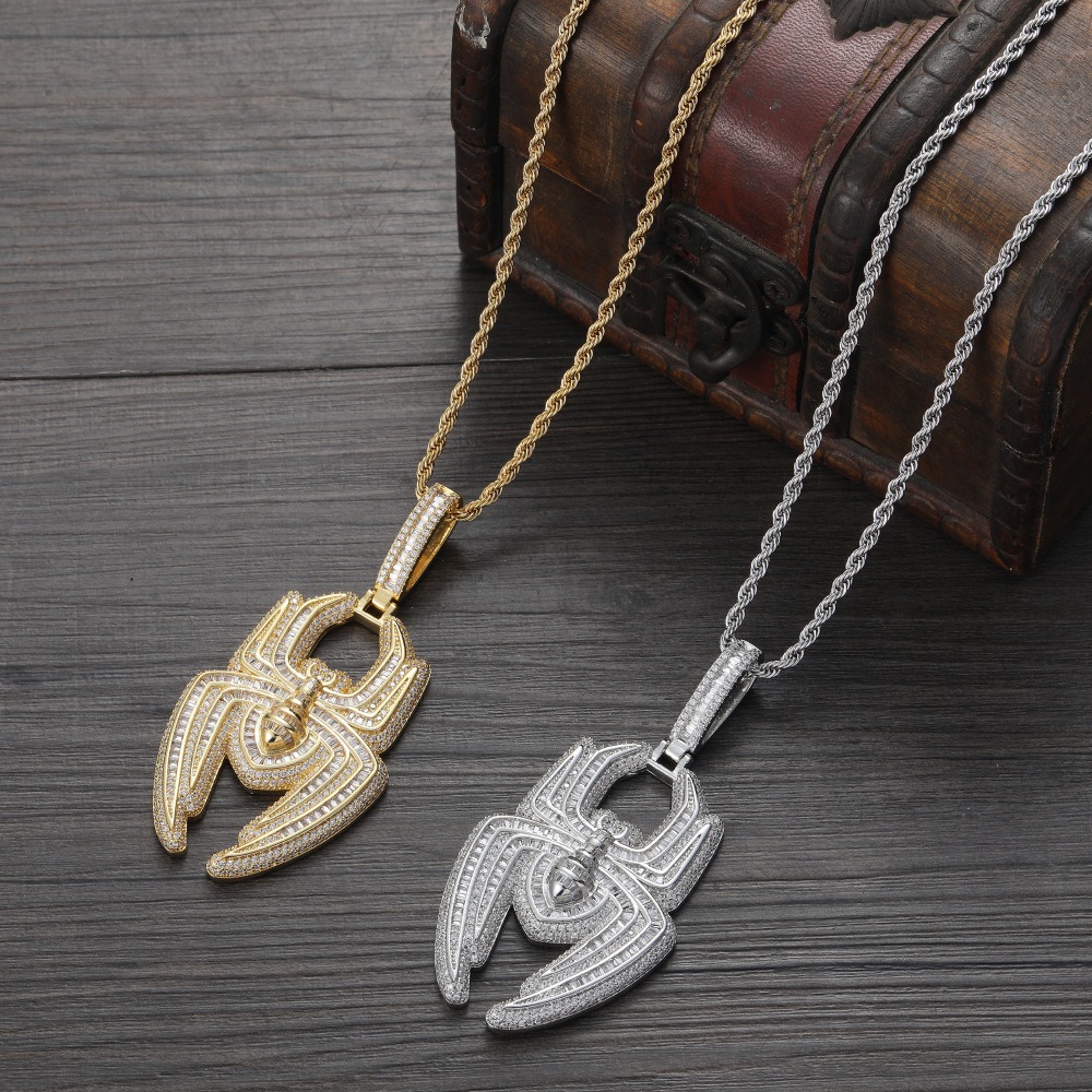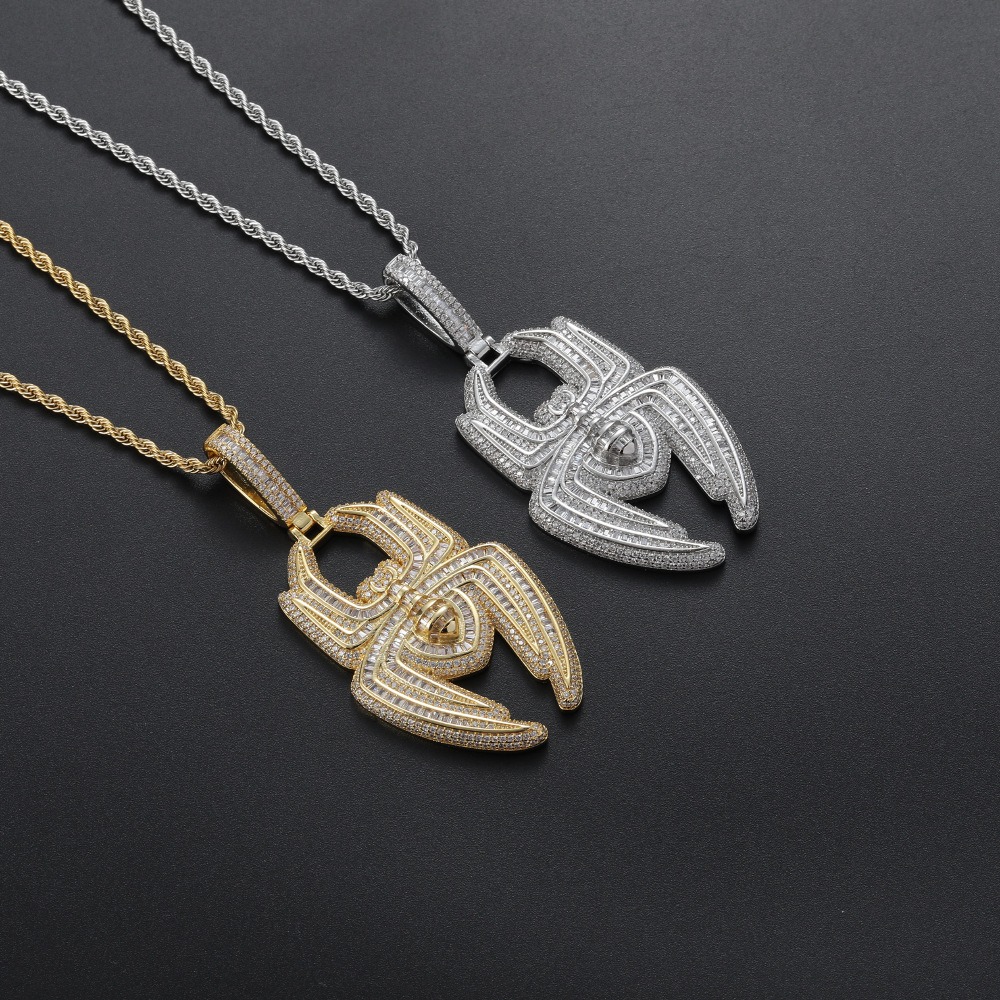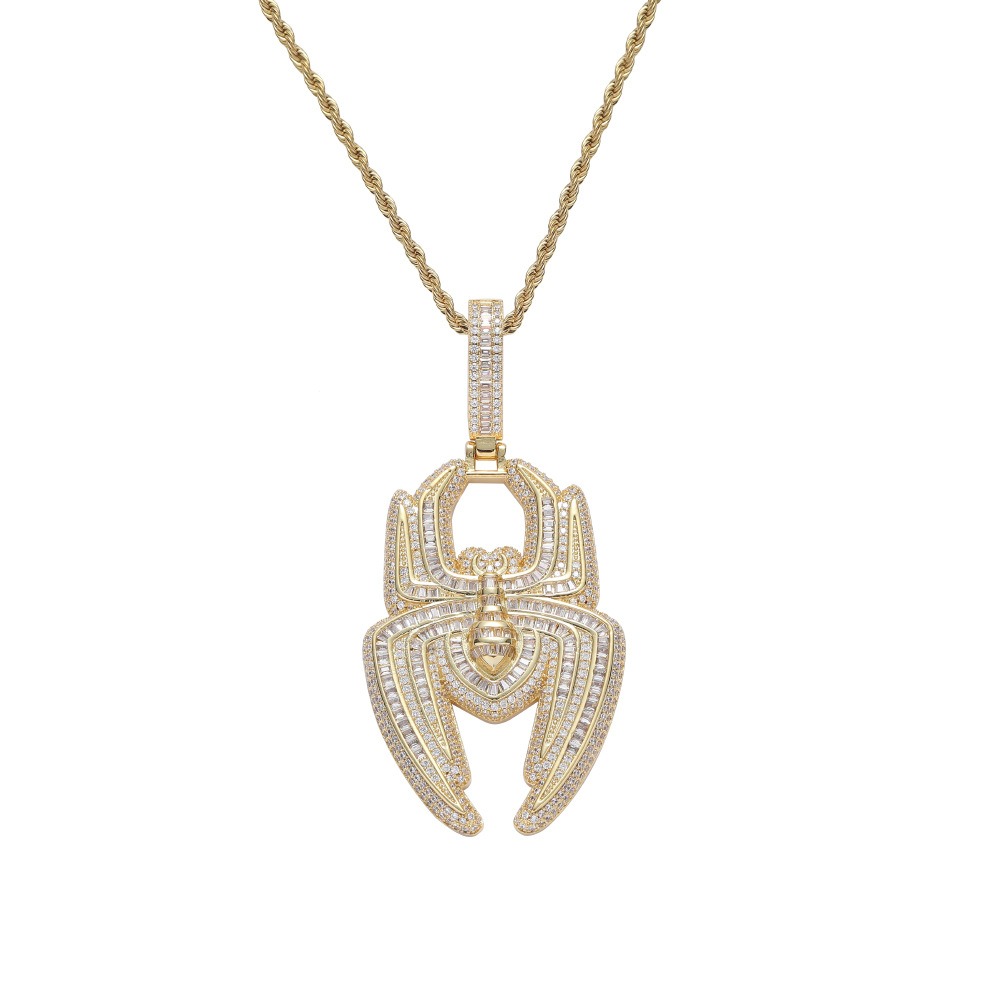 Hip hop pendant copper inlaid with zirconia spider shape