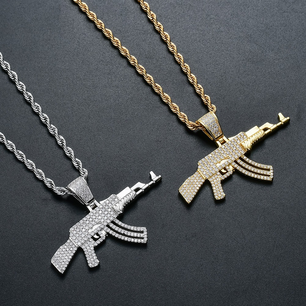 Hip hop pendant copper inlaid with zirconium AK47 shape