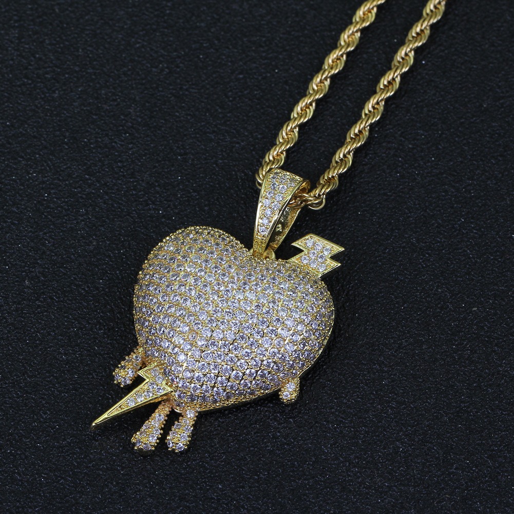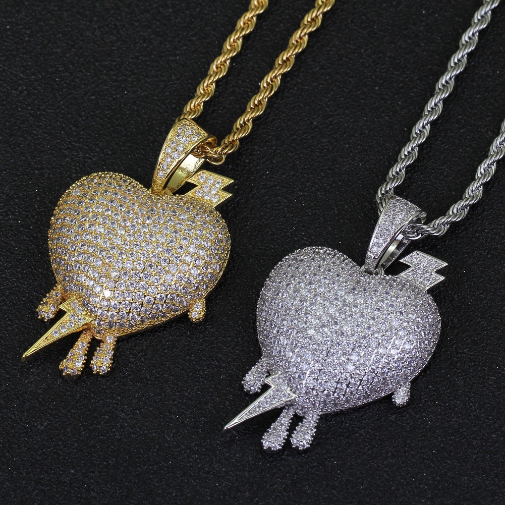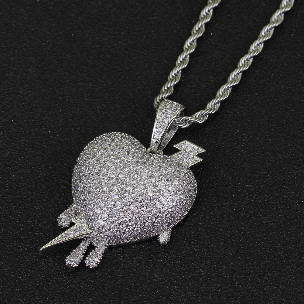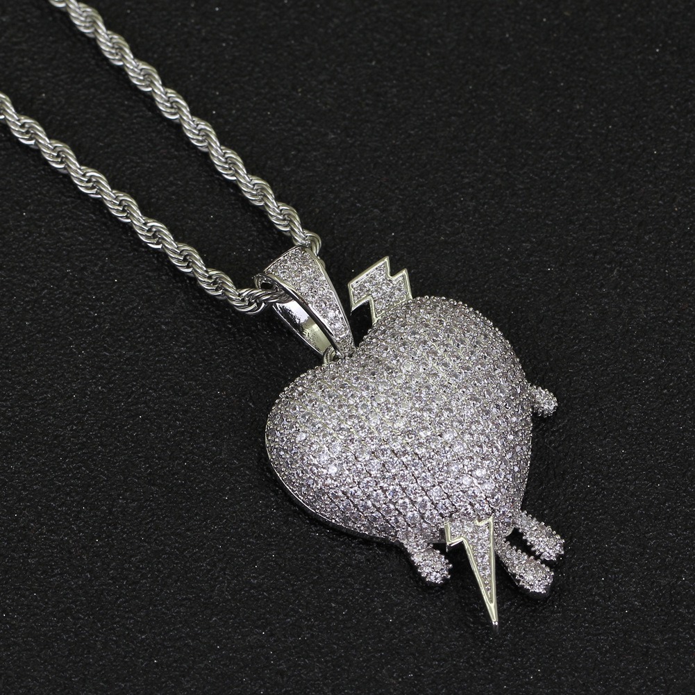 Hip hop pendant copper inlaid with zirconium lightning heart shape