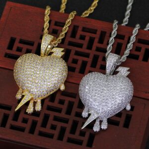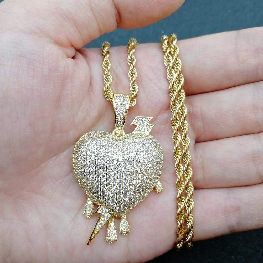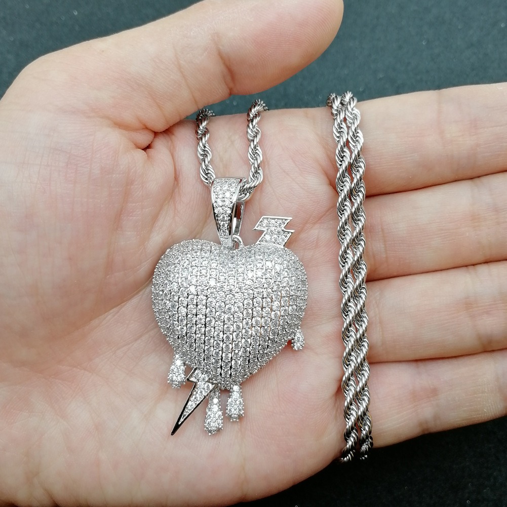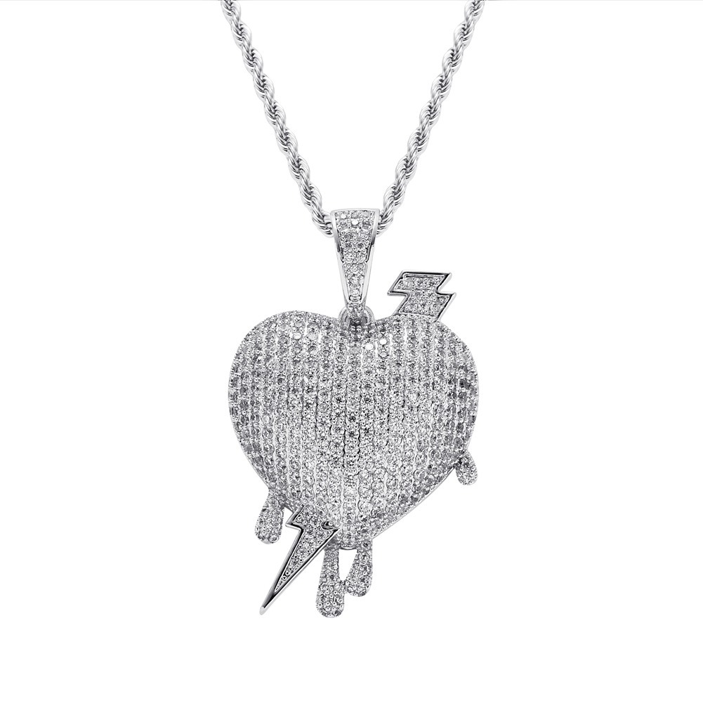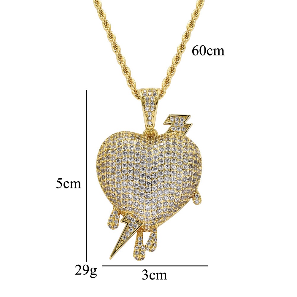 Hip hop pendant copper inlaid with zirconium lightning heart shape