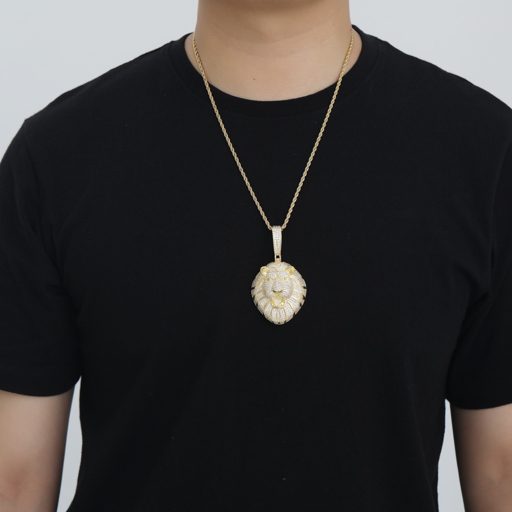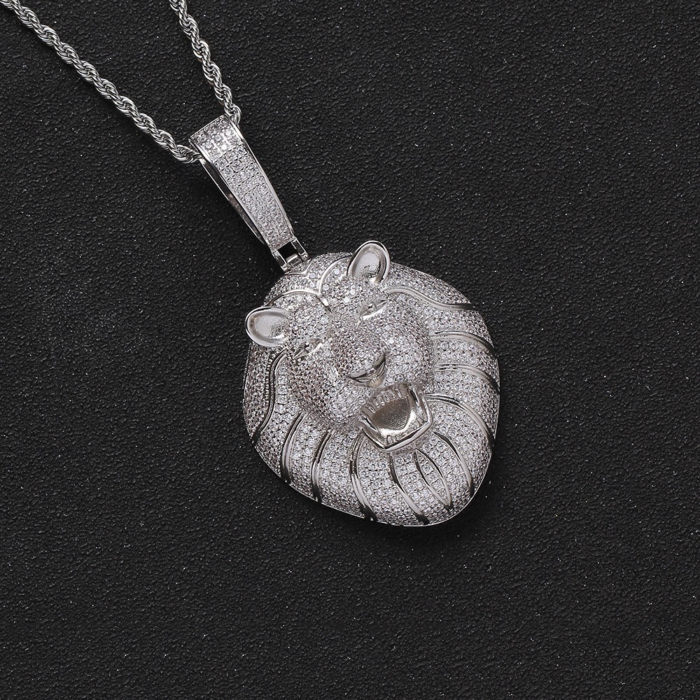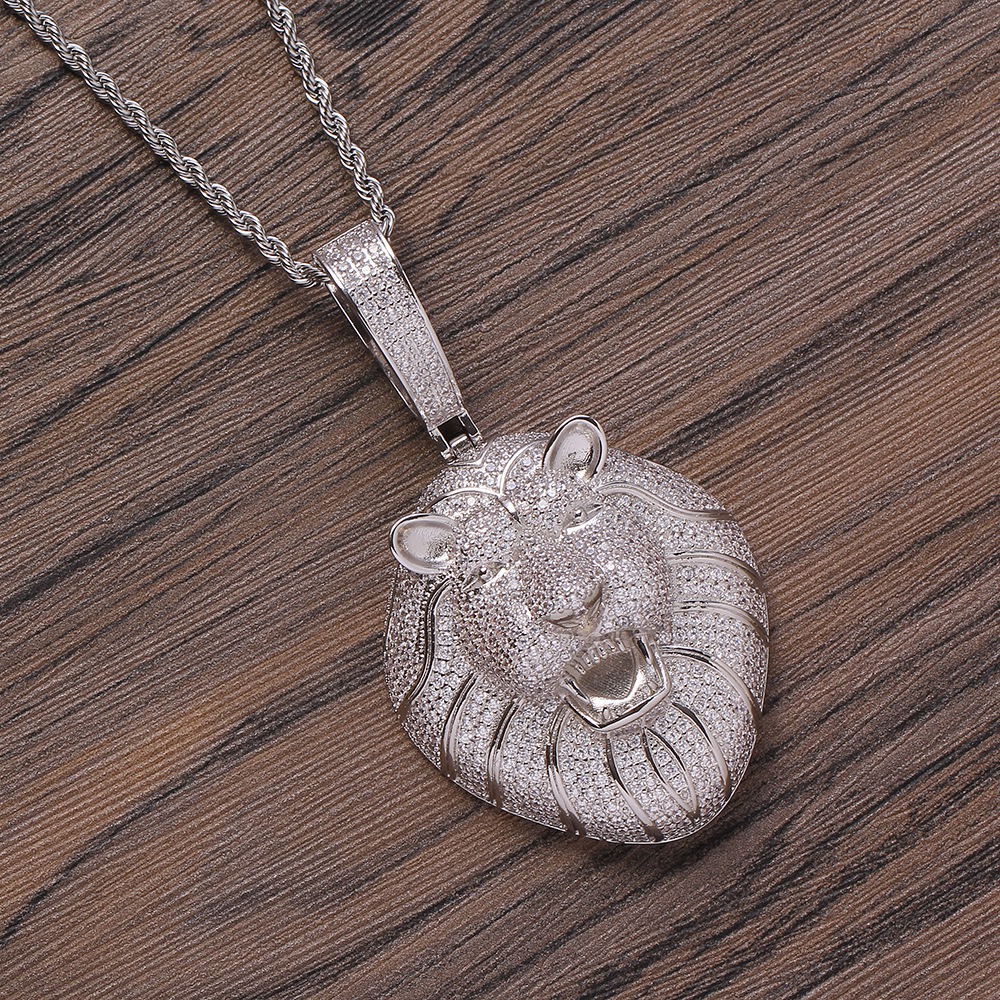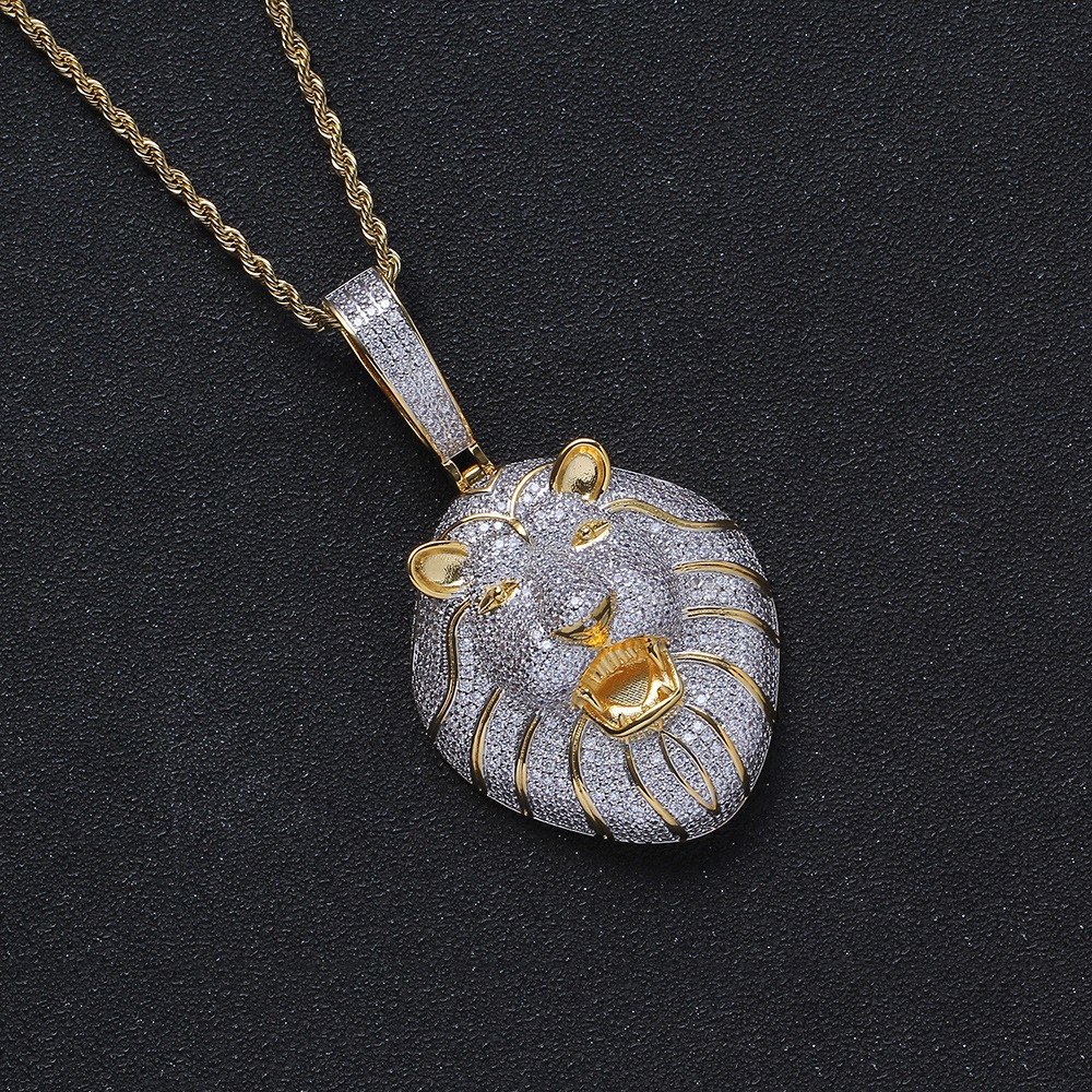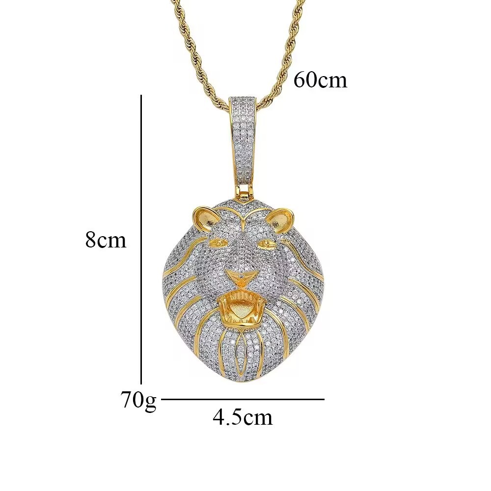 Hip hop pendant copper inlaid with zirconium lion head shape