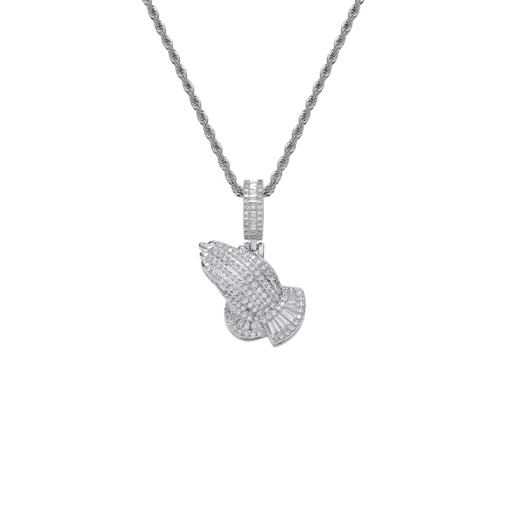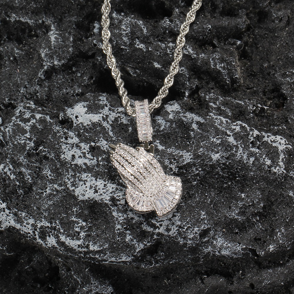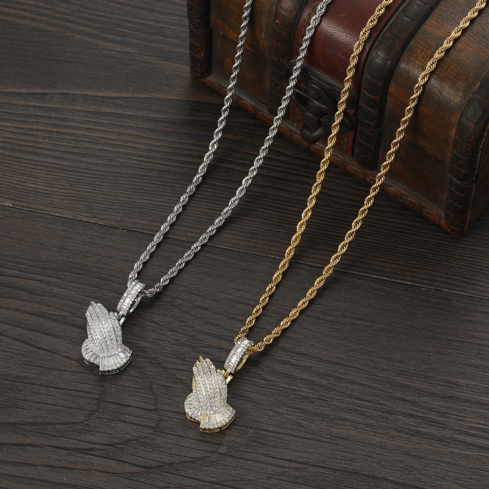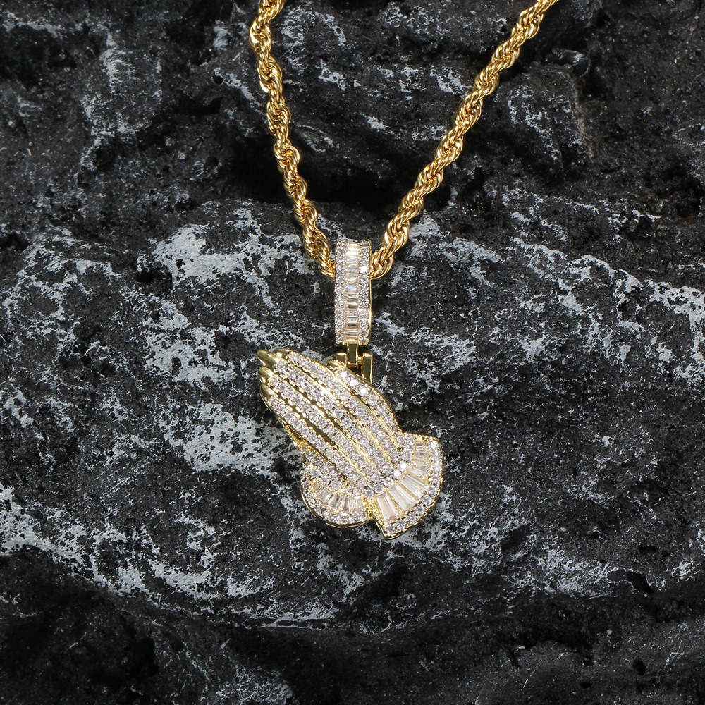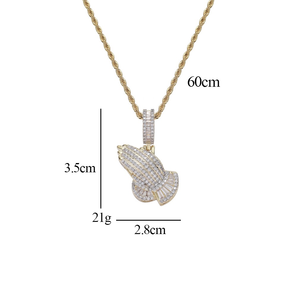 Hip hop pendant copper inlaid with zirconium praying hand shape