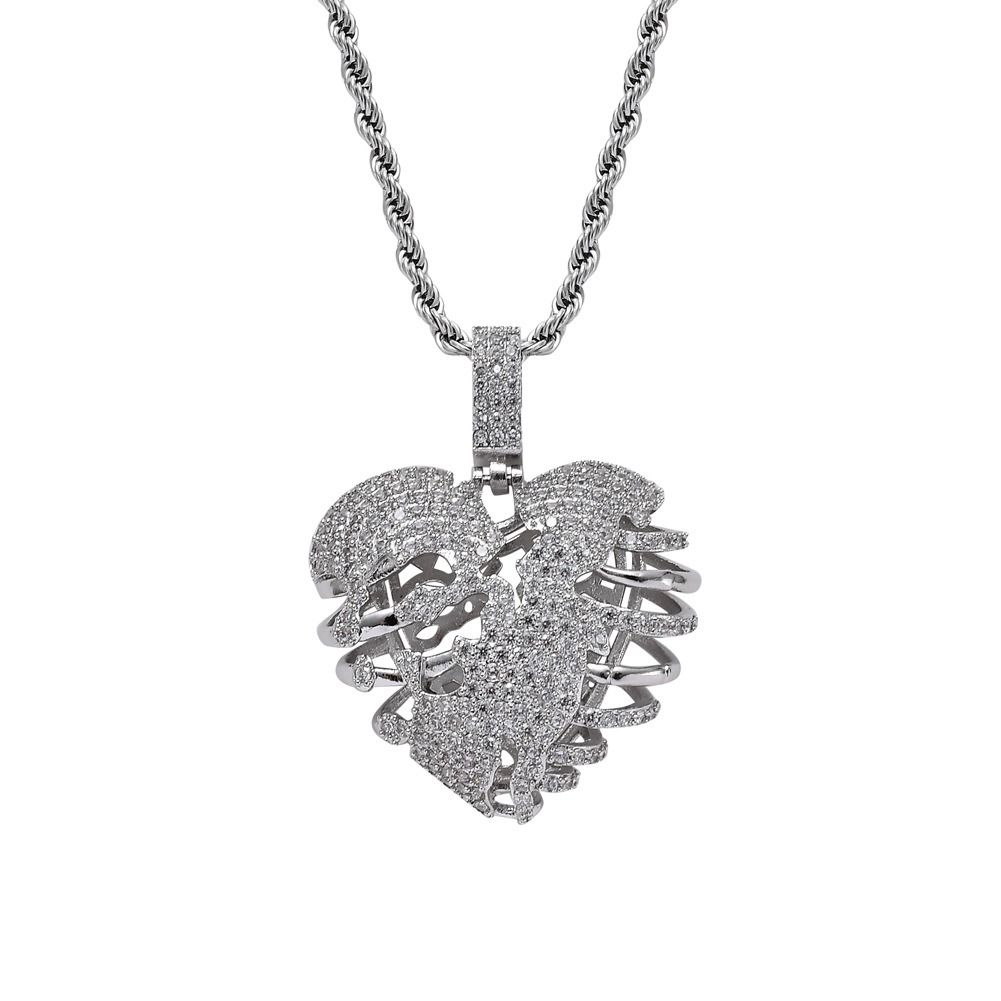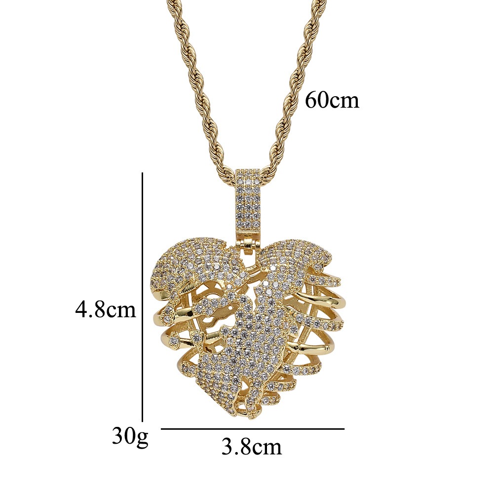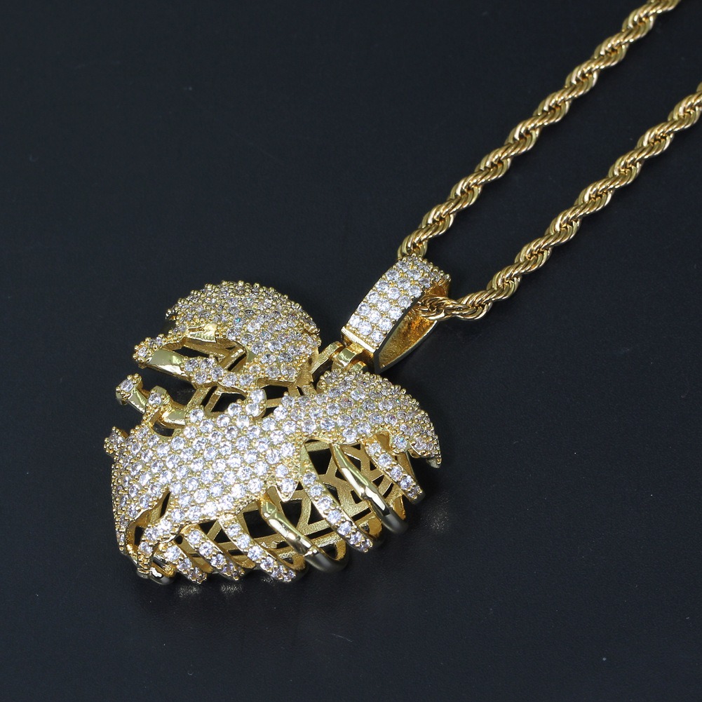 Hip hop pendant copper inlaid with zirconium three-dimensional hollow shape