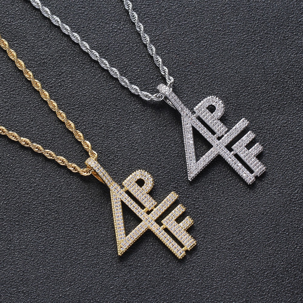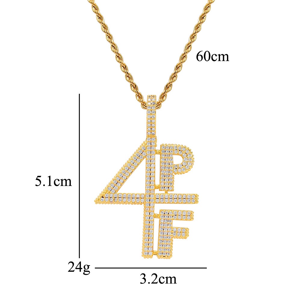 Hip Hop Pendant Copper Inlaid Zircon 4PF Number Letter Shape