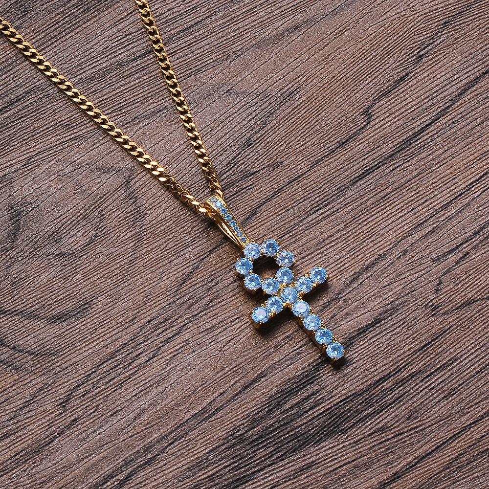 Hip hop pendant copper inlaid zircon anka cross