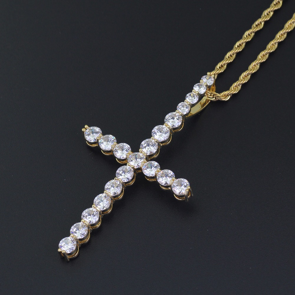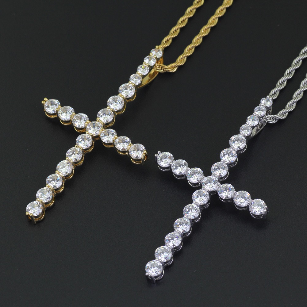 Hip hop pendant copper inlaid zircon cross shape