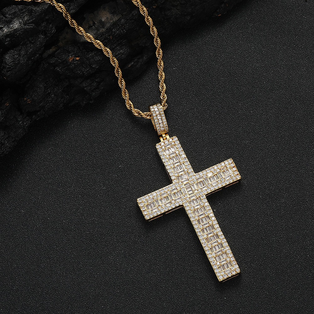 Hip hop pendant copper inlaid zircon cross shape