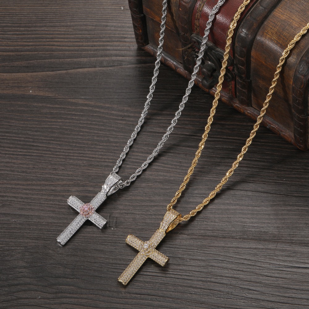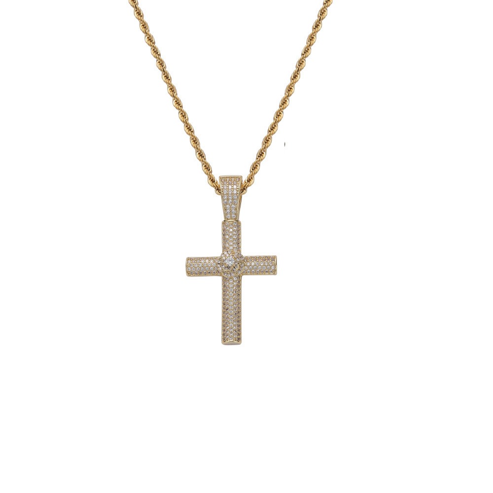 Hip hop pendant copper inlaid zircon cross shape