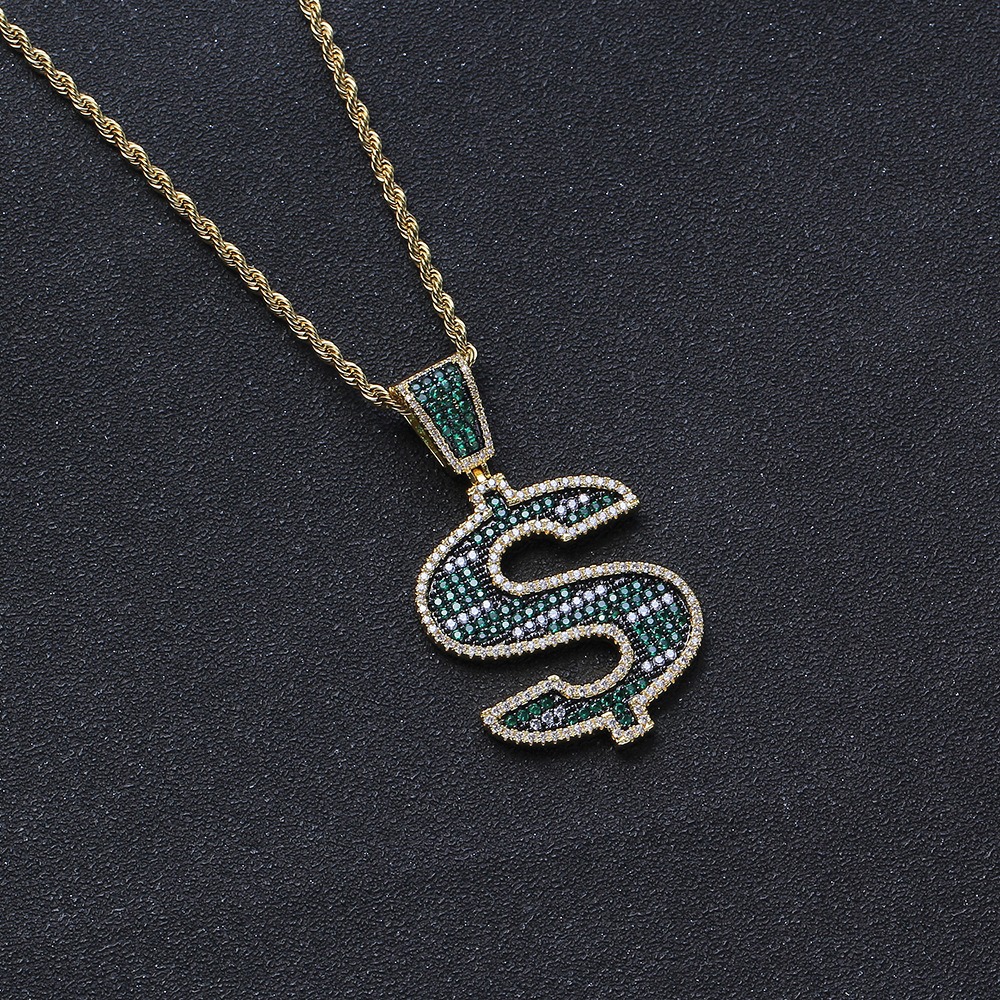 Hip Hop pendant copper inlaid zircon dollar shape