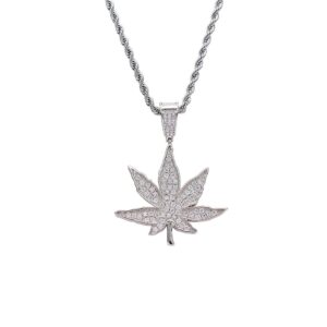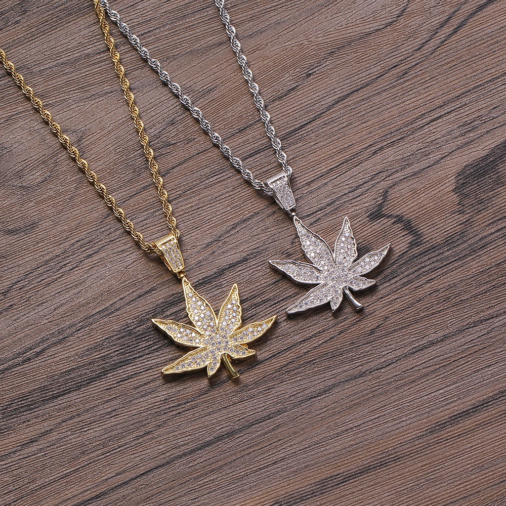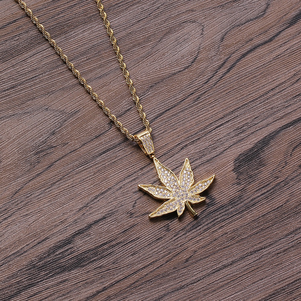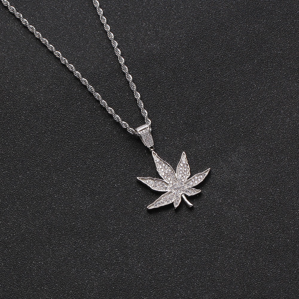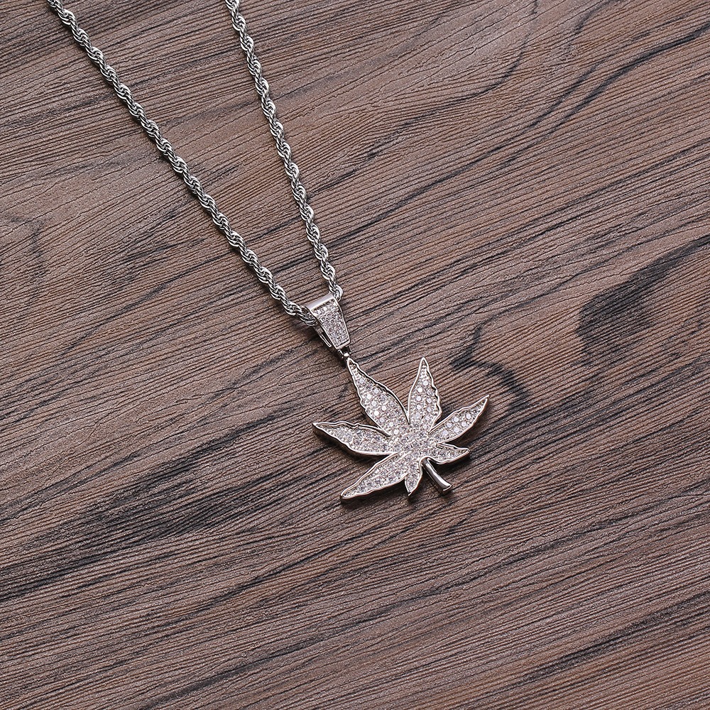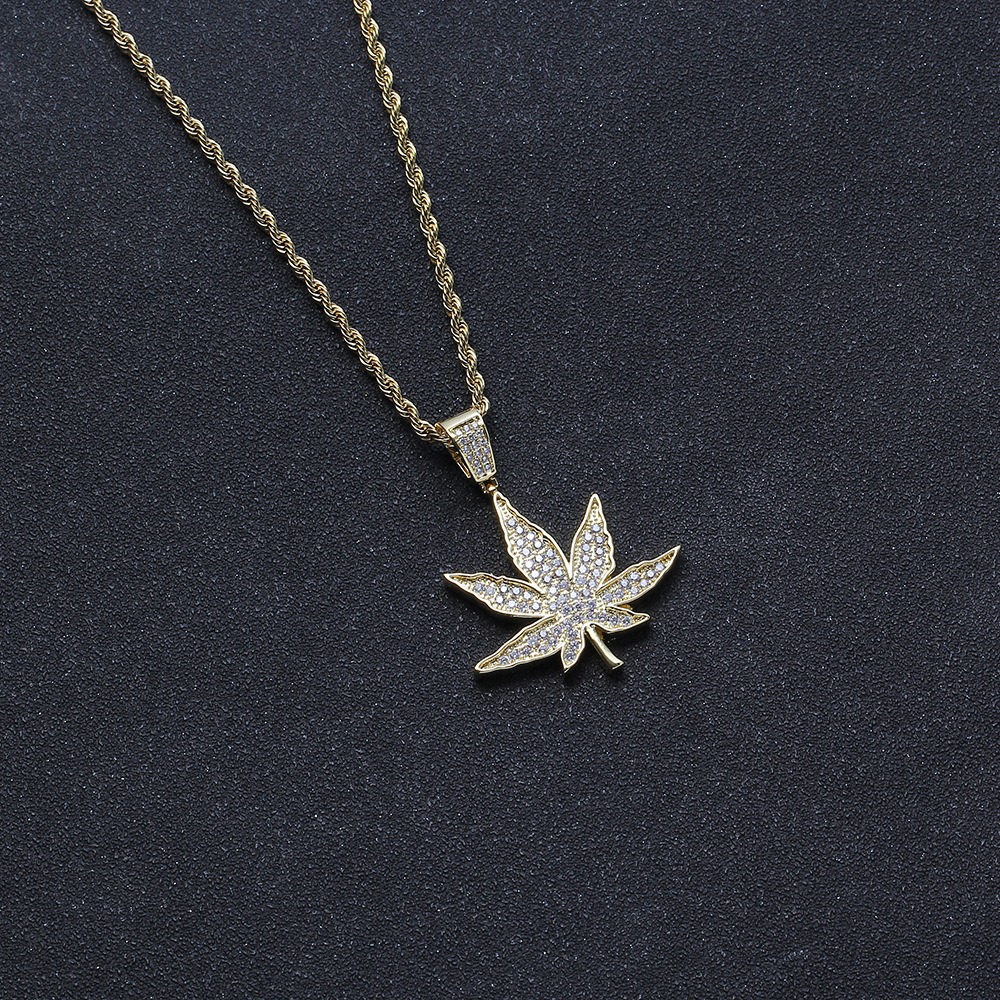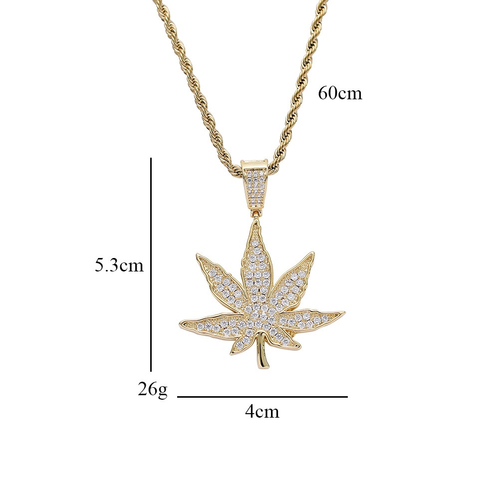 Hip hop pendant copper inlaid zircon Maple Leaf Chinese Restaurant leaf shape