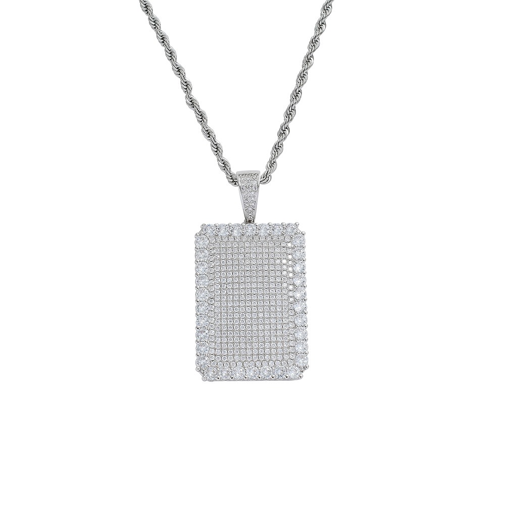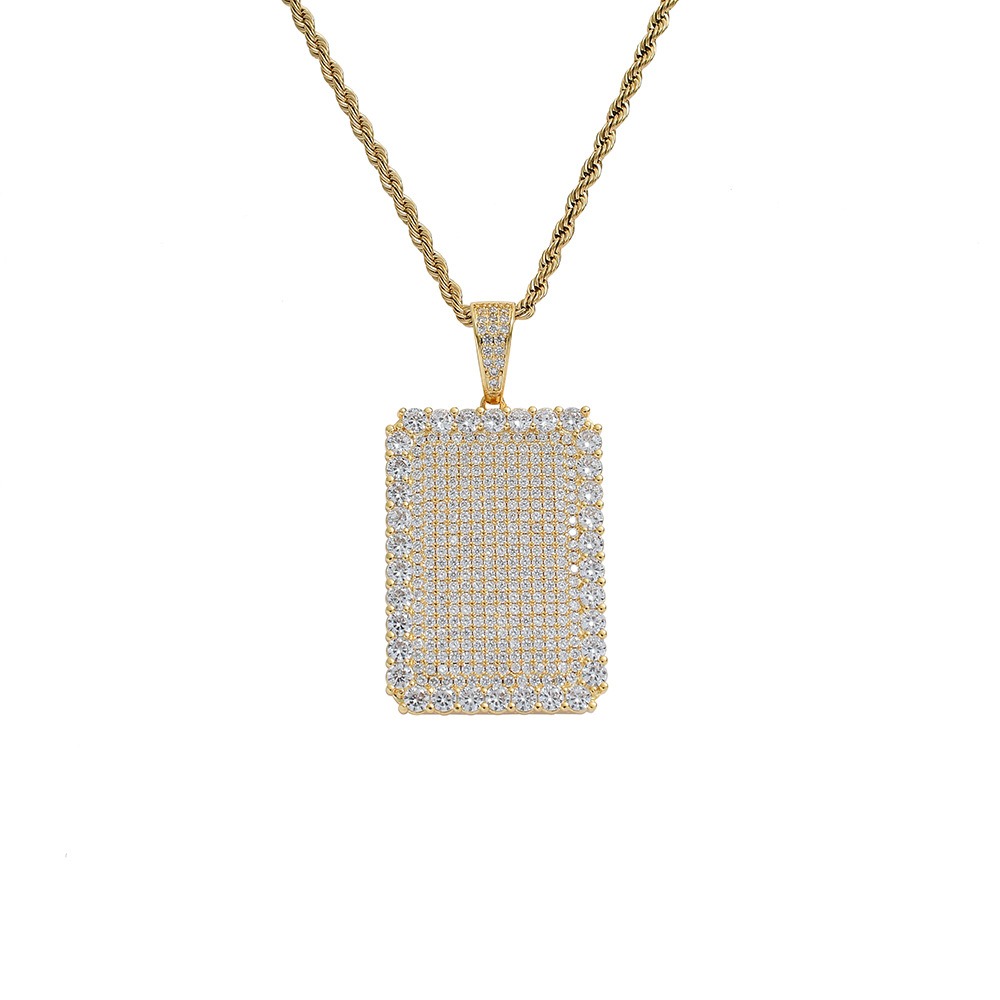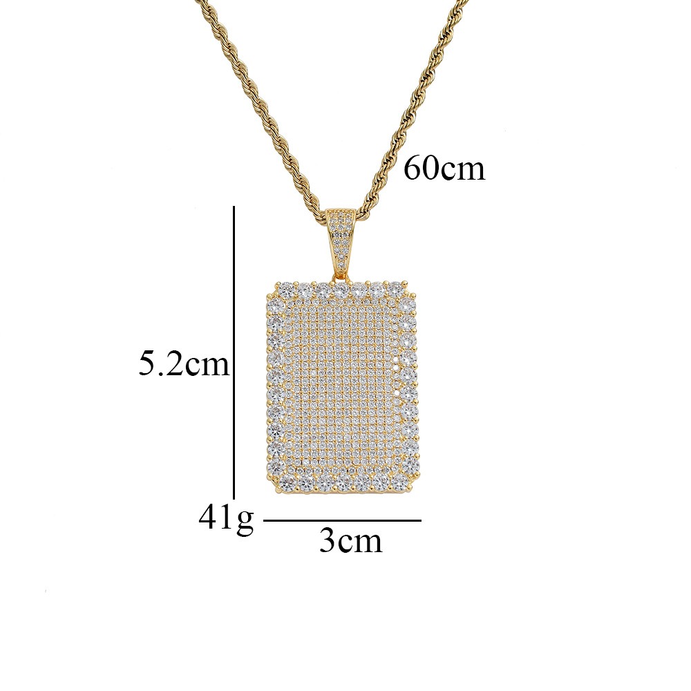 Hip hop pendant copper inlaid zircon rectangular military plaque