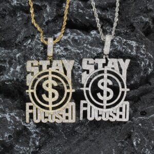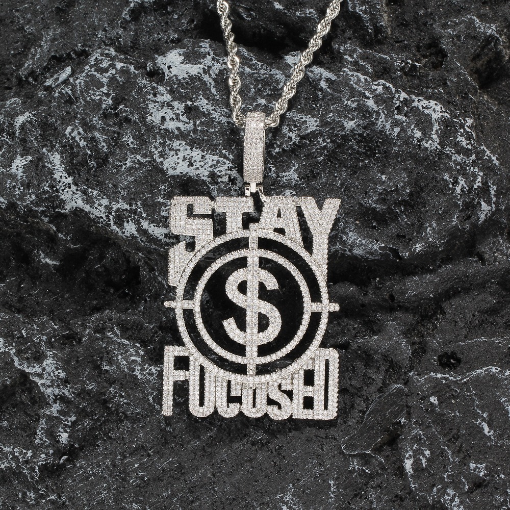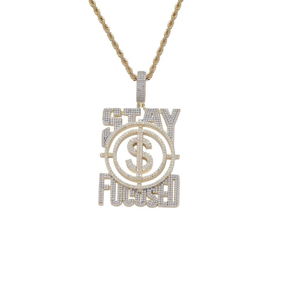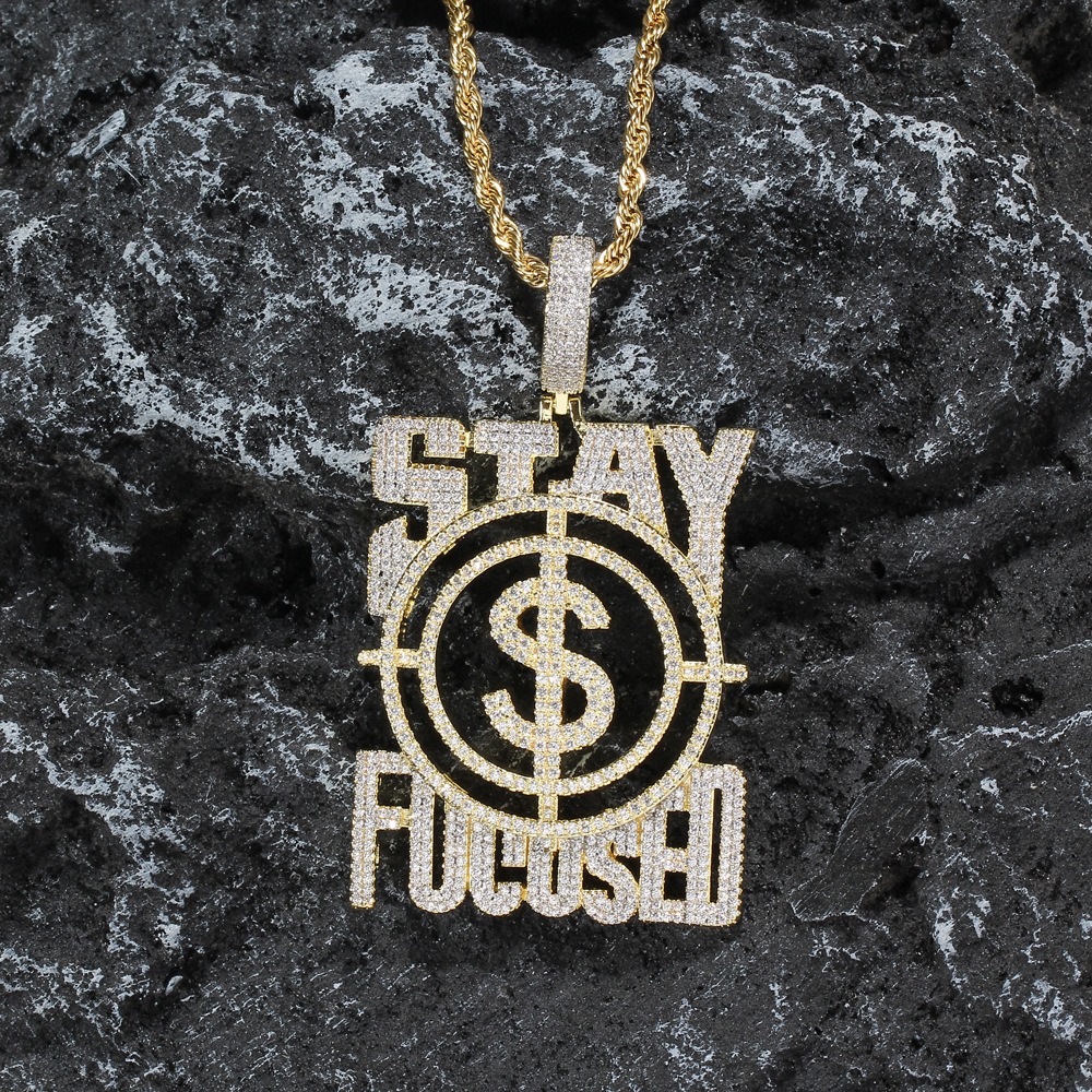 Hip Hop Pendant Copper Inlaid Zircon Stay Focused Characters