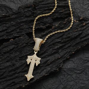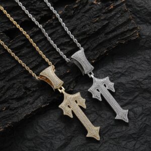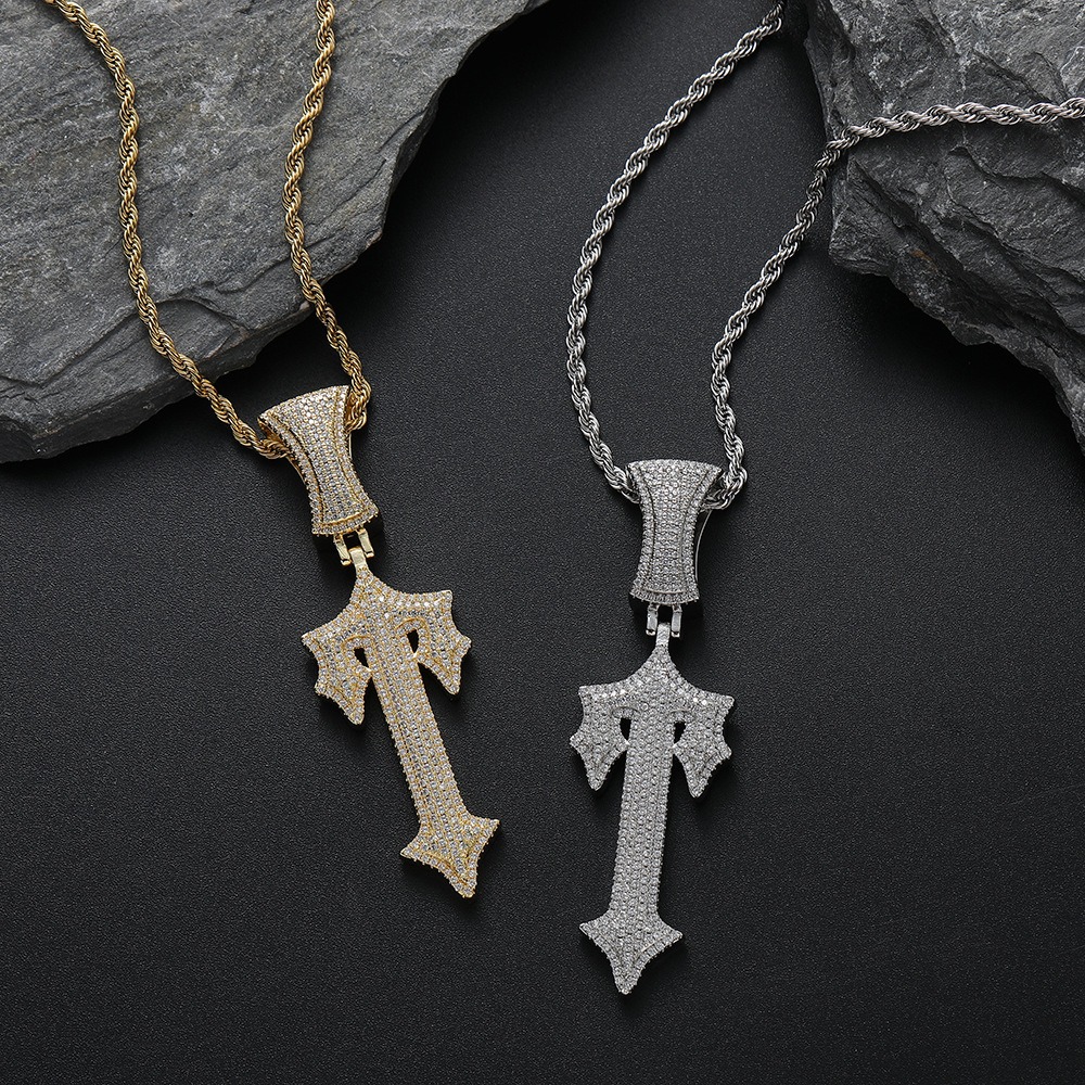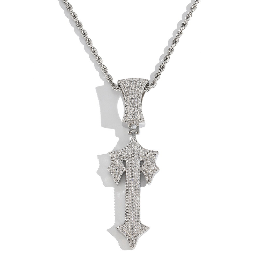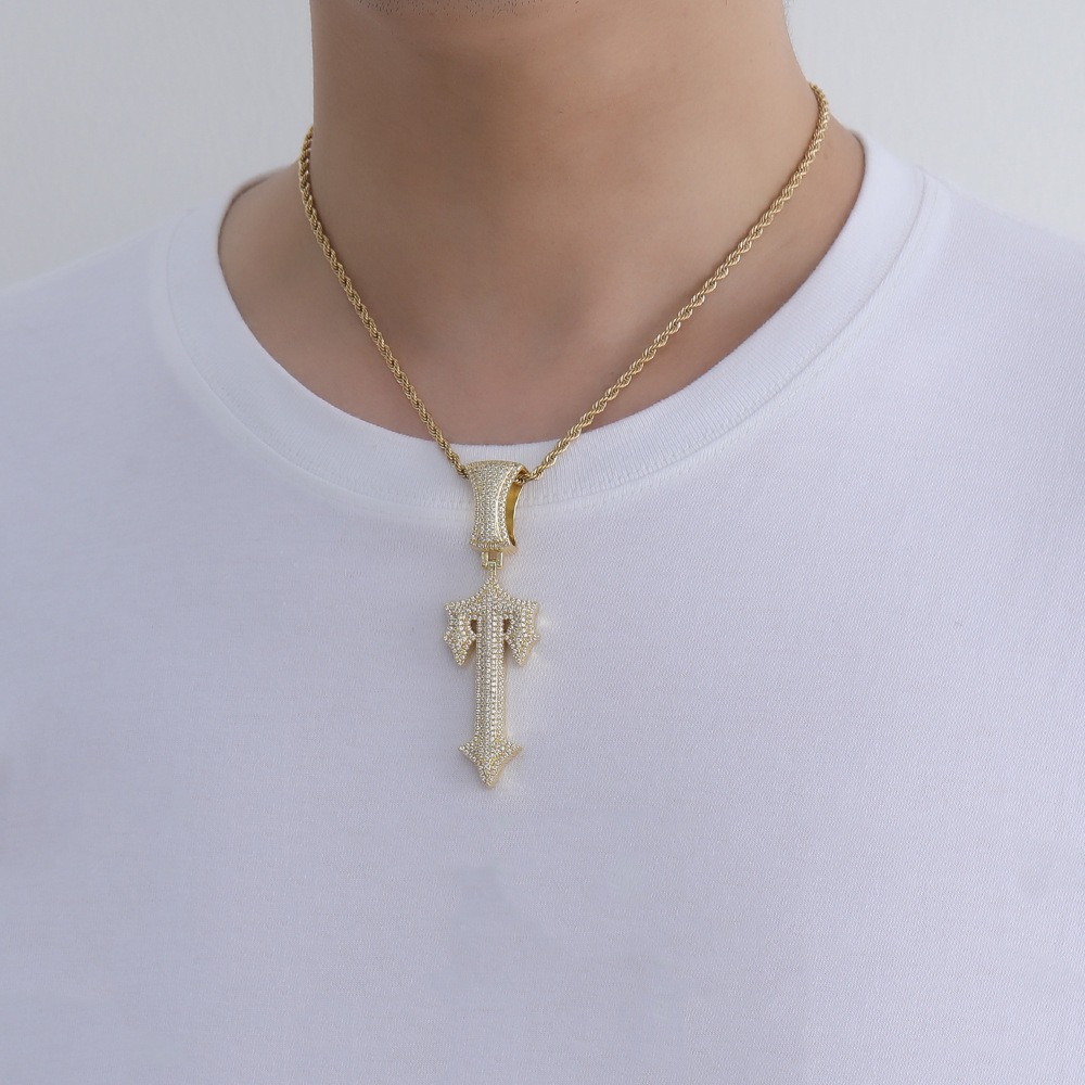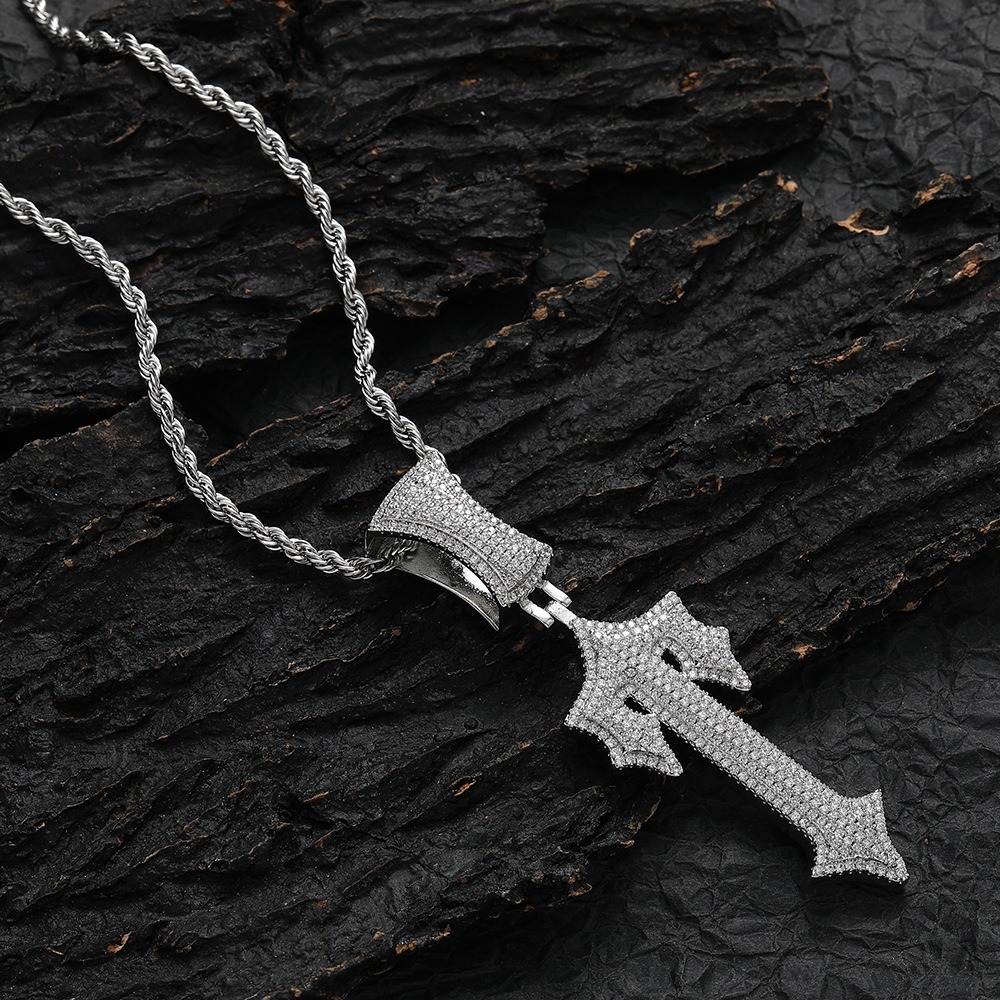Hip hop pendant copper inlaid zircon T-shaped sword cross