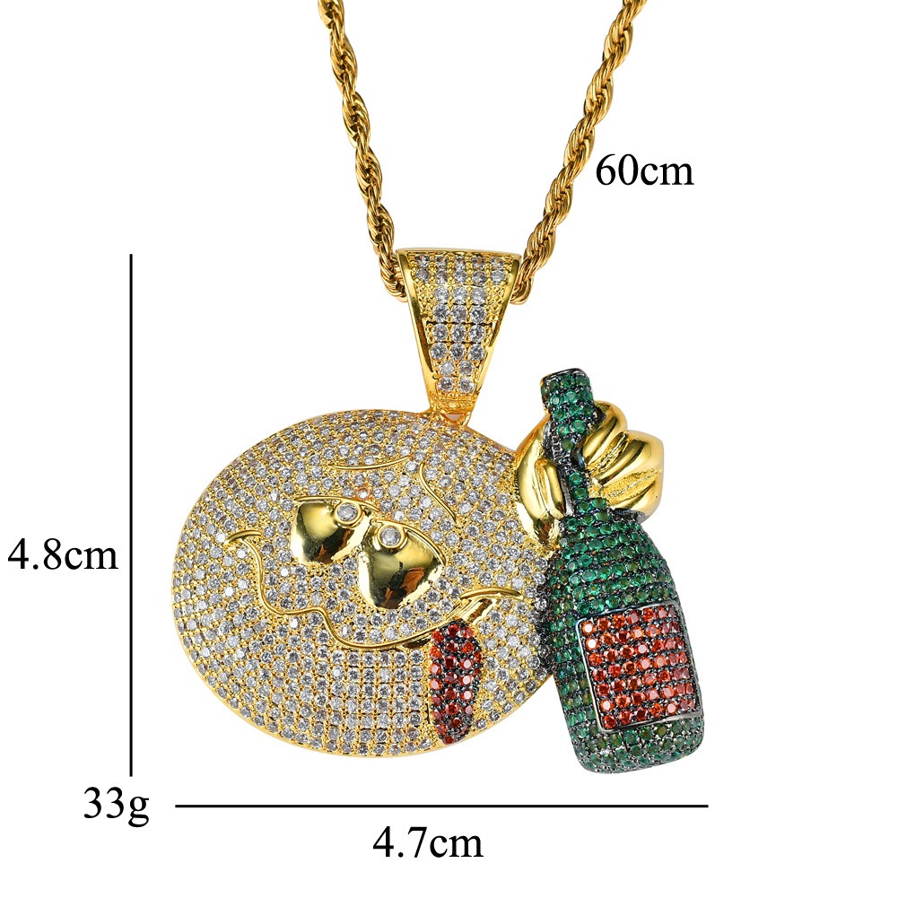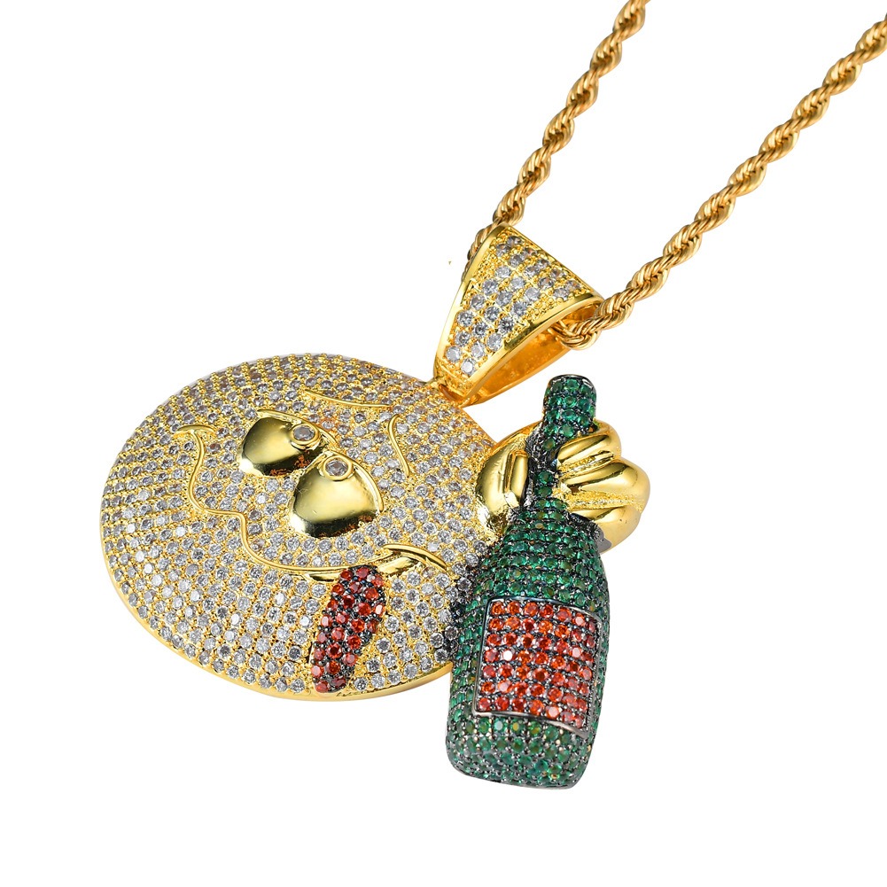 Hip hop pendant copper inlaid zircon wine bottle shape
