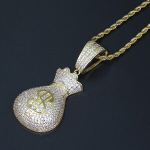 Hip Hop pendant copper inlaid zirconia money bag US dollar shape