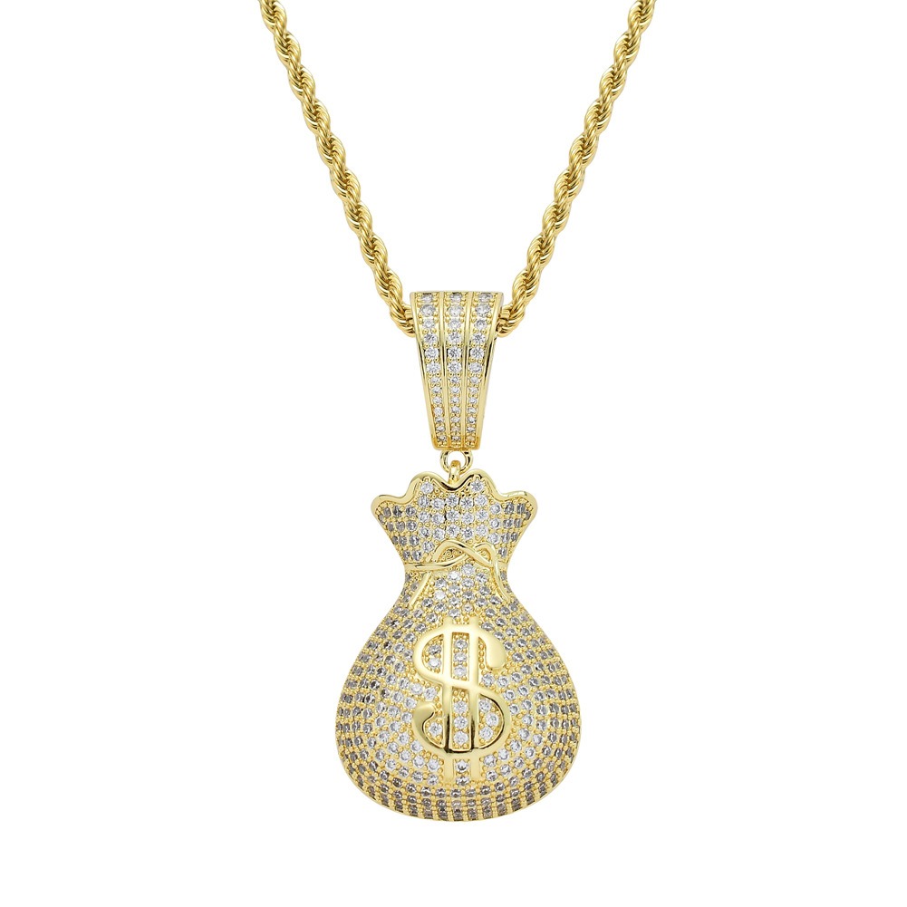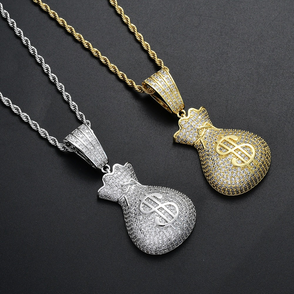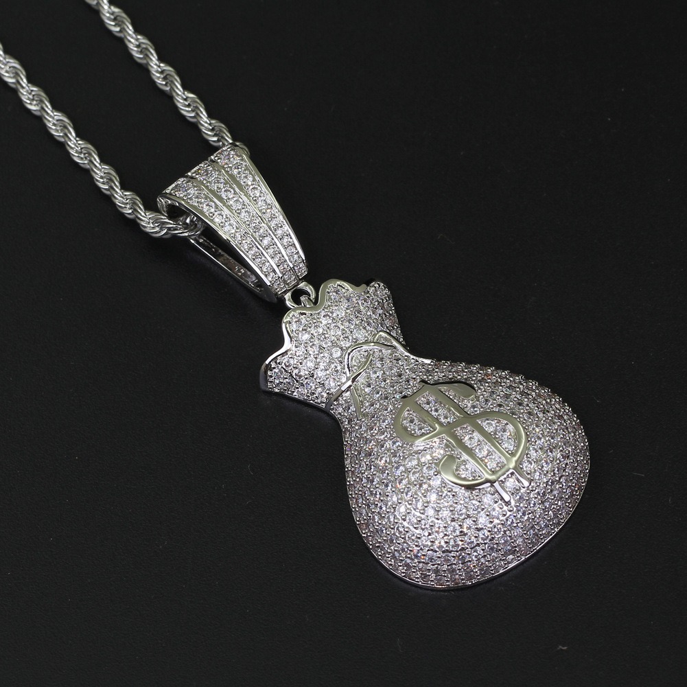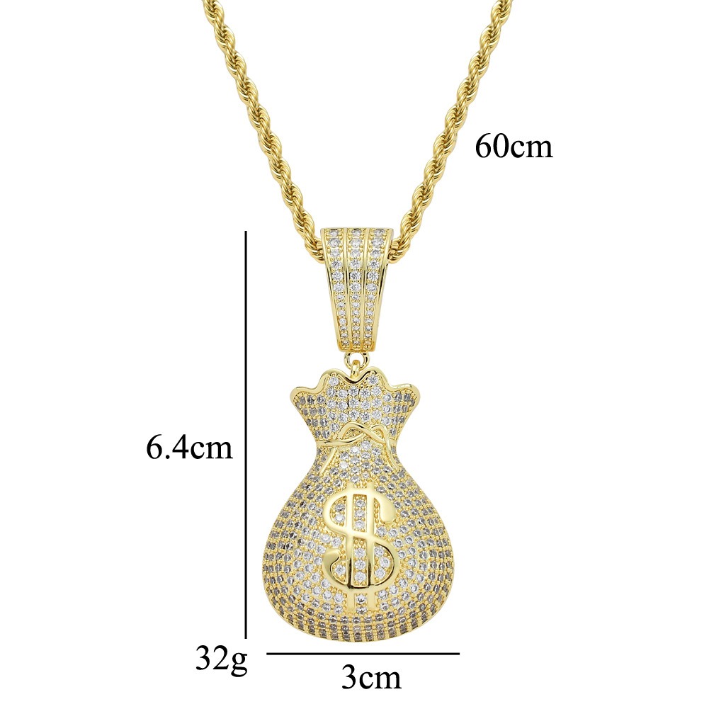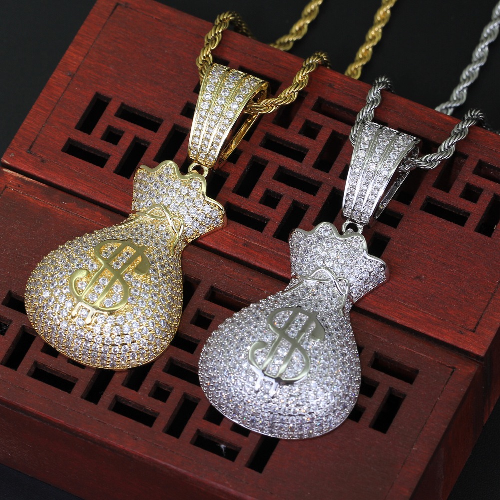 Hip Hop pendant copper inlaid zirconia money bag US dollar shape