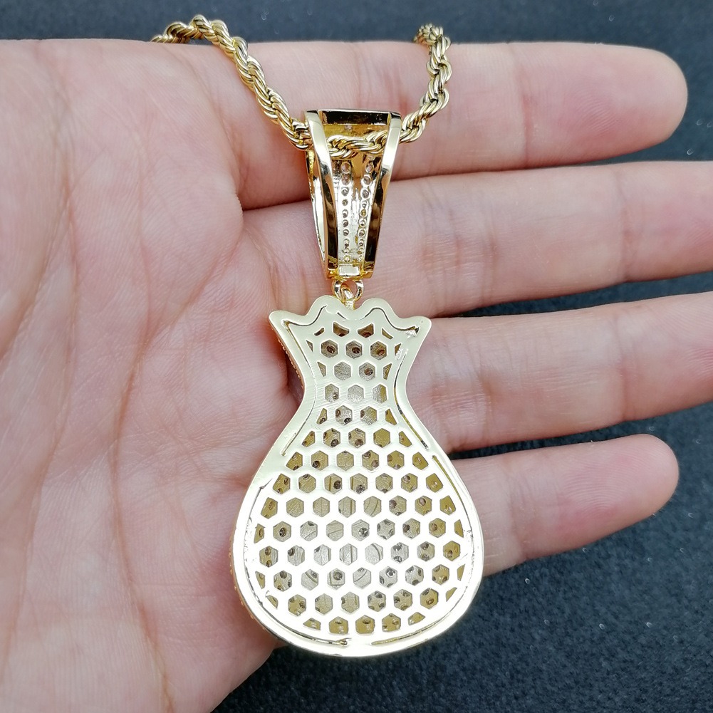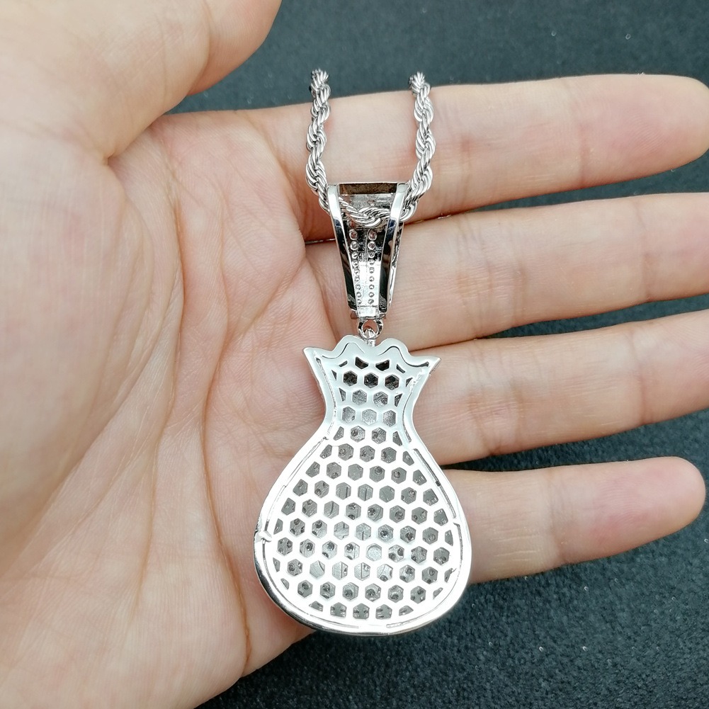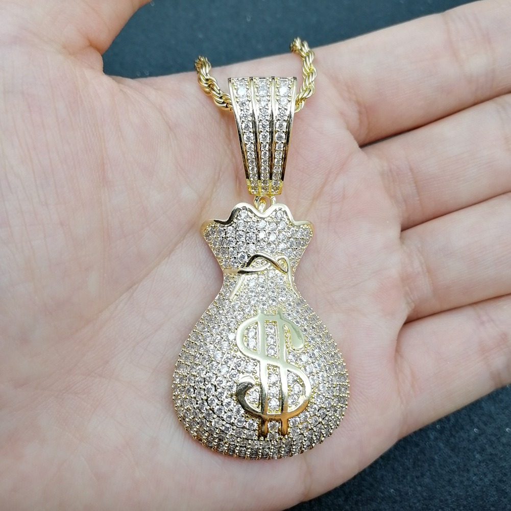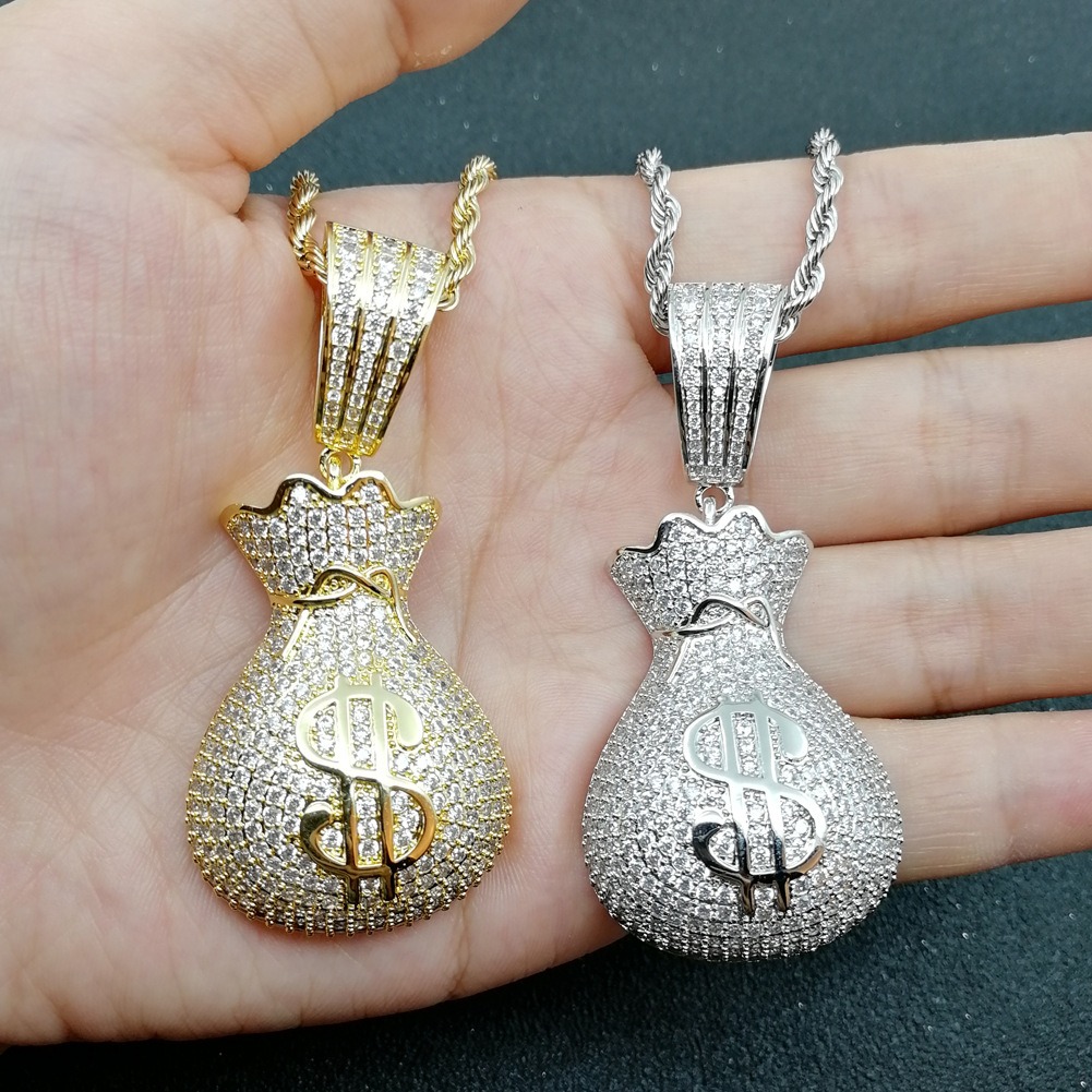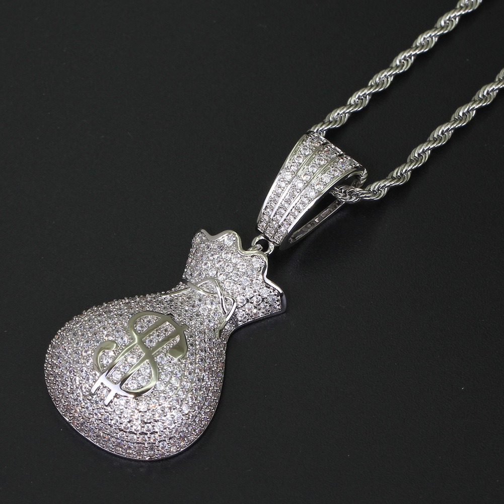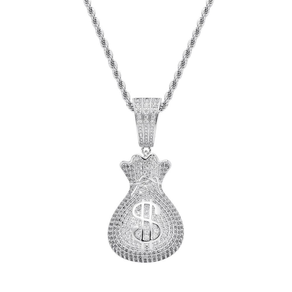 Hip Hop pendant copper inlaid zirconia money bag US dollar shape