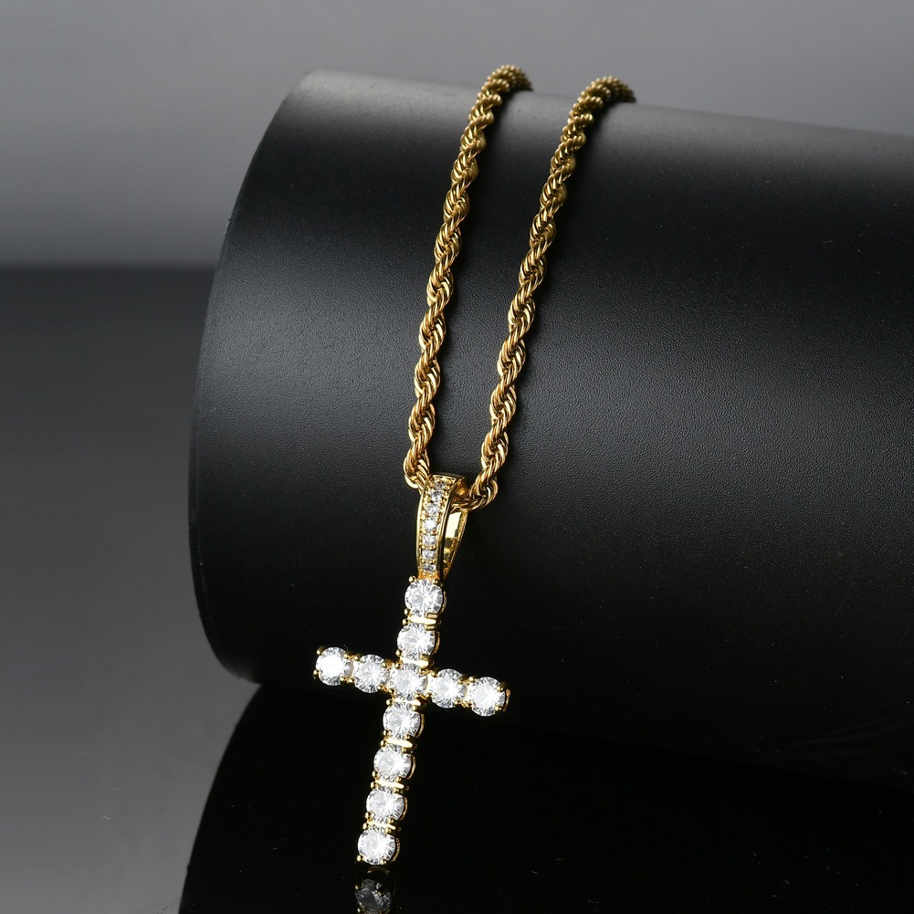 Hip hop pendant copper inlaid zirconium cross shape