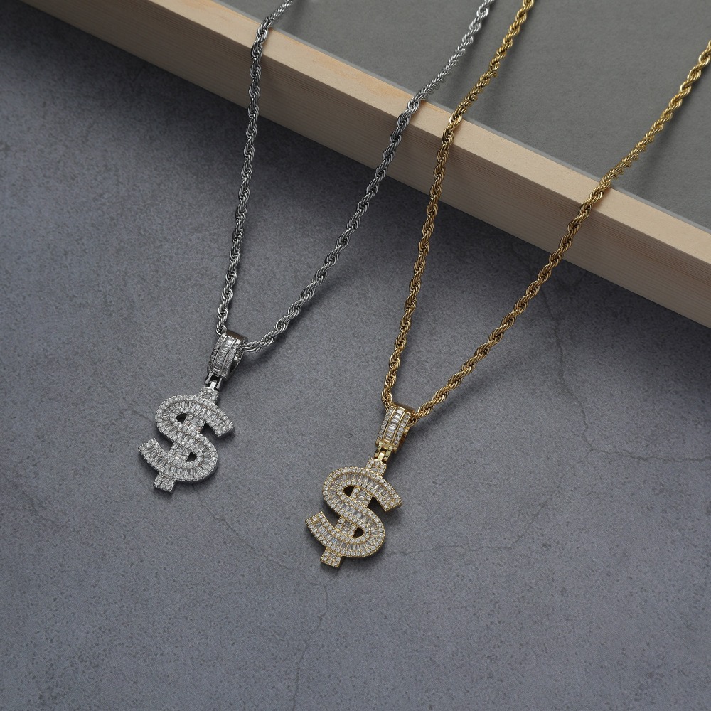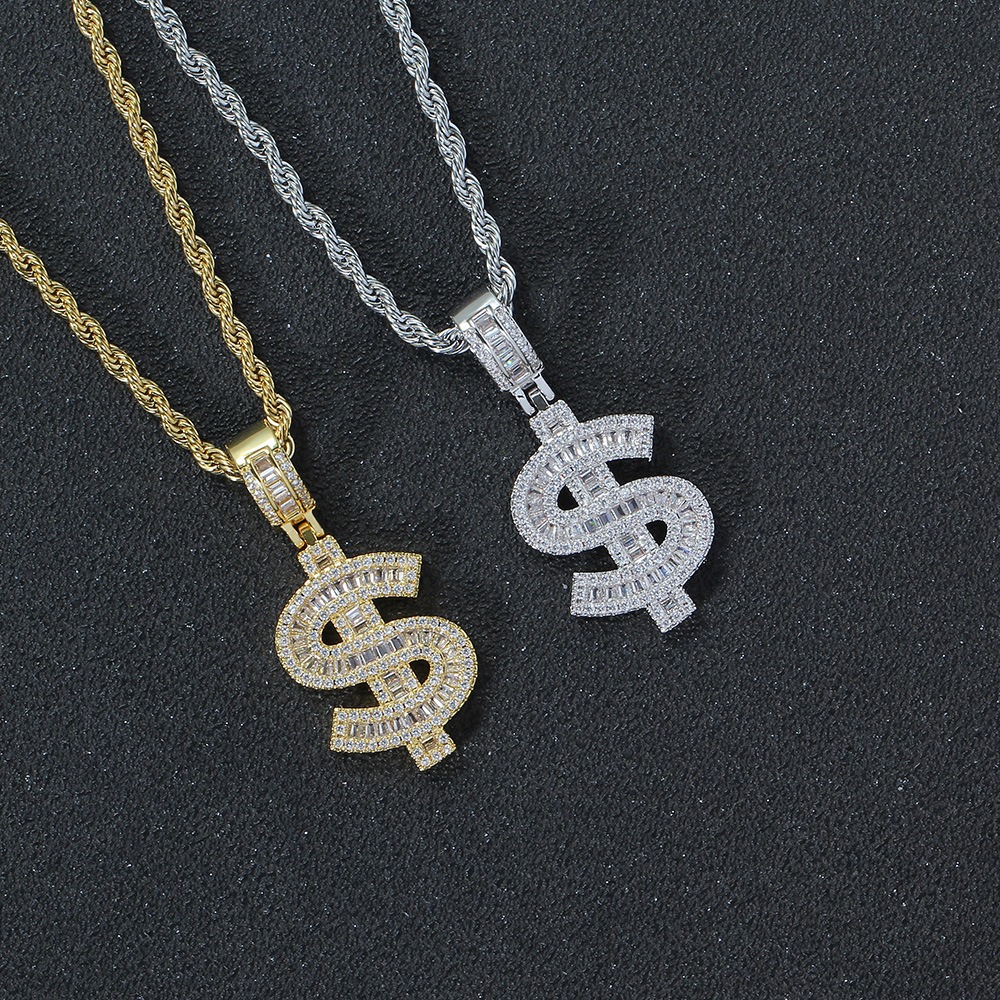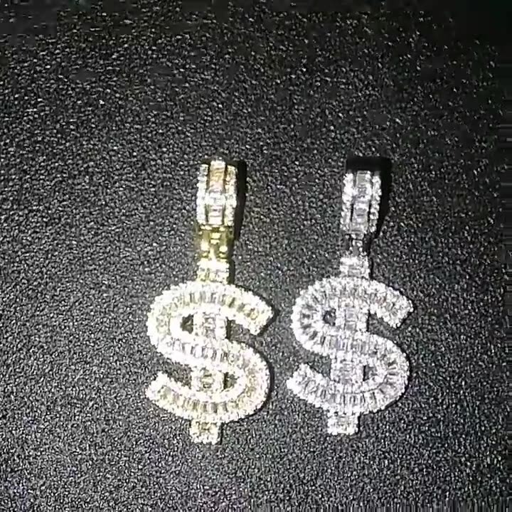 Hip hop pendant copper inlaid zirconium $ shape