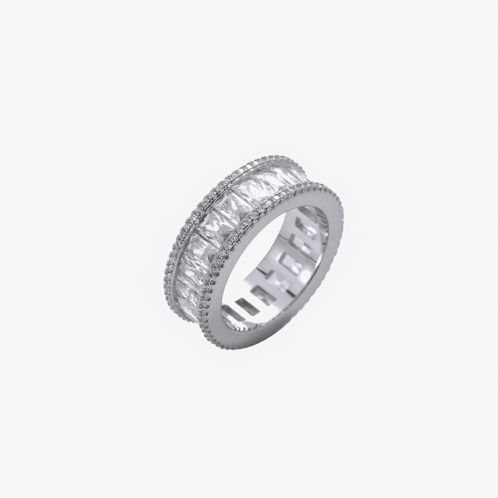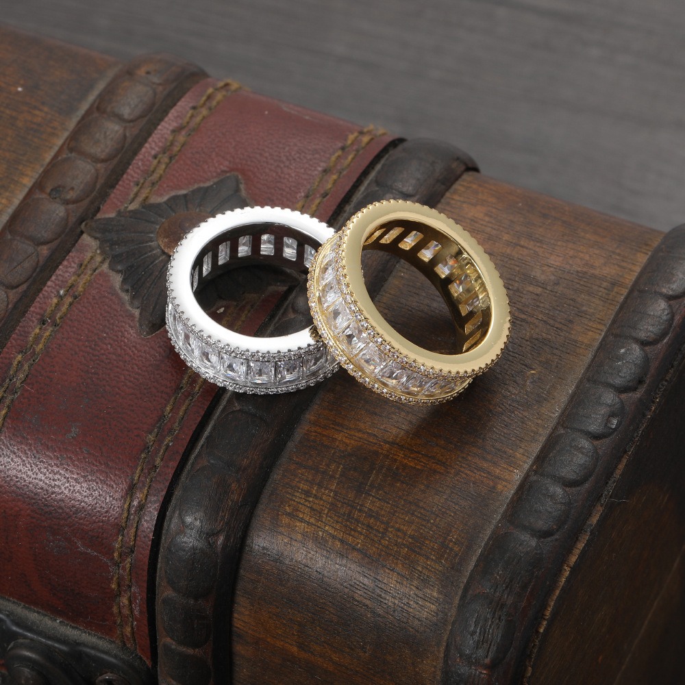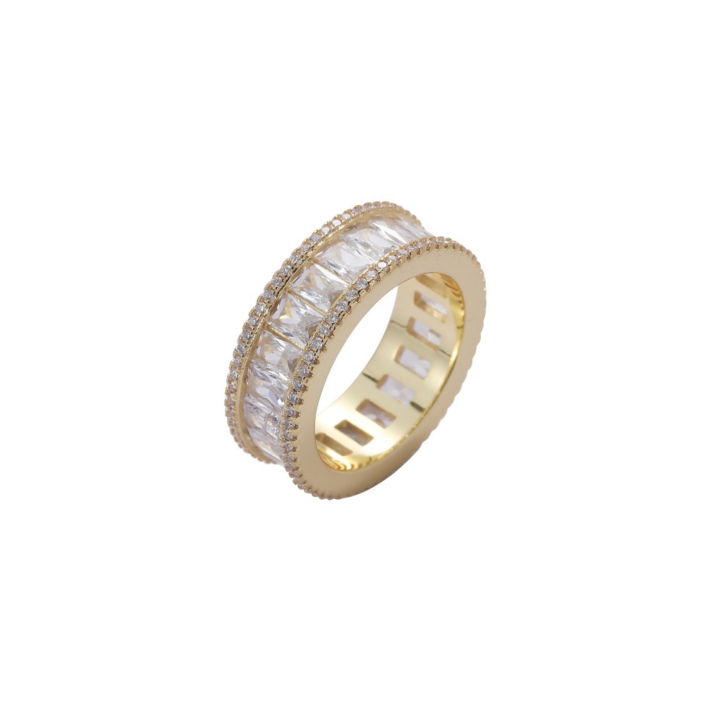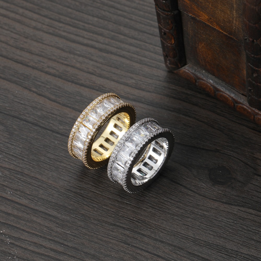 Hip Hop Ring Copper Inlaid Zircon 8mm Rectangular Cuban Ring Couple Ring